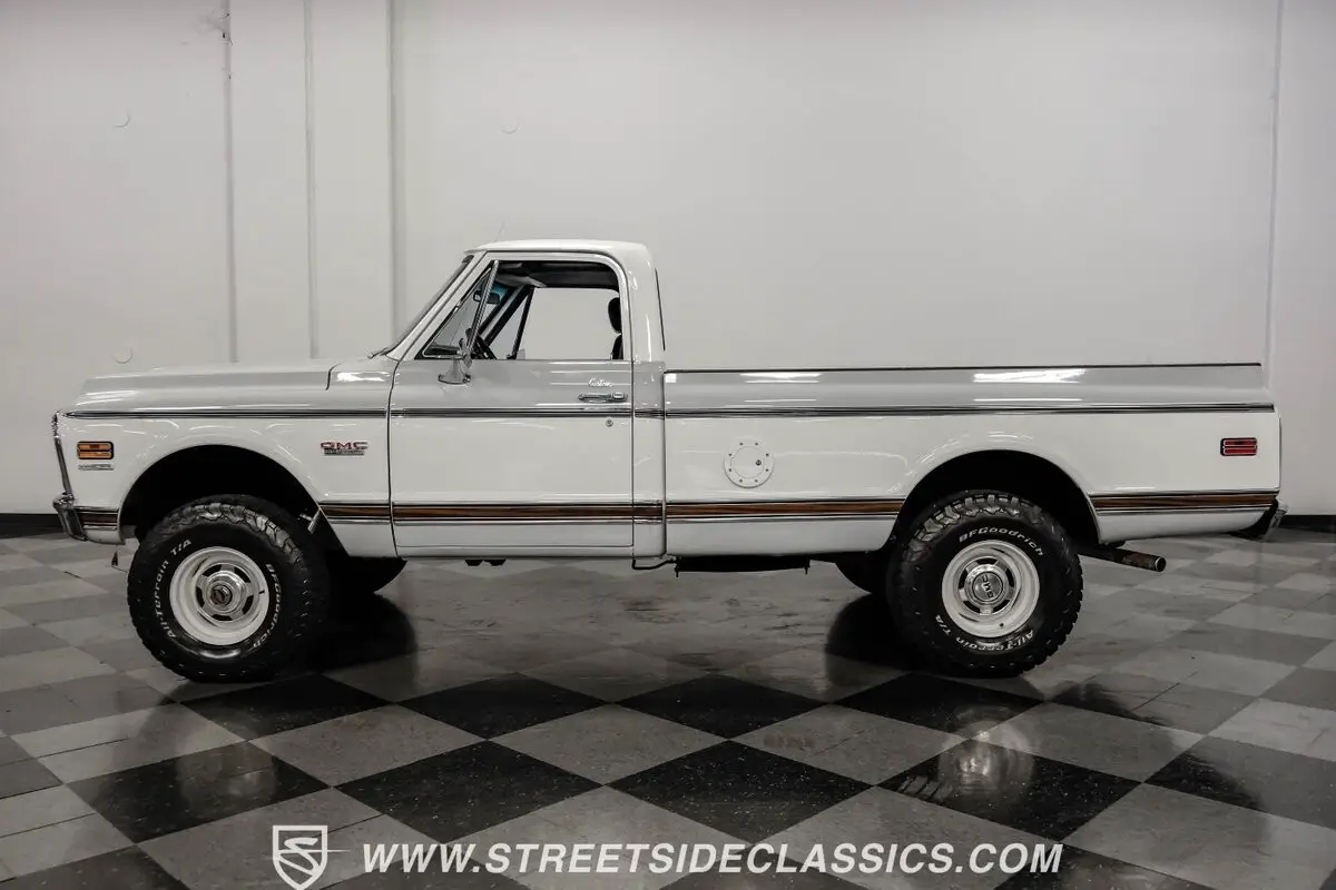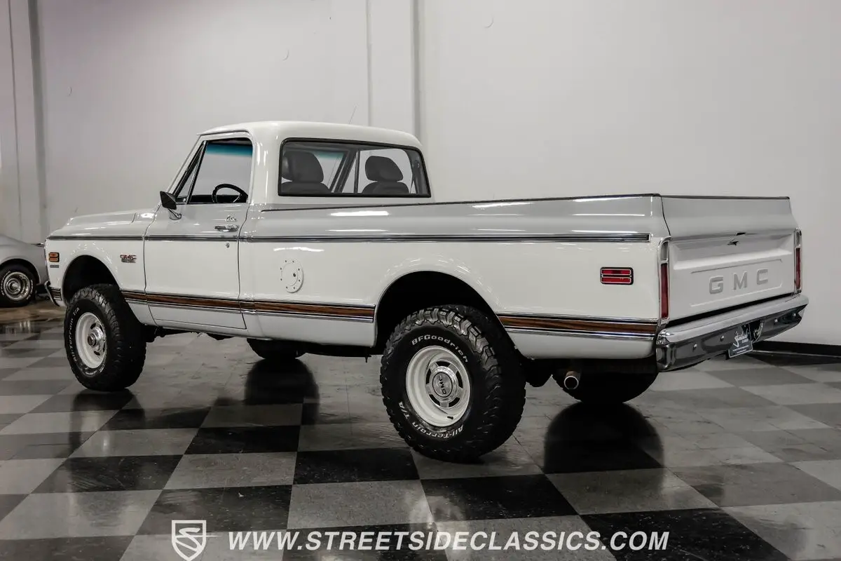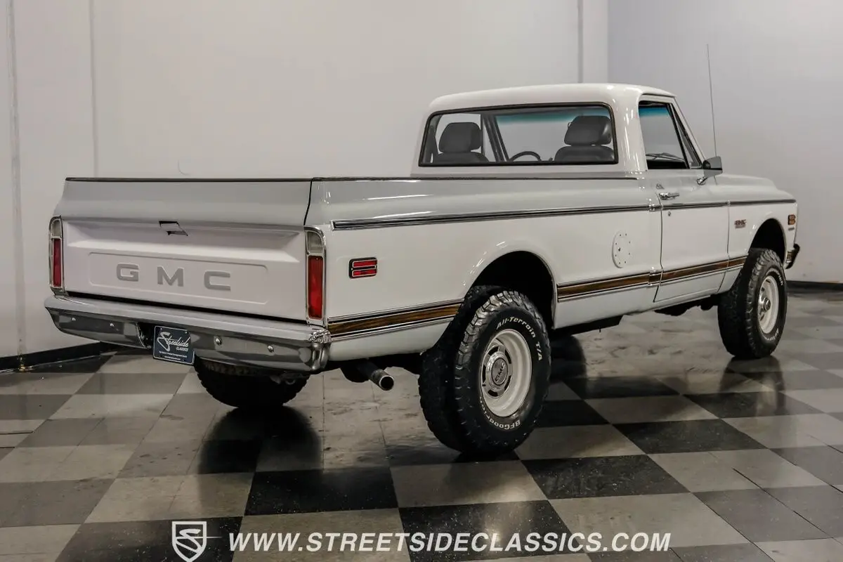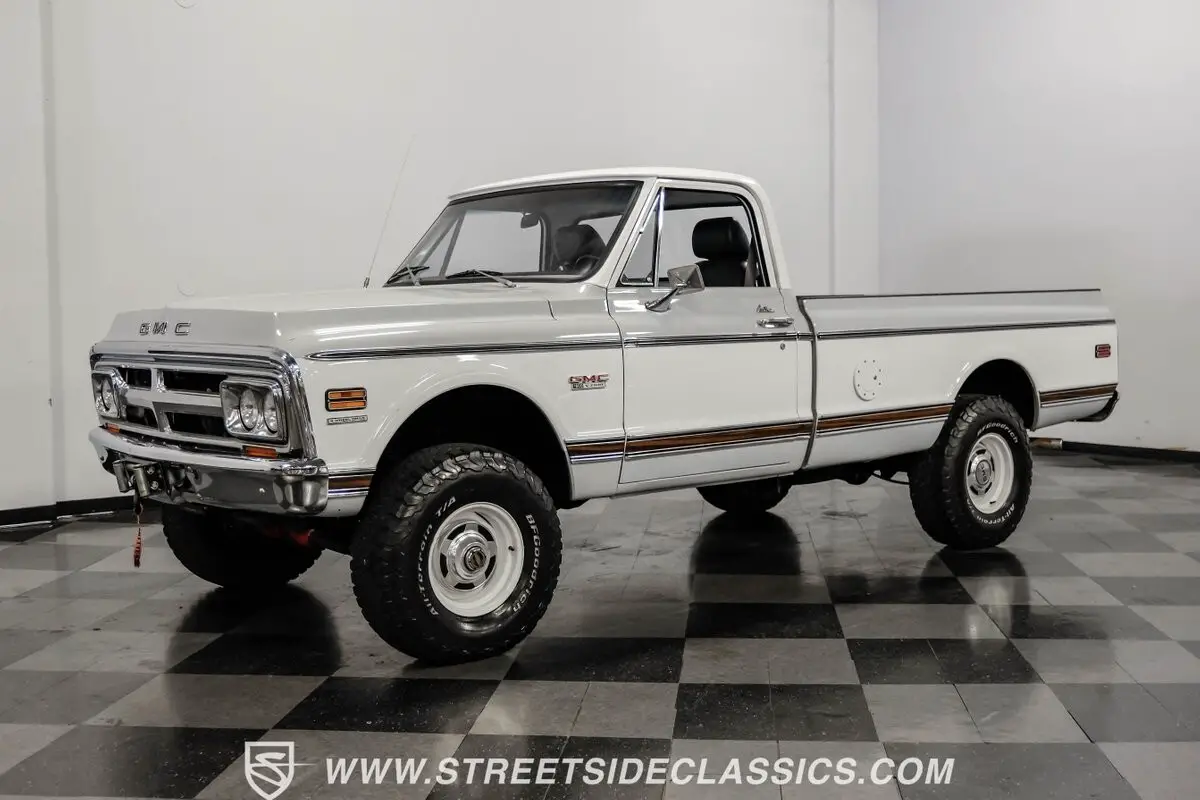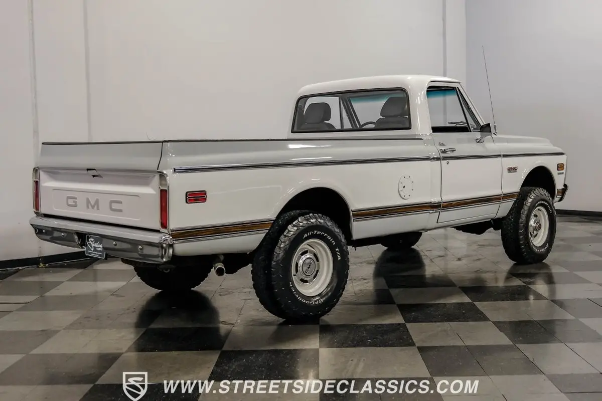 Mud-splattered trails and rocky mountain passes await as the gray and white two-tone 1970 GMC K1500 4X4 Restomod rolls through challenging terrain. Tall and capable, this truck runs on massive 33X10.50R15 BFG KO2 tires that claw across any surface. The white 15-inch steel wheels with large hubcaps add a custom flair that stands out at weekend truck shows. Extra durability comes from the spray-on Rhino liner protecting the bed floor and sides from camping gear and outdoor equipment. A front-mounted winch waits for the moment when lesser vehicles get stuck, while the fleetside long bed hauls all your adventure essentials.