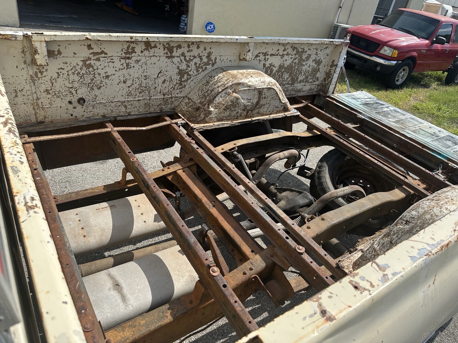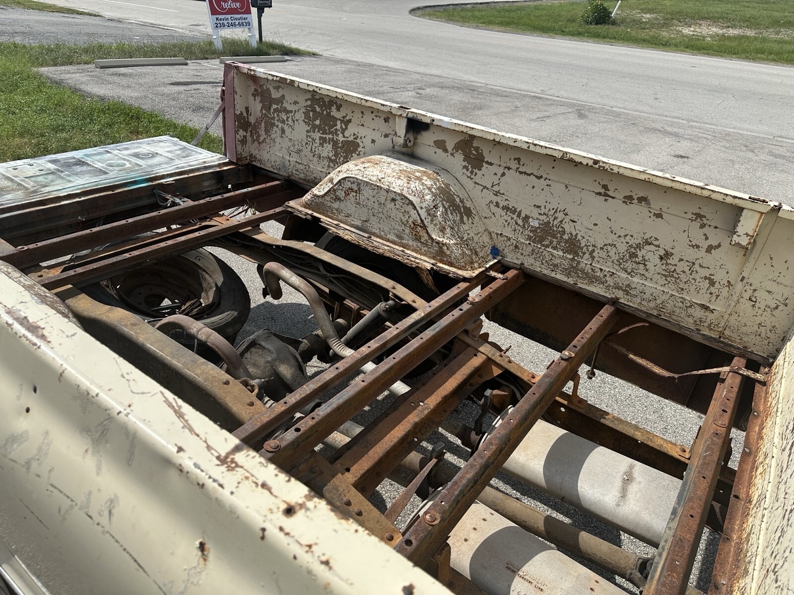 New front wheel cylinders, rebuilt rear cylinders. New brake hoses,master cylinder and brake booster. Brake system flushed and bled. Bed floor needs replaced. Minimal rust on body mostly surface rust. Frame is solid. Runs great, transmission shifts as it should. Factory full floater rearend. Comes with box of trim for exterior and miscellaneous parts. Tires hold air but are 25 years old and need replacemen, good for transport. Great starting point for restoration or drive as is .