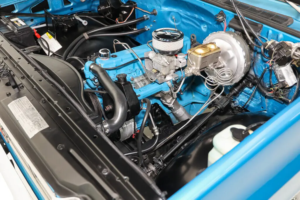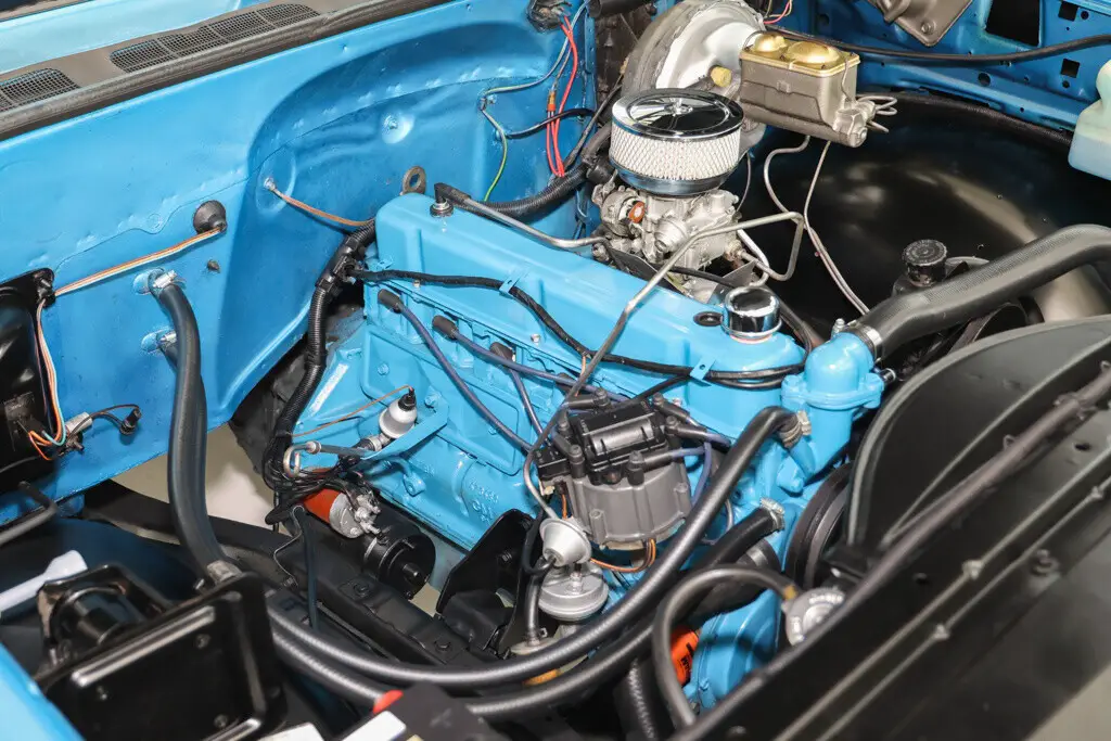 Rebuilt original 4.1 6 cyl. engine Correct Monojet carburetor Power steering Power brakes Rebuilt 4 speed transmission New clutch Original jack and lug wrench mounted under the hood!UNDERCARRIAGE: