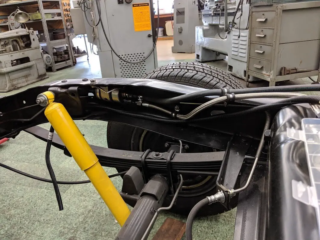 - The entire truck was taken off the frame. Frame and all suspension components were all media blasted and powder coated. All other suspension components were replaced including rear leaf springs, all bushings, and shocks all the way around.