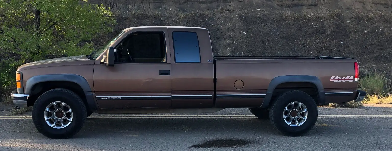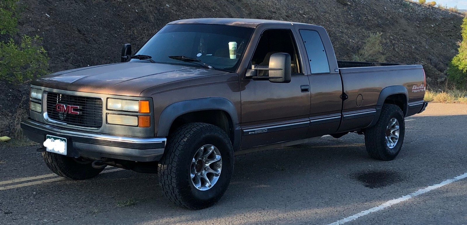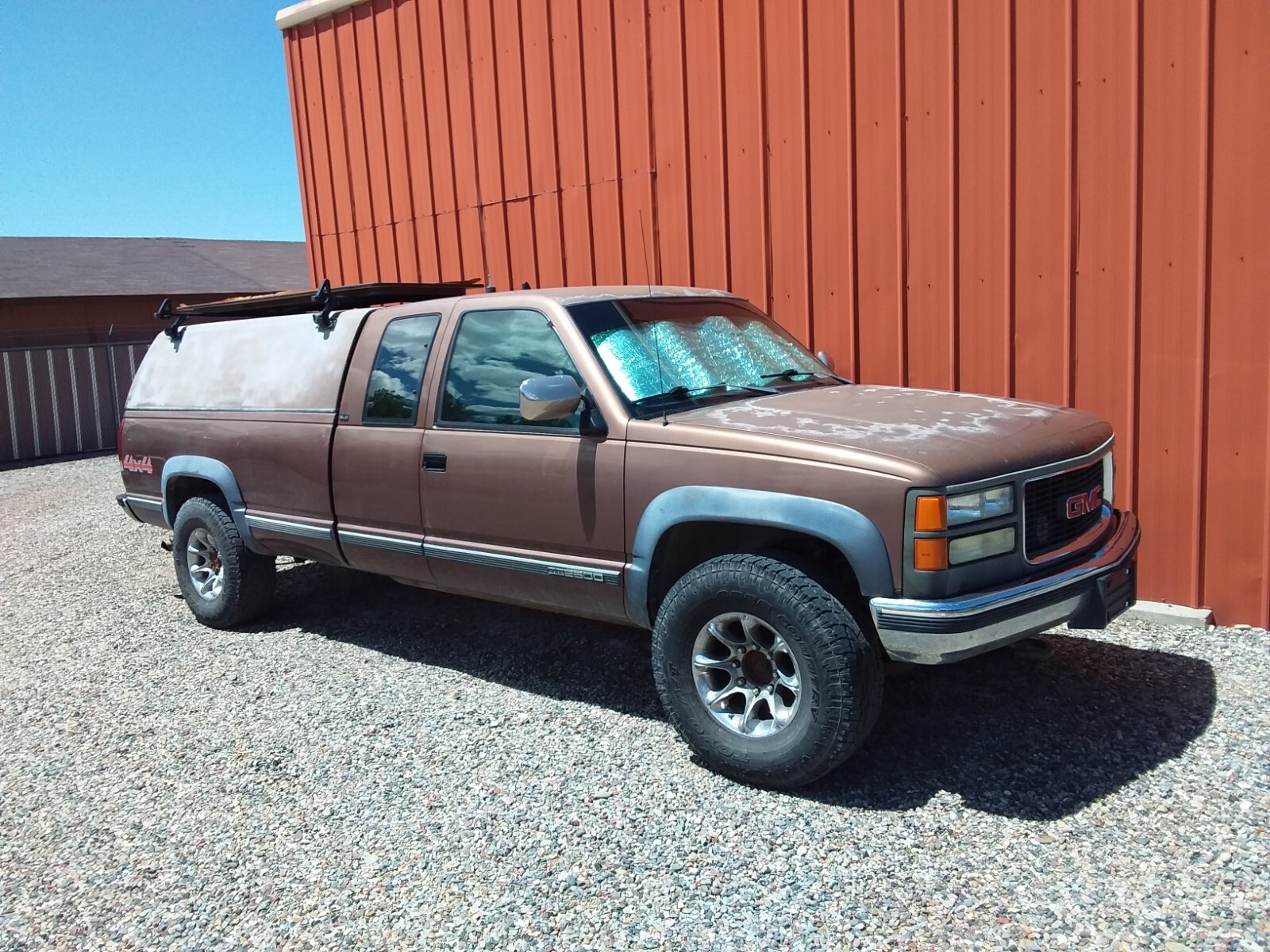 The 1994 GMC Sle is a 4x4 extended cab truck with a manual transmission. It has a powerful 8-cylinder engine and seats 3 people.This GMC truck is ideal for those looking for a rugged and reliable vehicle with a distinctive brown exterior color. With 260k miles on the odometer, this truck is a mountain truck has high gears (4.56 rear posi )set up for a camper or trailer has a ugly shell and rims good tires 1 owner replaced the engine with a used crate ho 7.4L/454 recently with carb swap just, need some tlc best truck for 31 years in Colorado`s high altitude