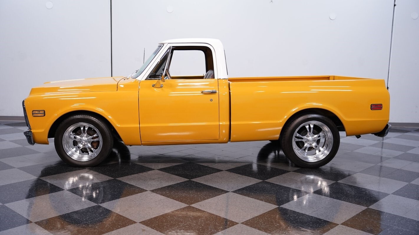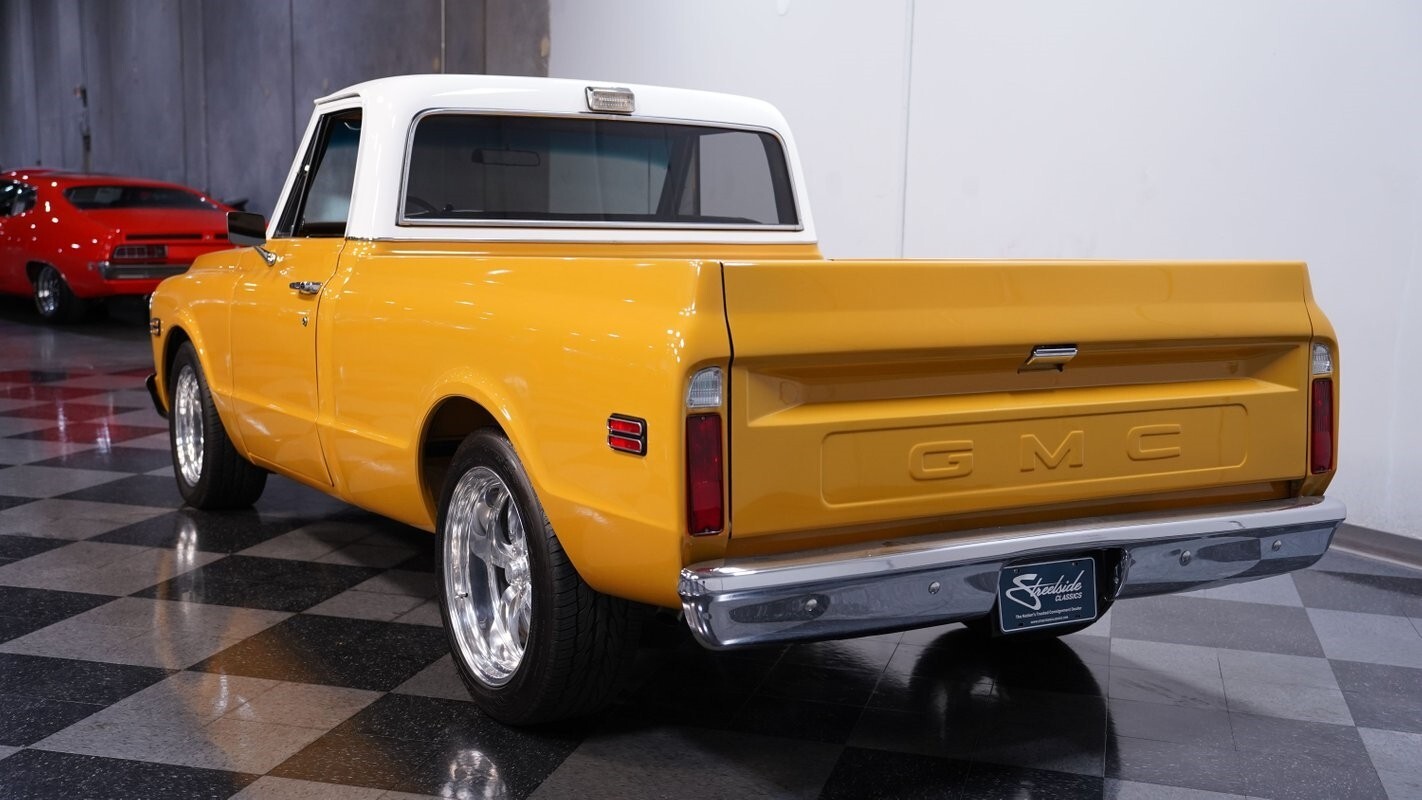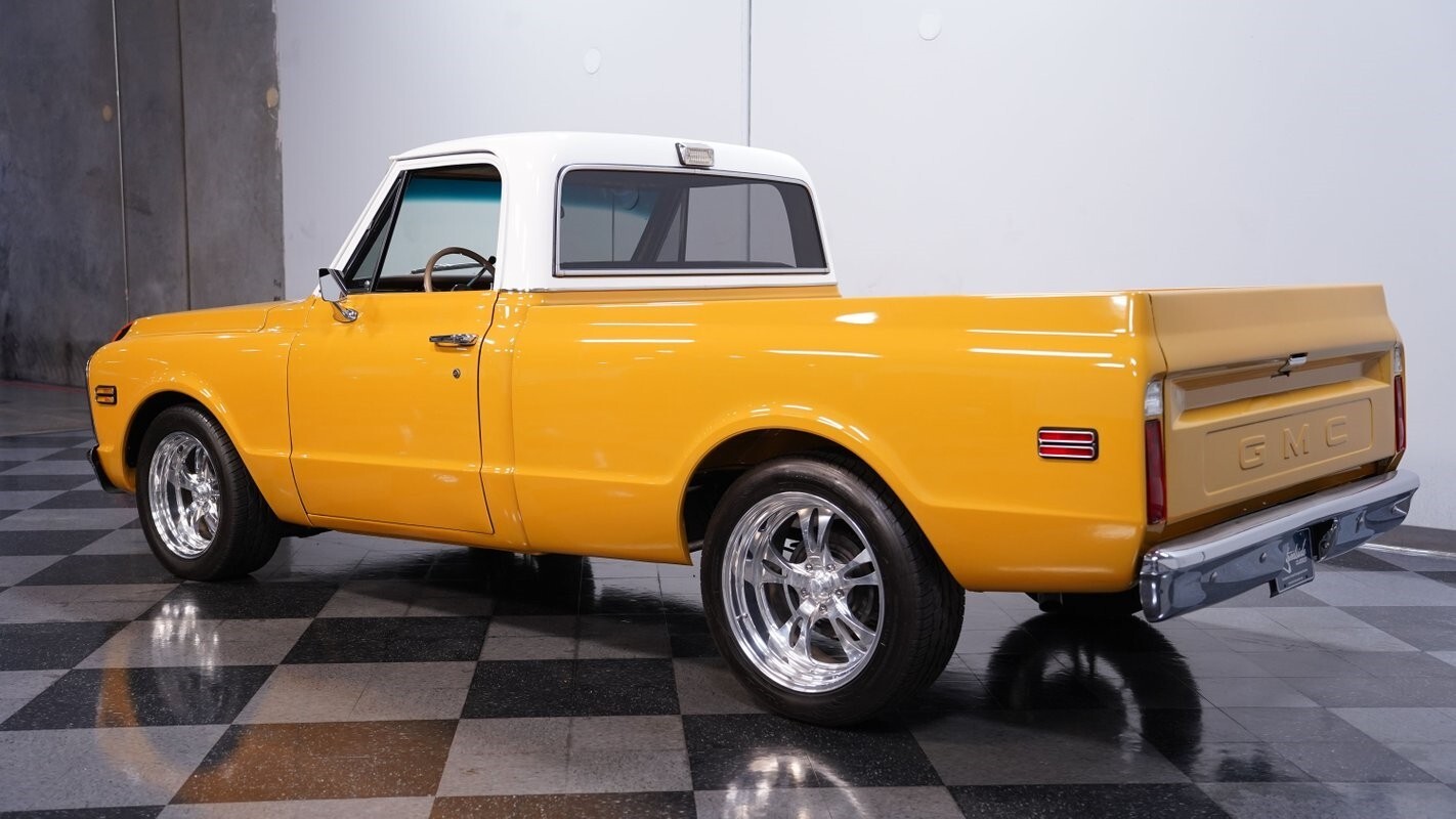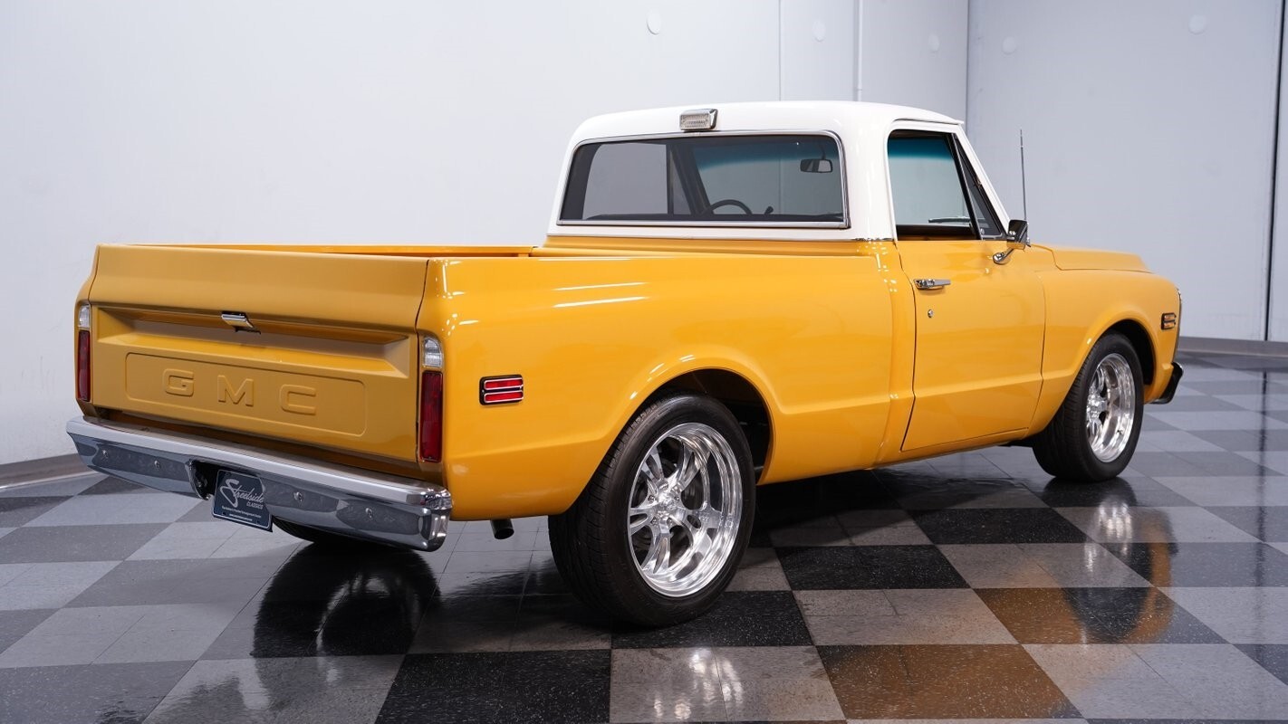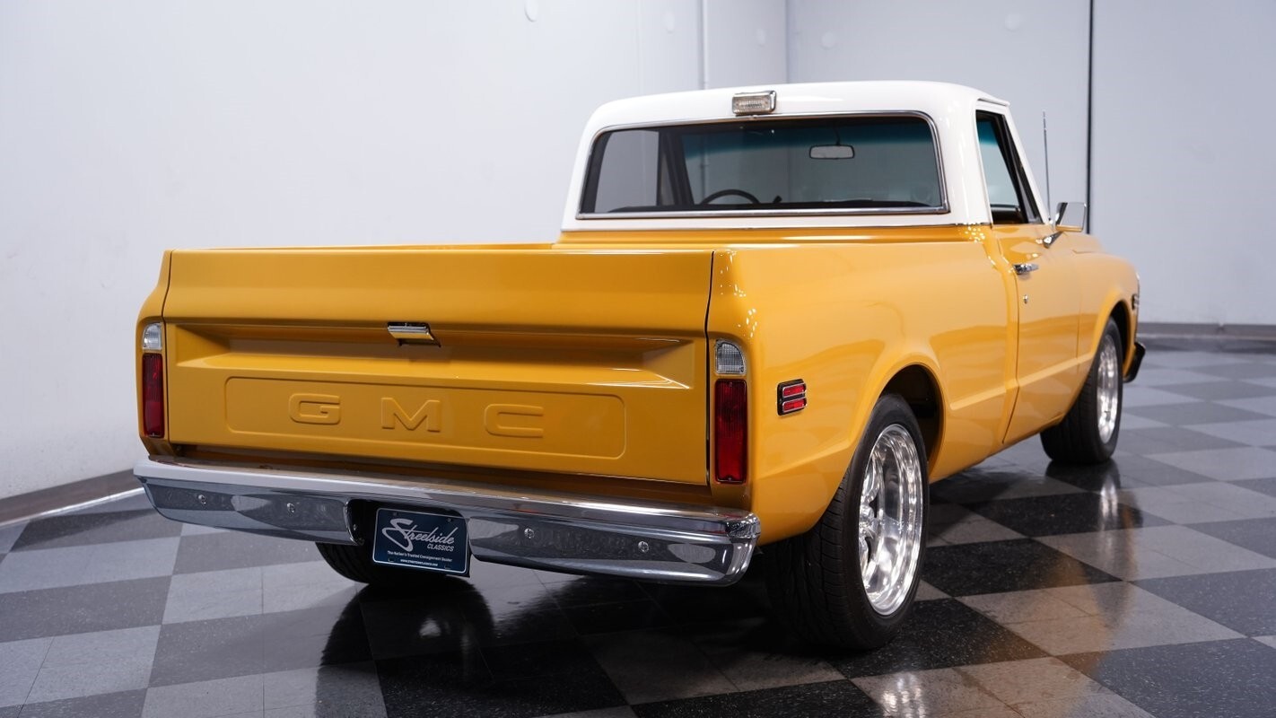 An exacting frame-off restoration performed a while back not only left this 1971 GMC C10 with top-tier curb appeal, but also with some quality mechanical upgrades to maximize its next lucky owner's experience behind the wheel. It has been well-cared for and lightly driven ever since, leaving it in top-notch condition. Its short bed configuration, installed seamlessly during that process, gives it a stout, robust appearance, and the slick, shiny okra-colored paint it wears, complemented by contrasting white paint surrounding its cabin, is a fitting match for this classic truck. It's got a great stance that's low enough to serve notice that some skilled aftermarket wizardry has been added to the mix, but without going so overboard as to render it without enough ground clearance to handle everyday road conditions.
