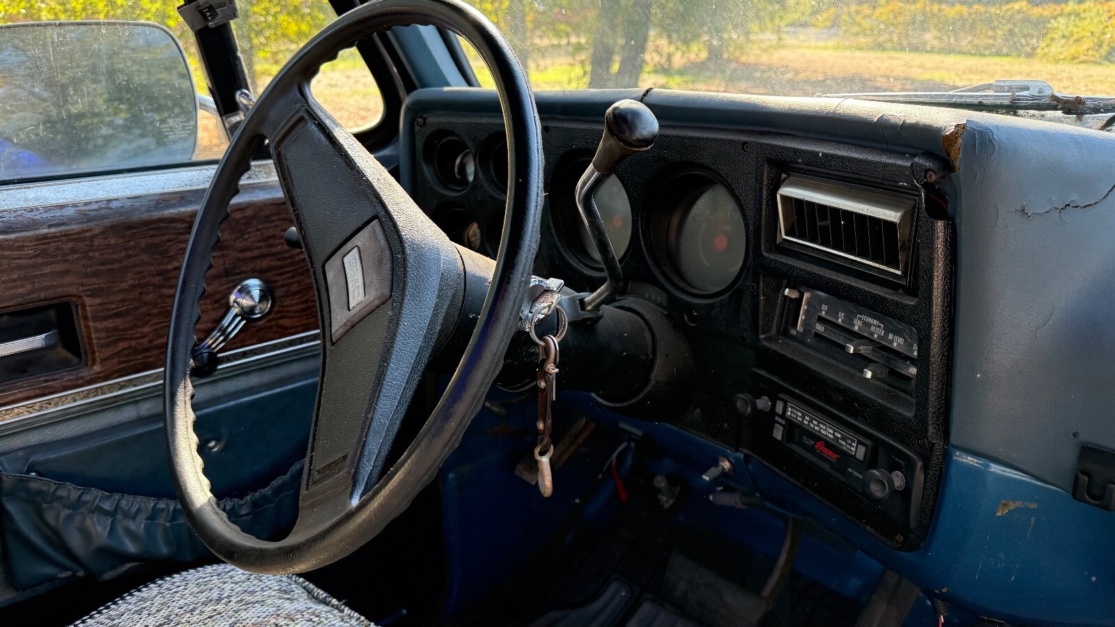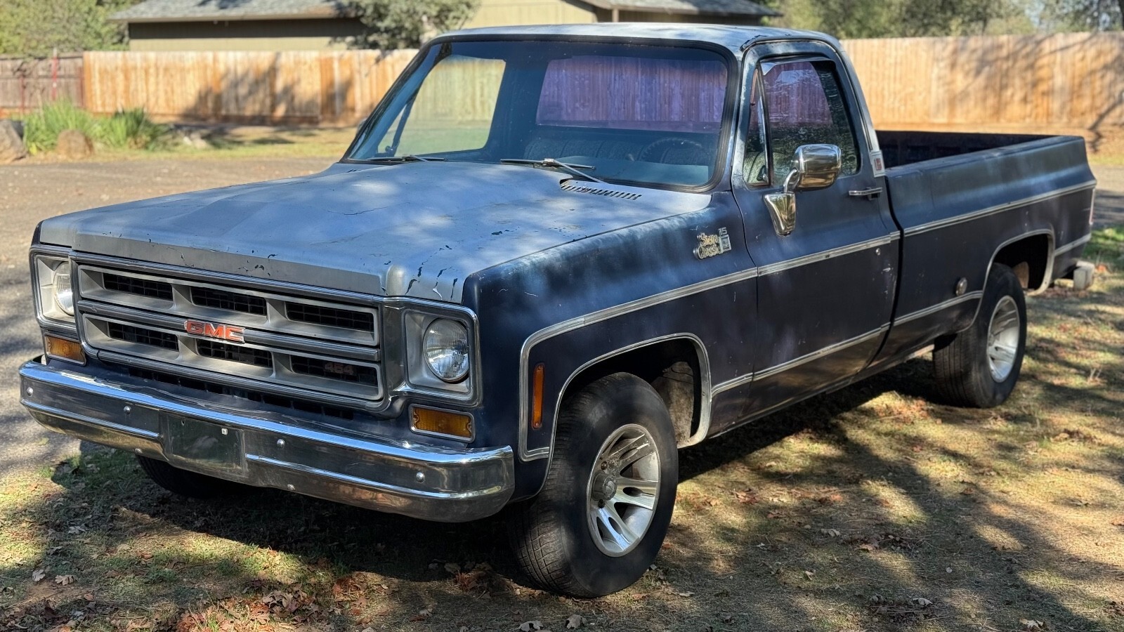 The 1975 GMC 1/2 Ton Pickup Beau James is a classic crew cab pickup with a blue interior and exterior. It features an automatic transmission, and came with the 7.4L 454 CI which sports the 2WD train. The Beau James sits on a 3/4 ton chassis for strength and 1/2 ton suspension for a smoother ride. There were 2 previous owners before me. I bought it with low miles, however the plastic on the gage cluster makes it difficult to read. The truck has 69,000 miles. Odometer is not rolled over. It does have a clean title. The best part of this Beau James edition truck is that this is number 13 in registry. I have the original build sheet. I am also including the Beau James hood ornament. For the rust panels I am also including the LMC replacement parts to restore the floor pan and door sill.