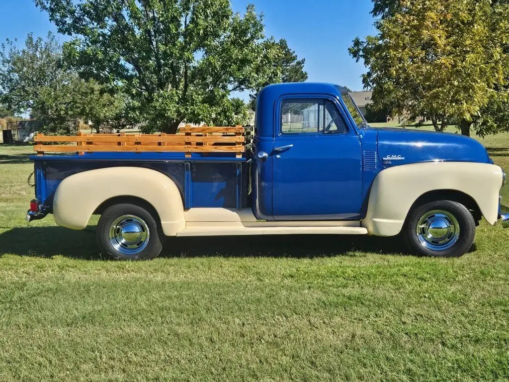 1953 GMC Step Side 2Dr Pickup “Restored” for Sale in Buffalo, OK 73834 6-Cylinder, 3-Speed Manual, Front Disc Brakes, Excellent Condition This 1953 GMC Pickup is a beautifully restored classic that runs, drives, and stops exactly as it should. Finished in a striking blue exterior with matching blue cloth interior, this truck has been garage kept and well cared for. its dependable 6-cylinder engine paired with a 3-speed manual transmission, this GMC cruises comfortably at highway speeds—something not always common with trucks of this era. The addition of front disc brakes improves stopping power and overall drivability. The exterior pr