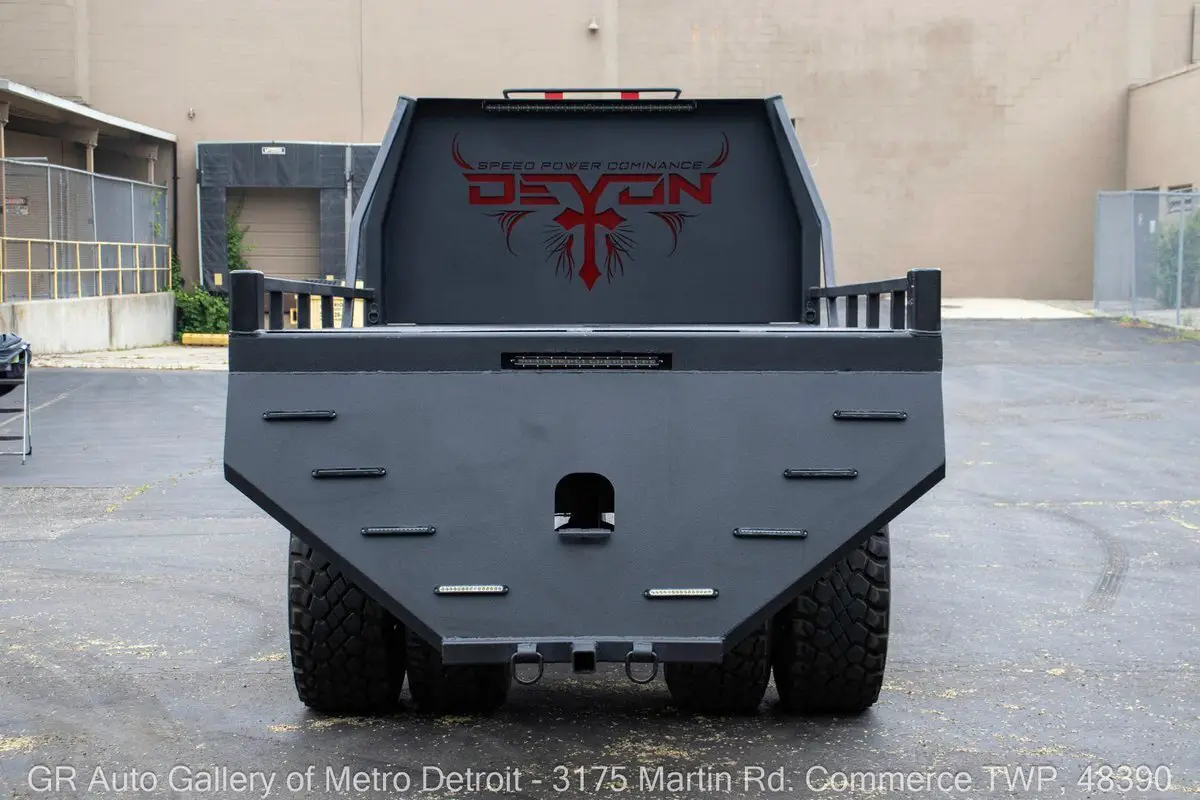GR Auto Gallery is excited to present this ultimate toy hauler, a beast of a machine: 1991 GMC TopKick C7500 Mega Hauler for your consideration. This truck boasts a unique Ghost Gray painted exterior complemented by a custom black interior. Under the hood, you'll find the powerful turbocharged diesel 3116 inline 6 engine, paired with a 5-speed manual transmission. The truck is geared to a 4:55 rear end, ensuring that it not only excels on the highway but also has the capability to tackle any tough terrain with ease. With over 2,000 man-hours invested in custom modifications, this one-of-a-kind build features a custom Denali interior, rebuilt gauge cluster, brand new turbo, complete stereo system and speakers, rear backup camera, touch screen head unit, custom crew cab configuration, shaved lights, relocated door handles, and removable side step entry for added convenience. Additional features include stow-away compartments, a massive 50-gallon fuel tank discreetly positioned between the frame rails, a heavy-duty 5-ton rear axle, and custom front and rear bumpers. The raised suspension and one-of-one in-the-world dually super single wheels (445/225's) add an aggressive stance that is sure to turn heads. Length: 350 inches, Height: 114 inches, Width: 100 inches. This truck is truly a masterpiece, designed to bring joy both on and off the road. Drive this one out of our showroom or have us assist with shipping it to you anywhere in the United States! Don't hesitate to call us with any questions or for more information.