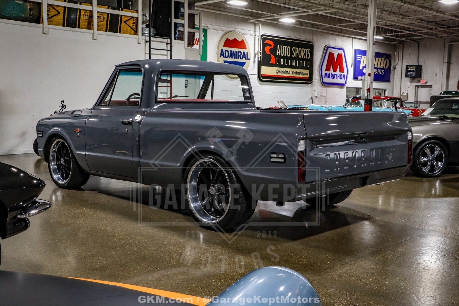 This 1969 GMC C10 is a beautifully built restomod pickup that combines classic styling with serious performance upgrades. Finished in a sleek grey exterior over a bold red interior, it strikes the perfect balance between vintage appeal and modern muscle.