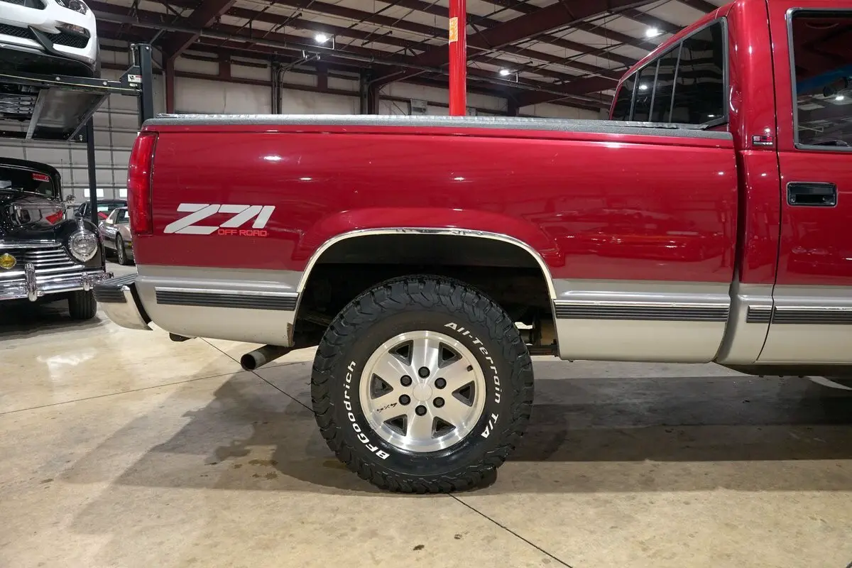 Finished in a two-tone Cherry Red Metallic with Ultra Silver Metallic bottom and matching red cloth interior. This truck is optioned with the highly sought after Z-71 off road package and the top SLE trim level. Factory features include; power windows, power locks, tilt wheel, cruise control, 60/40 split front row bench, sliding rear window, 16in alloy wheels, 5.7L V8, tow package, and A/C.