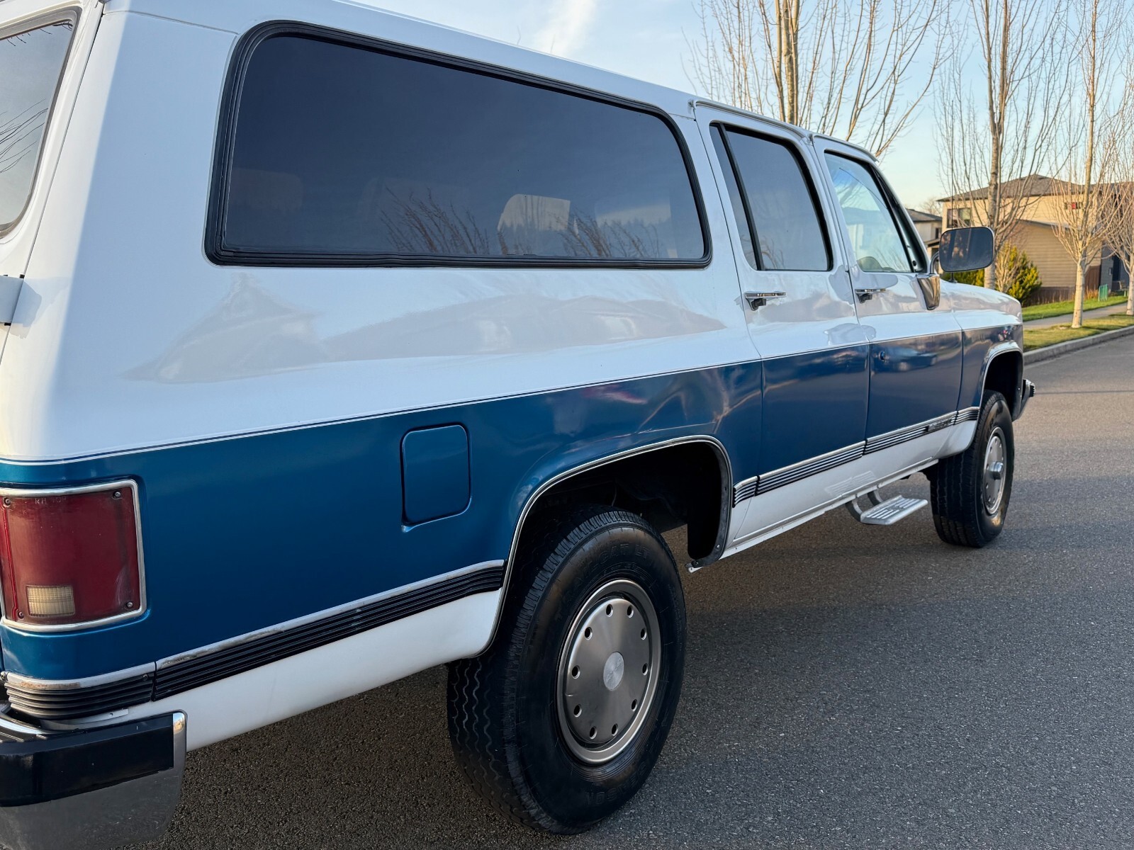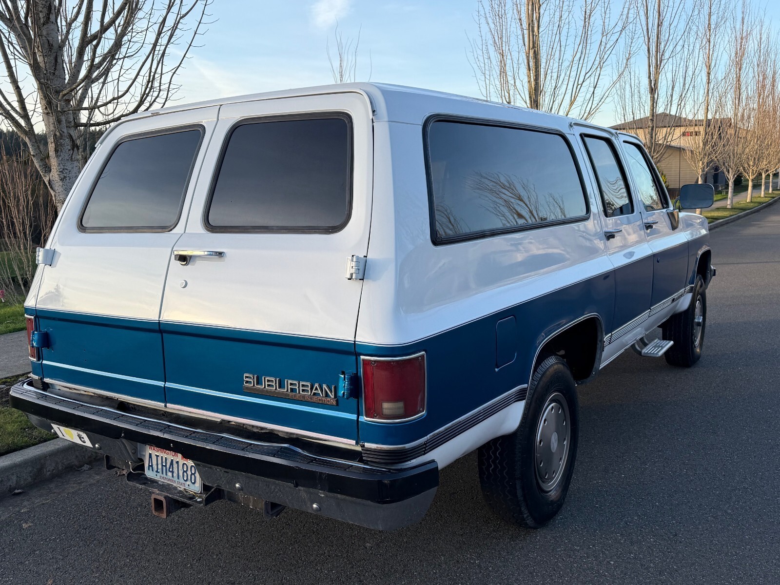 Exterior:Minor accidents report on CarFax shows back bumper was tapped no body work was done.! SCROLL DOWN FOR FULL CARFAX REPORT ! Clean WA state titlepaint & body is super nice & clean was repainted once around 5 years ago and look great. Interior:The interior is clean and well-maintained, all original and nothing aftermarketCondition:Overallthe body is in remarkable shape, free from rust, thanks to meticulous care and storage. Regular maintenance has been performed, ensuring this Suburban is ready for its next chapter.its turn key and ready to go !Price: $17,500 o.b.oplease fell free to call anytime253-592-7856:PLEASE NOTE: