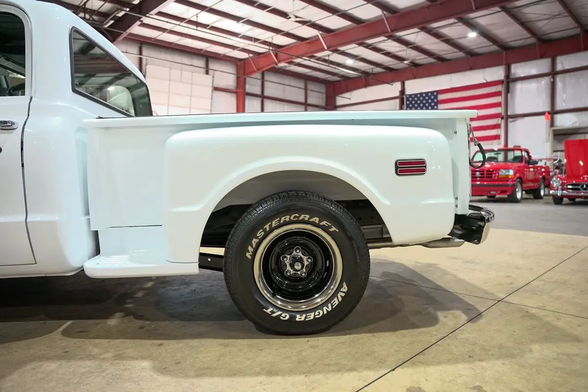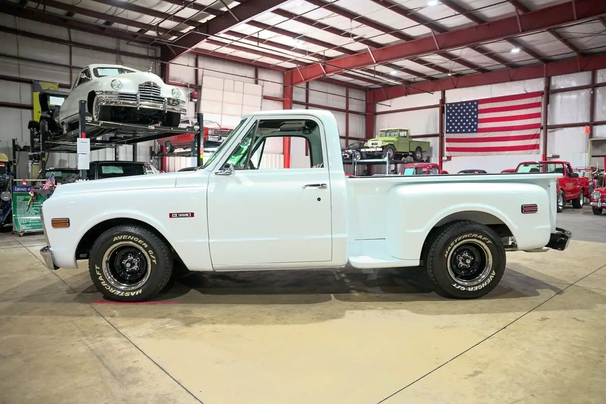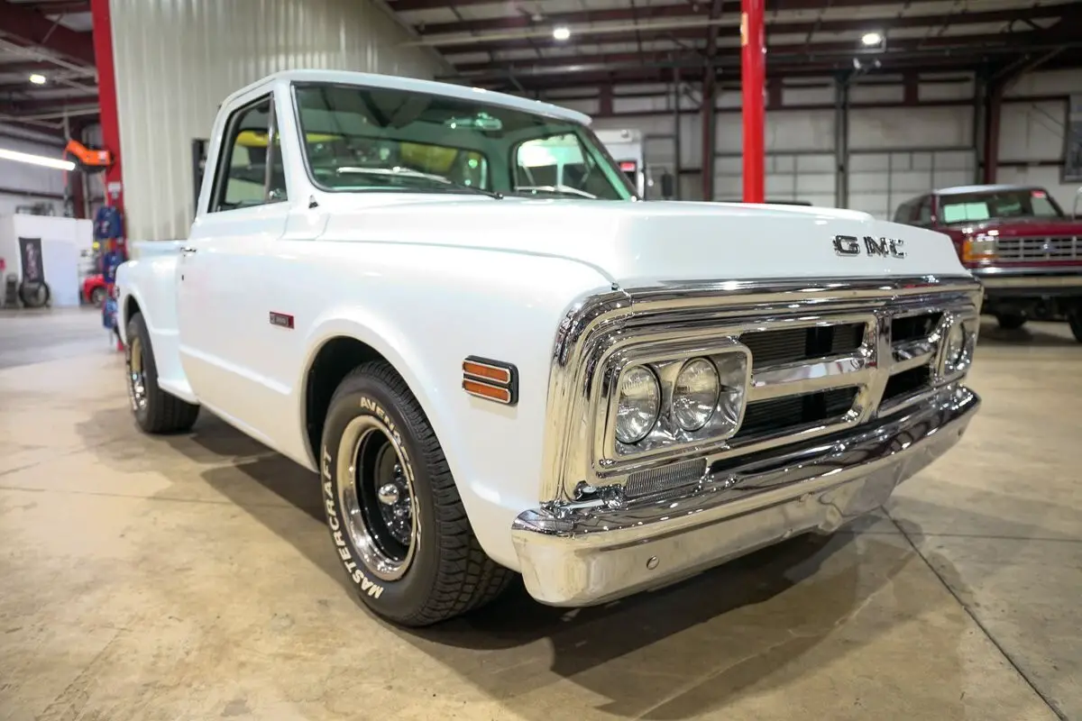 GR Auto Gallery is excited to present this 1972 GMC L1500, finished in bright white over a black leather interior. This stepside pickup carries a timeless look with its clean lines, chrome bumpers, black tonneau cover, and 15-inch black wheels with chrome accents that give it just the right amount of character. The body remains straight and well-kept, making it a standout example of an early '70s GMC truck that still knows how to turn heads.