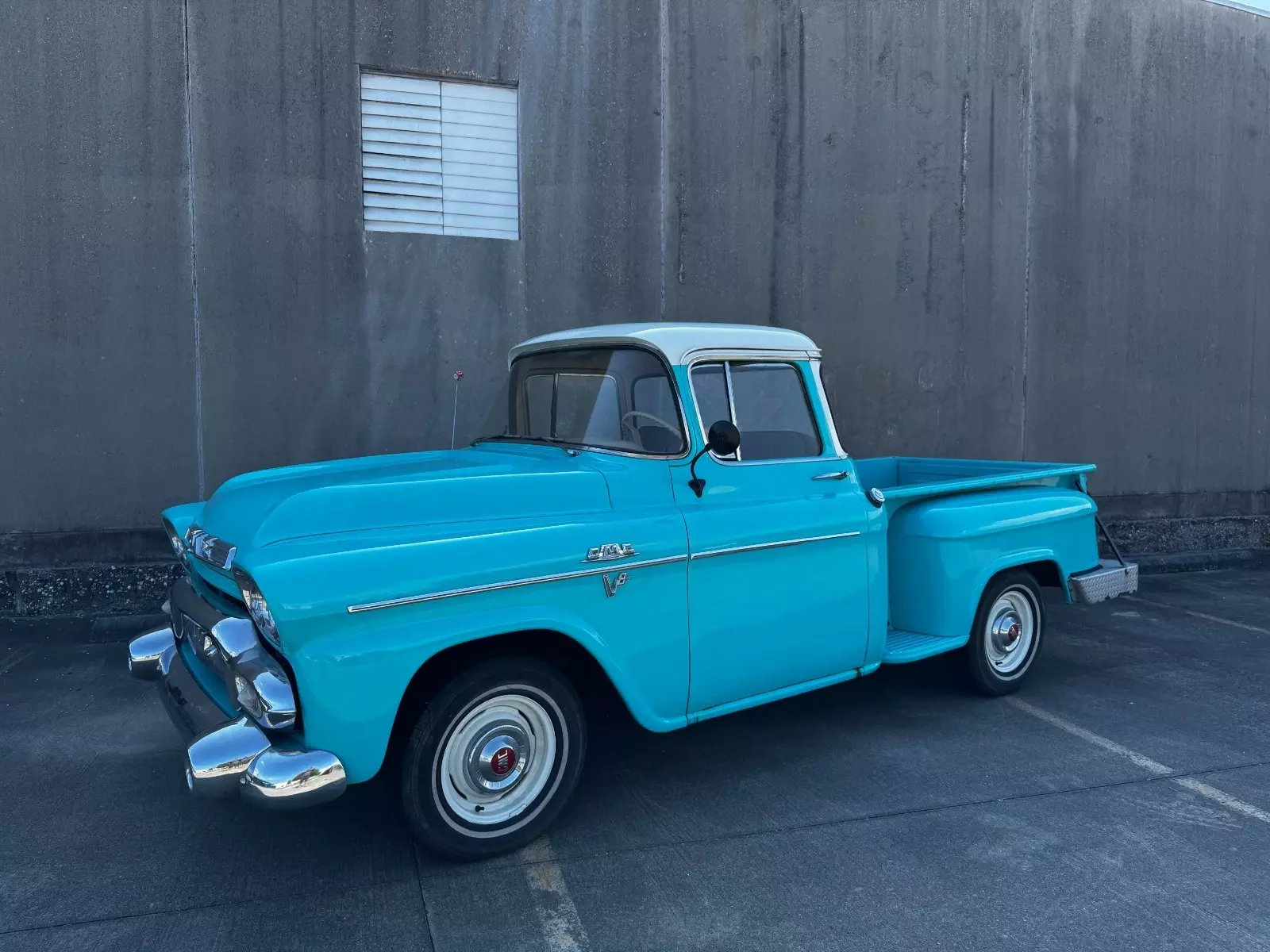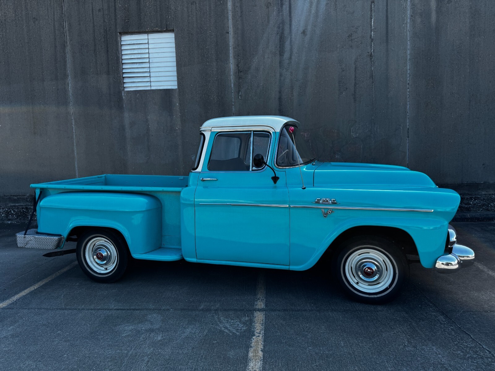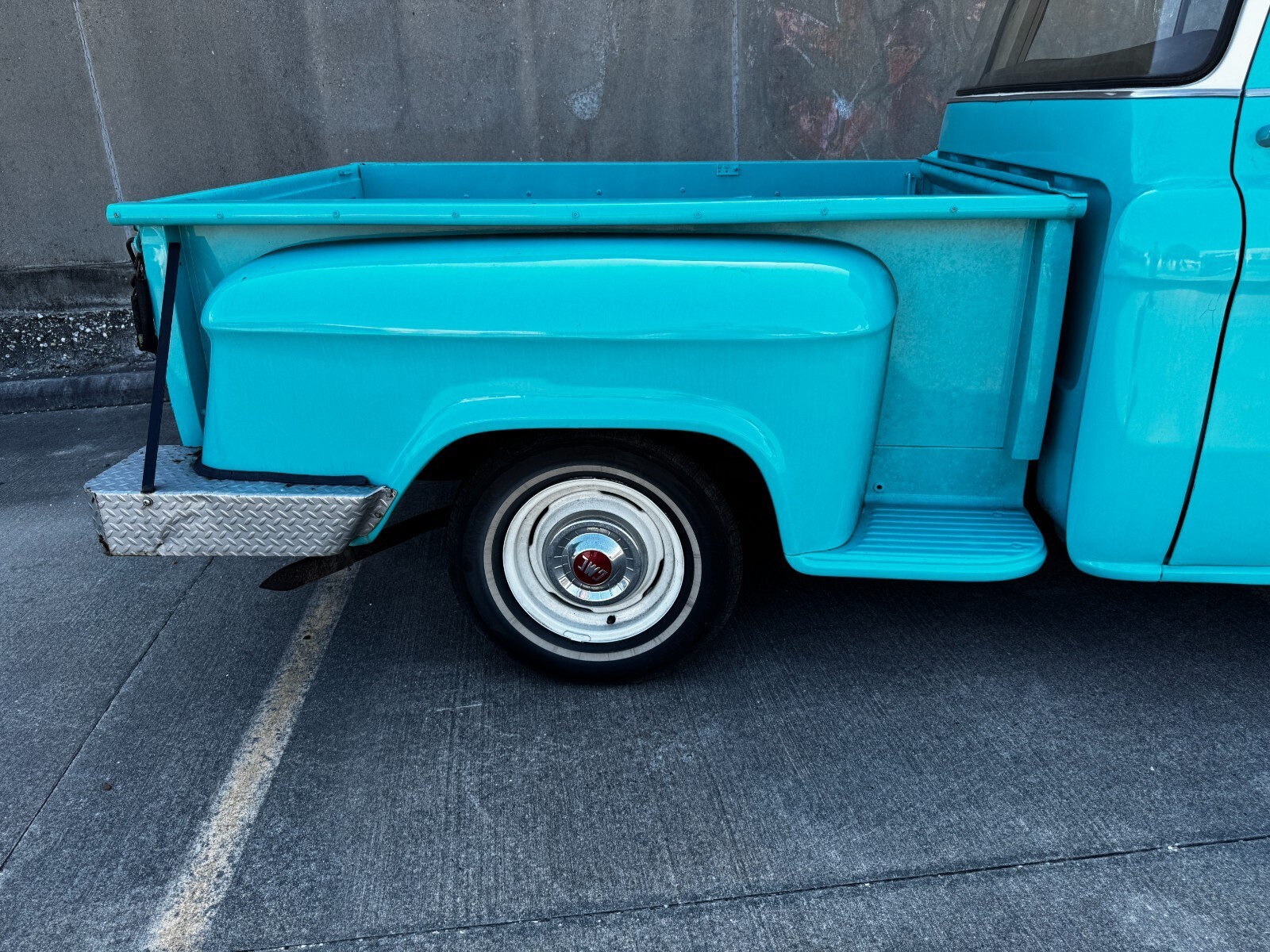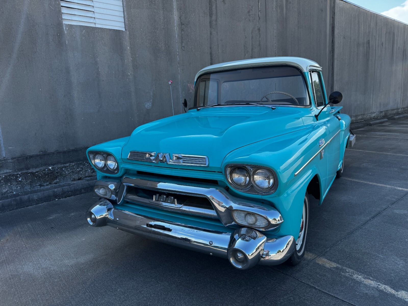 1958 GMC step side short bed. a GM small block v8. 3 on the tree manual transmission. Up to date on major services with recent work done to improvedrivability. Including a new fuel tank, fuel system service, new carburetor, brake system service,and clutch adjustment. Car is in good running and driving condition. 11,050 miles shown on odometer.