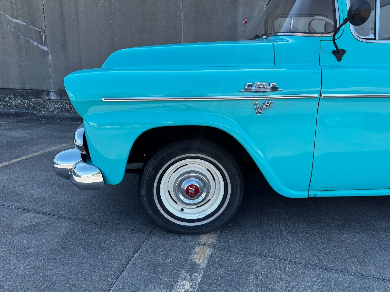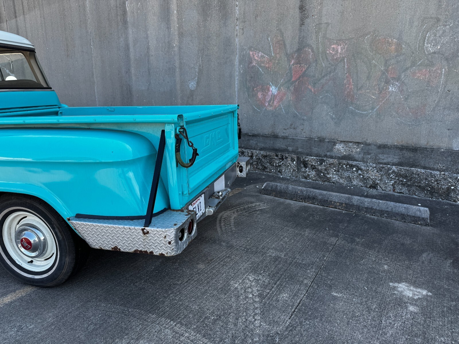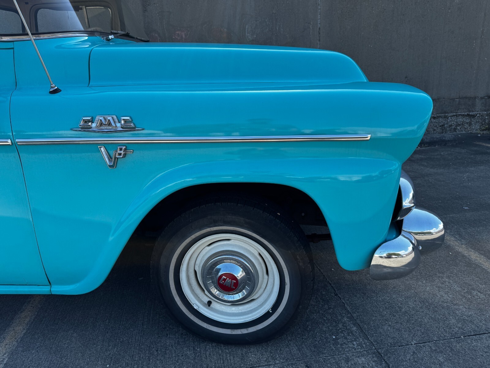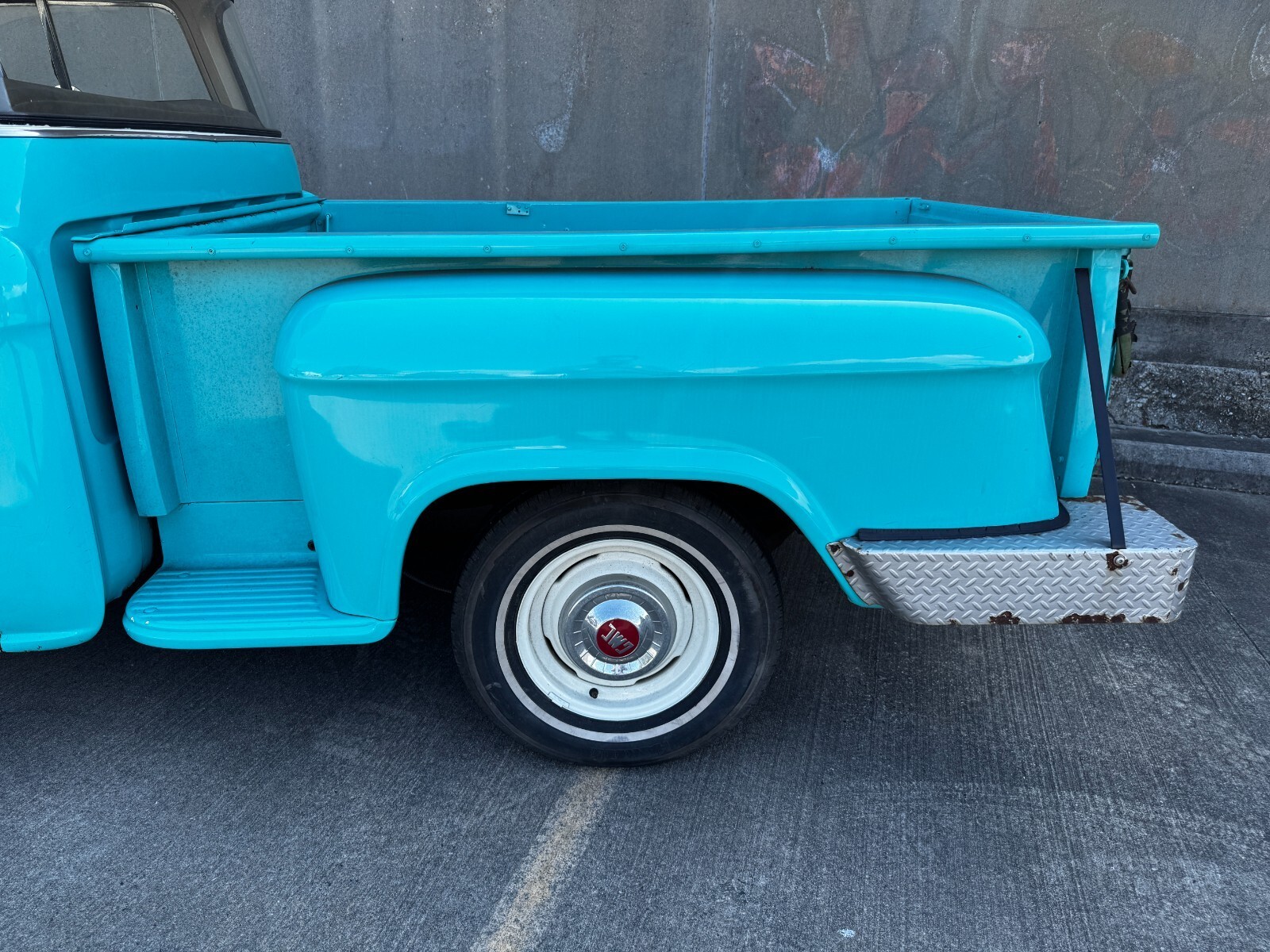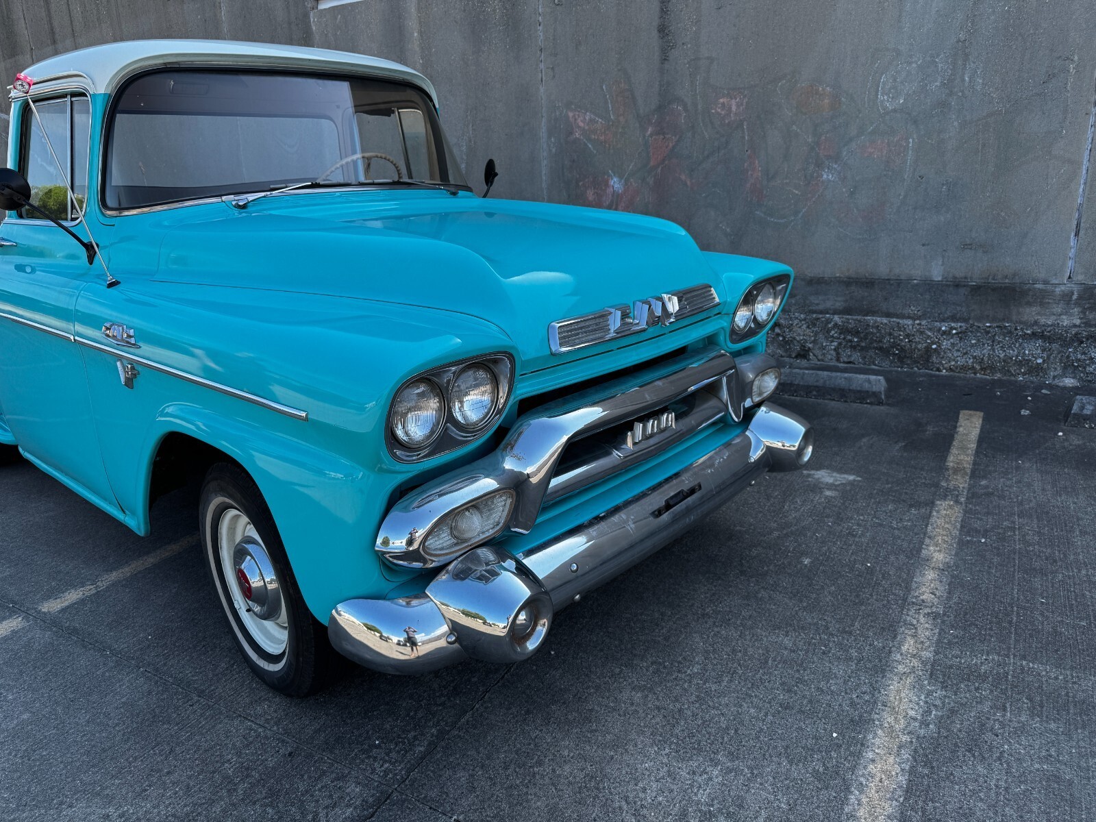 1958 GMC step side short bed. a GM small block v8. 3 on the tree manual transmission. Up to date on major services with recent work done to improvedrivability. Including a new fuel tank, fuel system service, new carburetor, brake system service,and clutch adjustment. Car is in good running and driving condition. 11,050 miles shown on odometer.