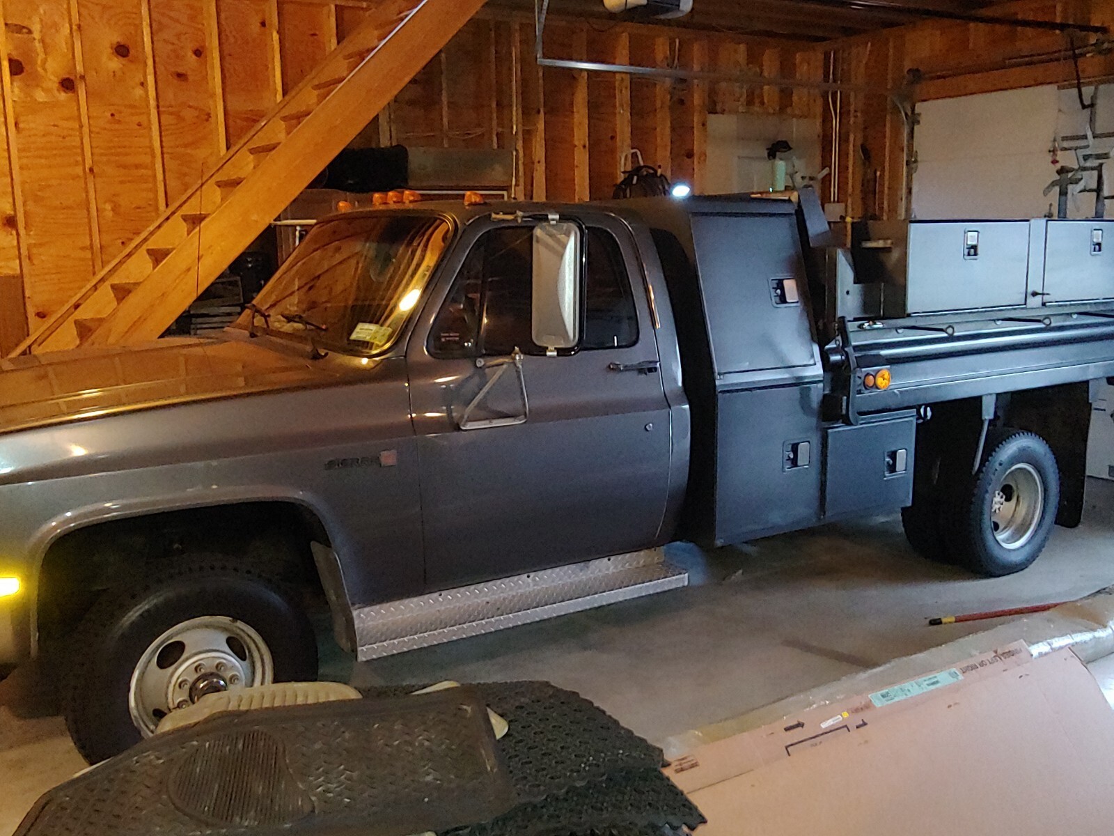 REELS FOR WIRE AND AIR HOSE. INTERIOR SWITCH TO RAISE AND LOWER ON 6 ' CORD, FOLD DOWN DUMP BODY SUPPORT WHEN WORKING ON GREASING FITTING AND AUTO STOP WHEN RAISING BODY. 2 RUBBER MATTS COVERING DUMP BED