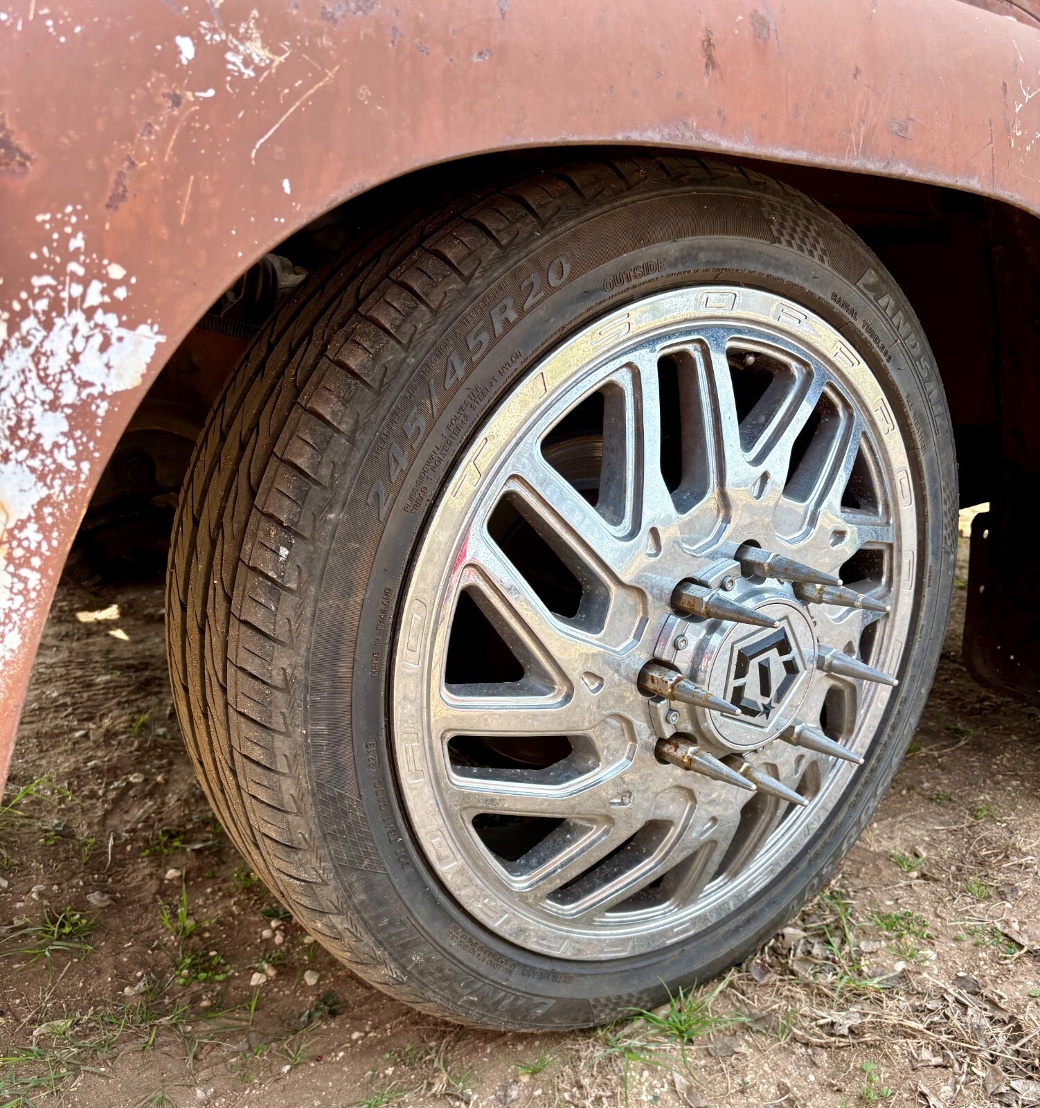 This is a really cool and great running truck. The body sits on an '03 Chevy Express chassis. The motor is an LS. The tranny is an automatic 4L80. The cool push-button shifter is by Lokar. It sports TIS wheels all the way around. The tires have full thread, minimal use so far. The bed is in excellent, solid shape. A great feature ... it has A/C & heater fully functioning. The wooden sides on the bed are removeable to reveal the flatbed. Check the video for the easy start and quiet motor. Oh yea, the interior has been redone as the pics indicate.