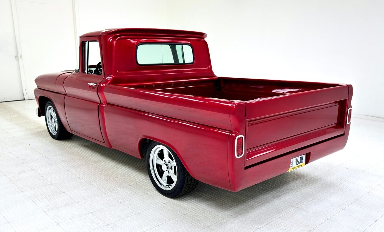 The show continues under the hood where the consignor stated 383ci stroker V8 resides and it has aluminum heads, roller rockers, a Weiand 142 polished supercharger, an aluminum radiator, ceramic coated Sanderson headers, all in a painted engine bay that is spotless. MSD ignition sparks the beast and a 4-barrel carburetor is perched on top. There are lots of polished components in the bay. Setting the truck in motion is a TH350 3-speed automatic transmission sending power to a 10 bolt rear with 3.73 gears and Positraction. Bringing the party to a slow crawl and stop will be power disc brakes in front and power drums in the back.