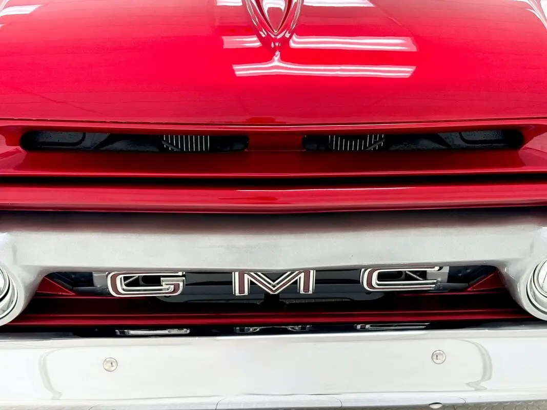 There are a few colors that stand out as hot rod, resto-mod, or street rod favorites and Candy Apple Red is near the top of the list, if not heading it. The tri-coat here is two stage goodness that's deep and even and offset by the large chrome bumper, the shiny headlight bezels, and the thick grille bar that connects the dual headlights, a potential GMC field mark in this generation. The 17-inch Vision Legend Series