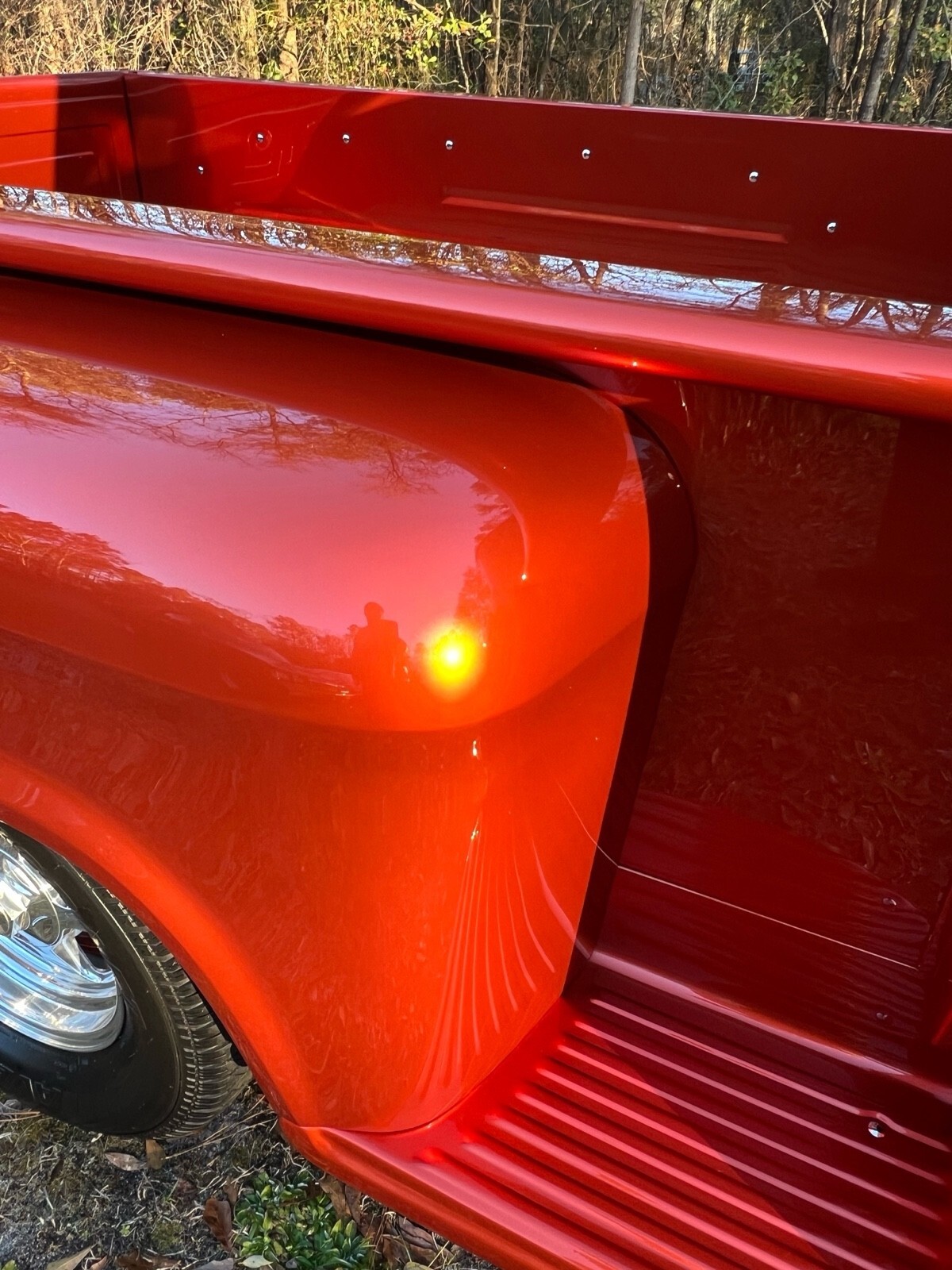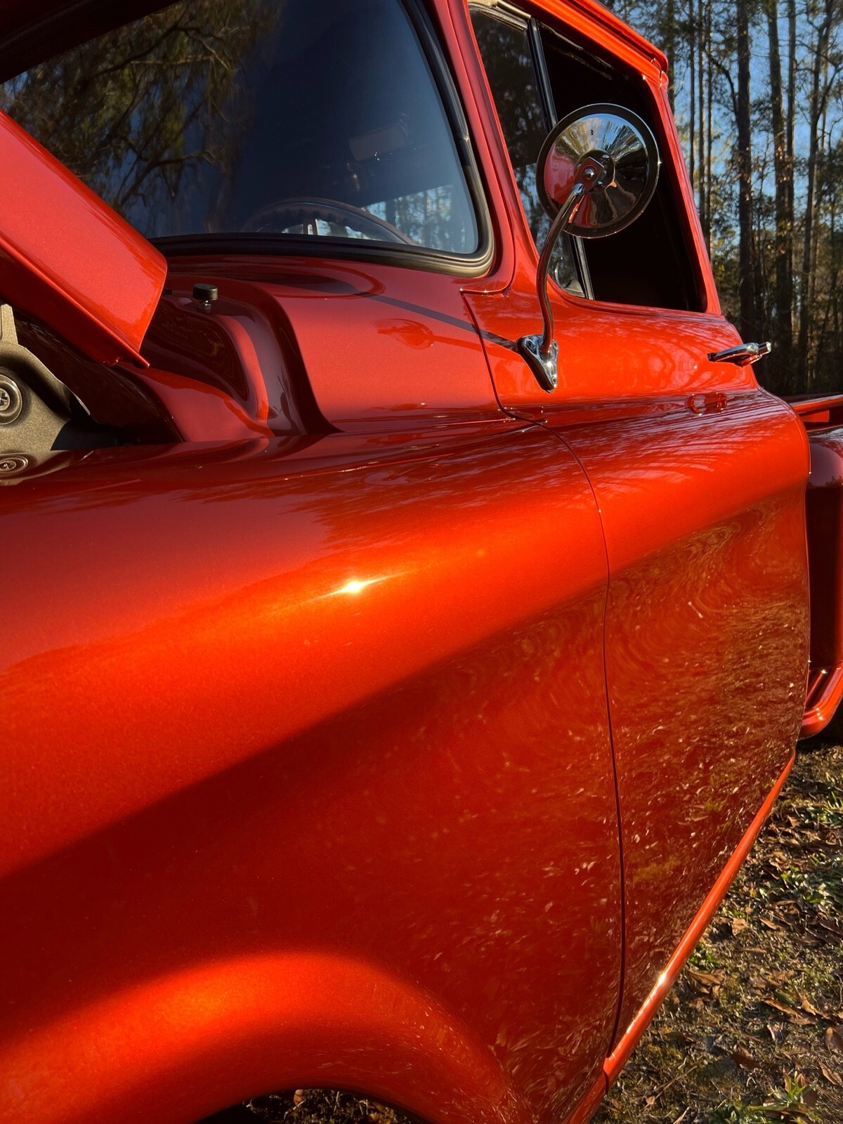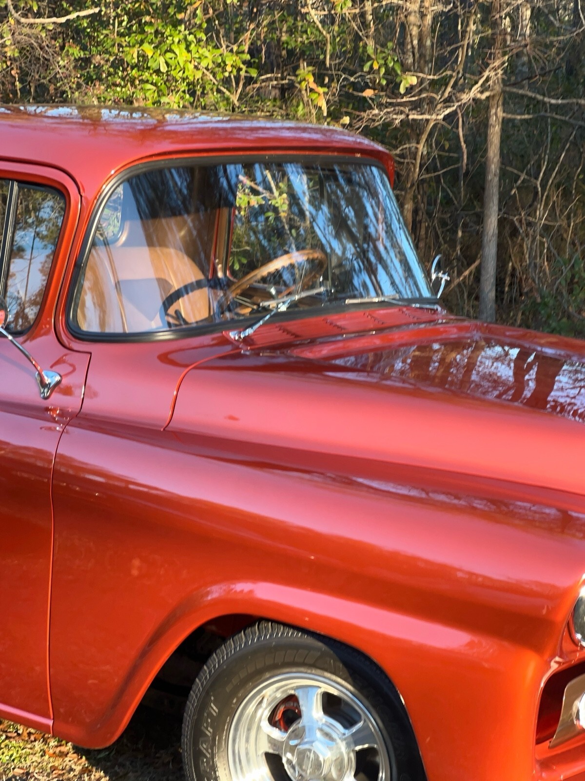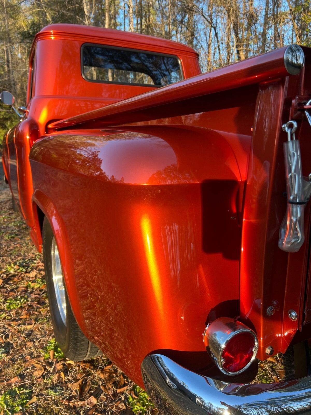 Gorgeous 1955 custom GMC short bed pickup. rotisserie restored show truck. The fit and finish of everything on this truck is immaculate pictures do not do it justice! Show quality paint and chrome, killer cocoa brown interior, paint matched parts underneath. Every part on this truck was taken off, painted and wet sanded to a perfect finish. Wood bed is flawlessly finished oak. Ready to win trophies at the next car show! This truck drives smoothly and brakes well. It is ready to enjoy now!