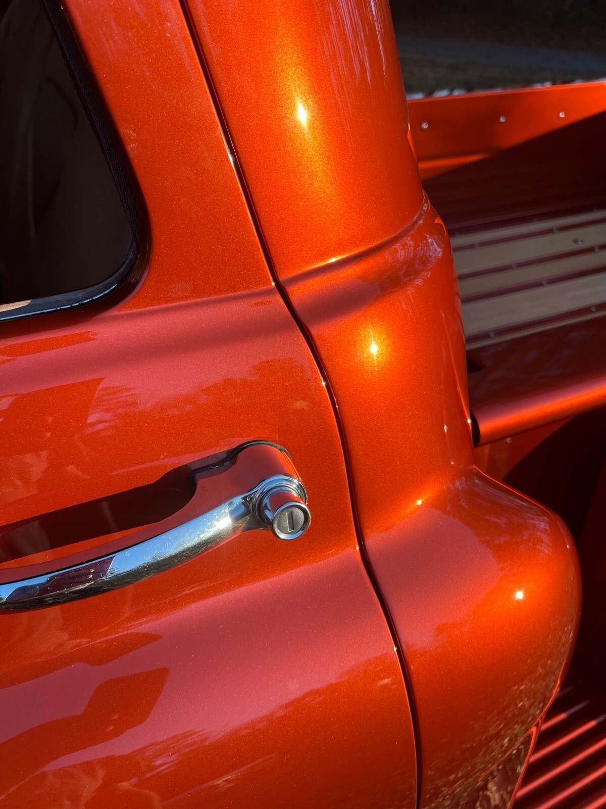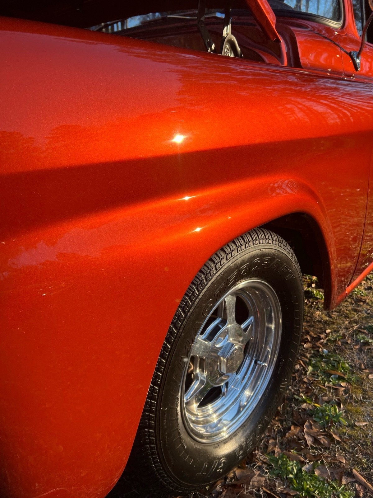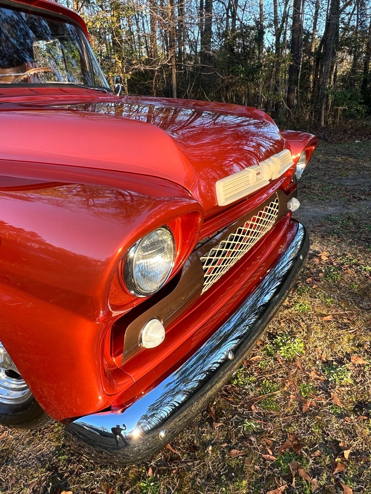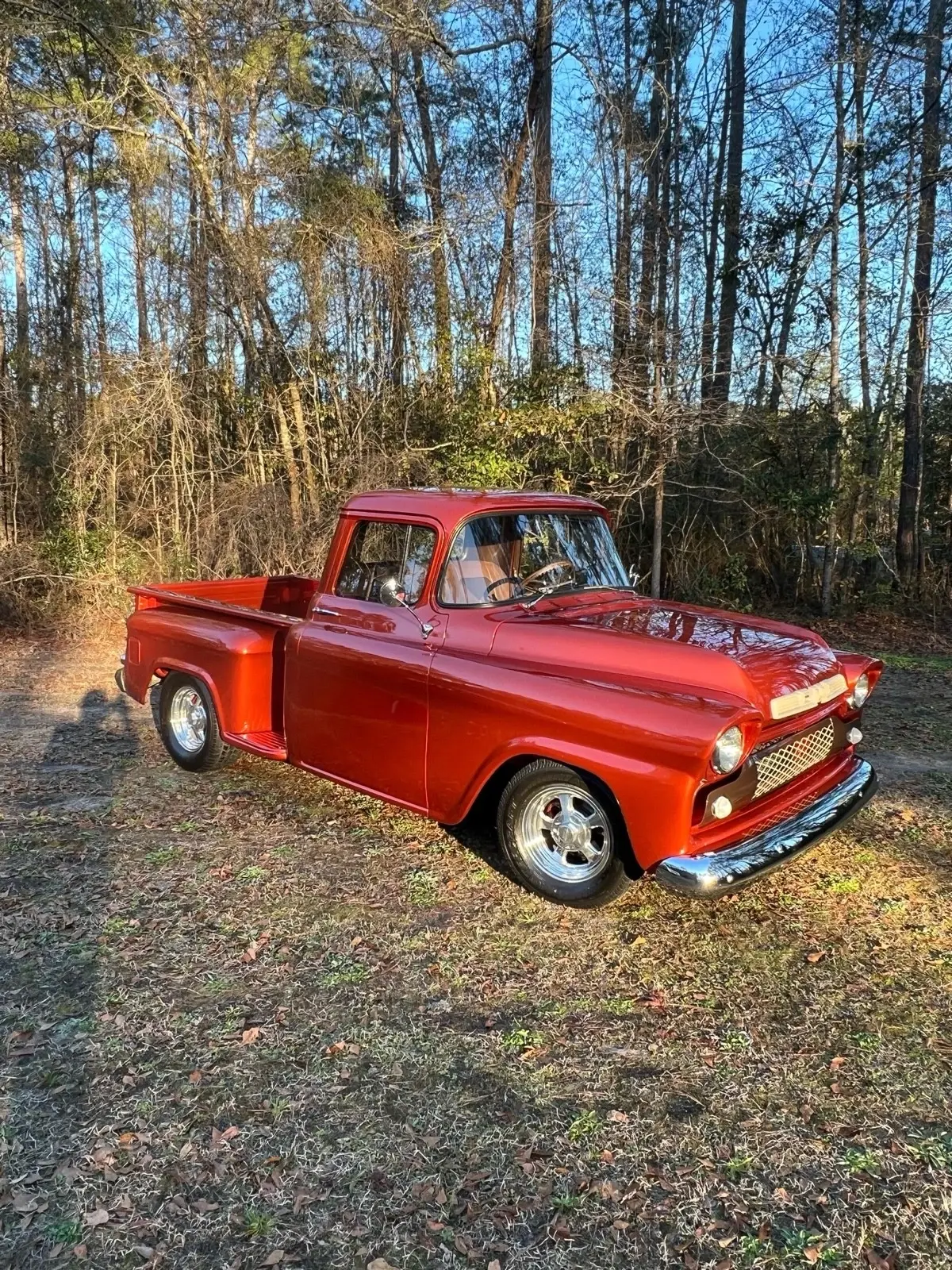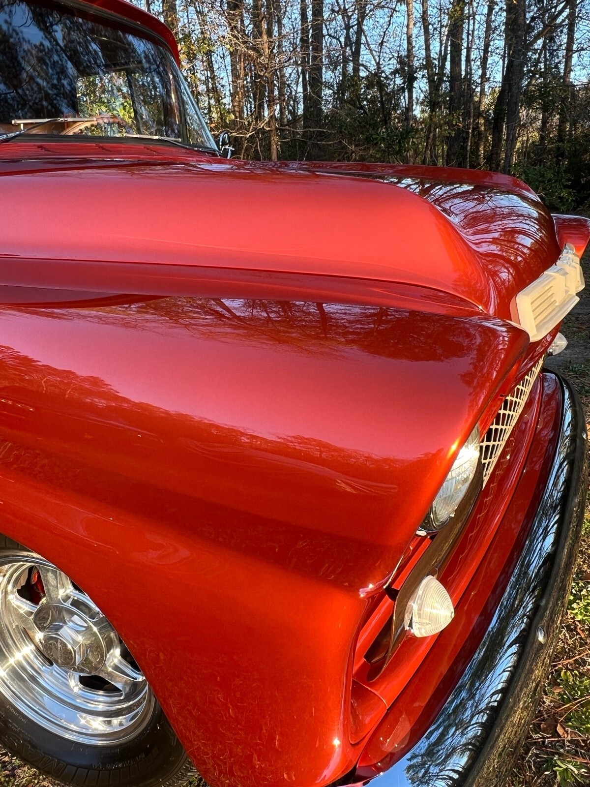 Gorgeous 1955 custom GMC short bed pickup. rotisserie restored show truck. The fit and finish of everything on this truck is immaculate pictures do not do it justice! Show quality paint and chrome, killer cocoa brown interior, paint matched parts underneath. Every part on this truck was taken off, painted and wet sanded to a perfect finish. Wood bed is flawlessly finished oak. Ready to win trophies at the next car show! This truck drives smoothly and brakes well. It is ready to enjoy now!