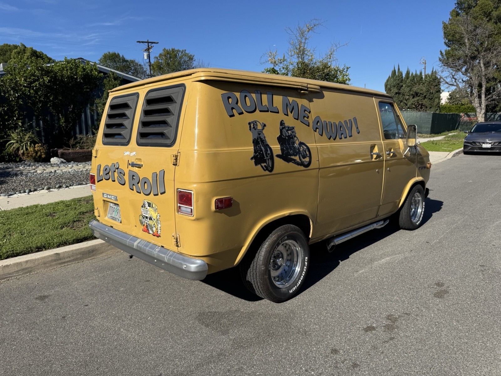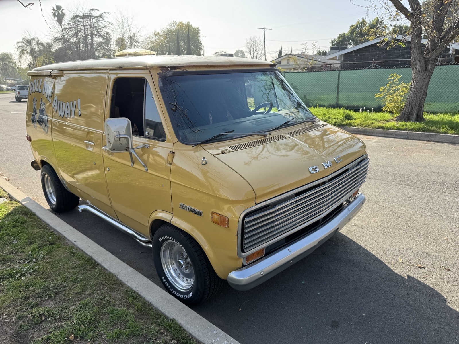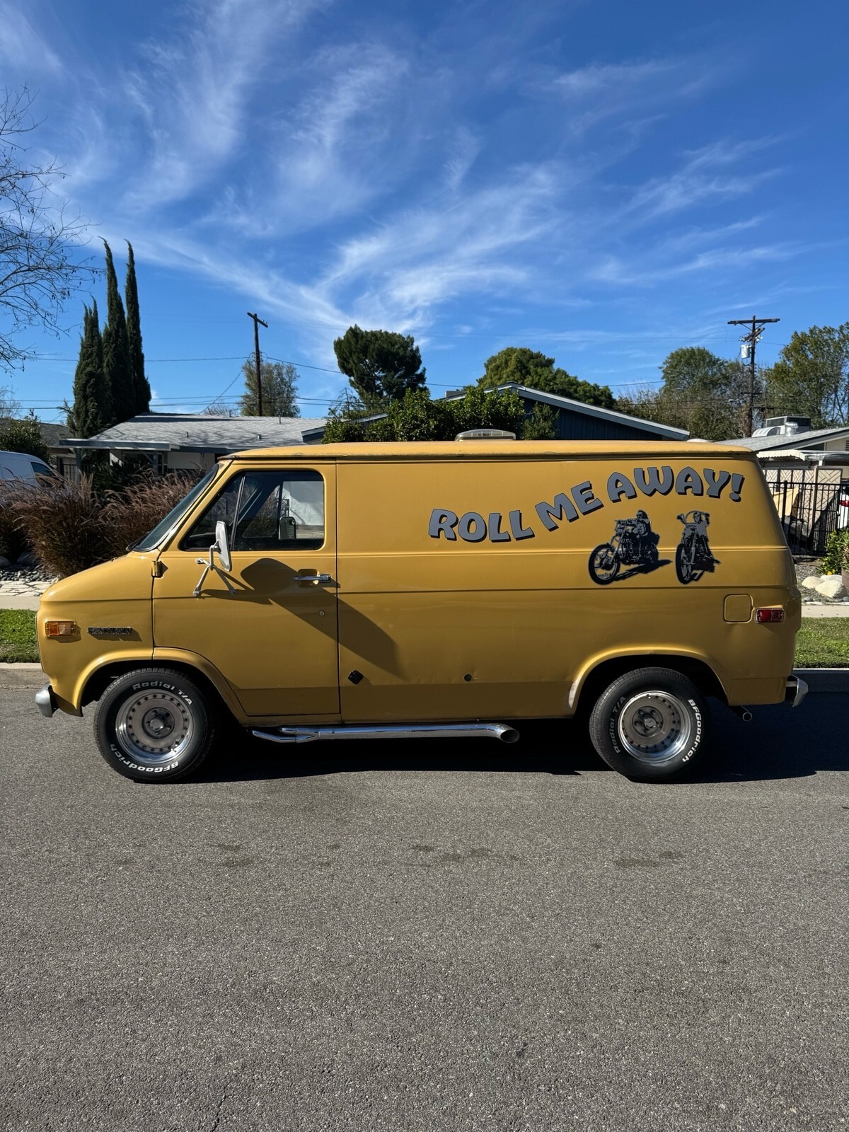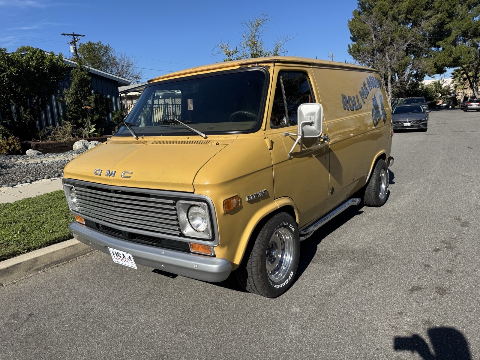 1974 GMC Vandura shorty for sale California car Original paint, sunset gold color. 250 cui 6 cyl engine 3 speed manual transmission on the floor Really cool smog exempt shorty van with lots of upgrades and recent work. Staggered Centerline wheels with new BFG tires. Custom interior, insulated throughout the van. Diamond rubber mat under the carpet Foldable full size orange Futon also new Reupholstered front seats with yellow houndstooth inserts. Orange 3 point seatbelts. Interior LED lights Vanessential soft cabinets, adds lots of storage. ApplePlay stereo with rear view camera - new battery -new HD radiator and hoses -new water pump -new engine mounts -new exhaust manifold and gaskets -new valve cover gaskets -all new coolant hoses and vacuum lines -new battery tray -new front and rear brakes -new shocks all around, front lowering springs -new front windshield gasket Clean title in my name, registered till 2027. The Van runs and drives perfect. Will ship on buyers expense. Call with any questions you have 8l8-3l0-l866 Tom