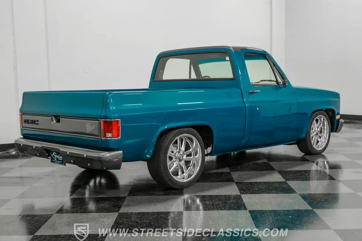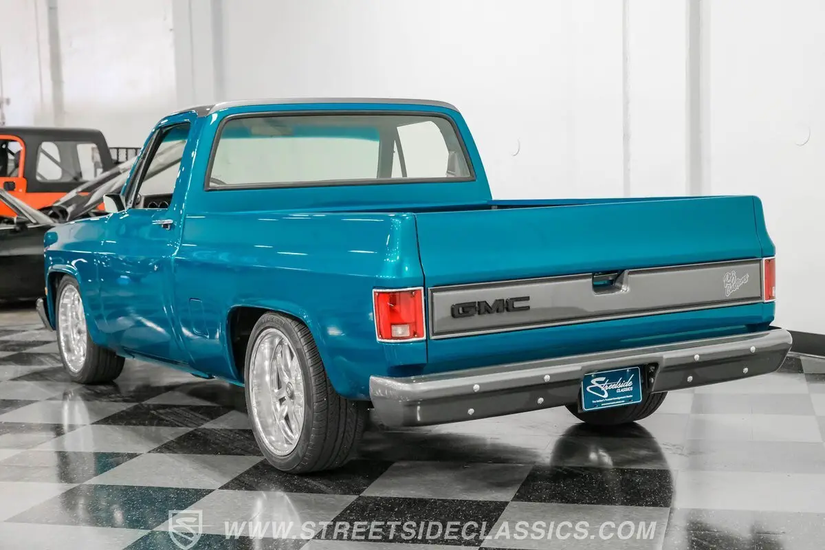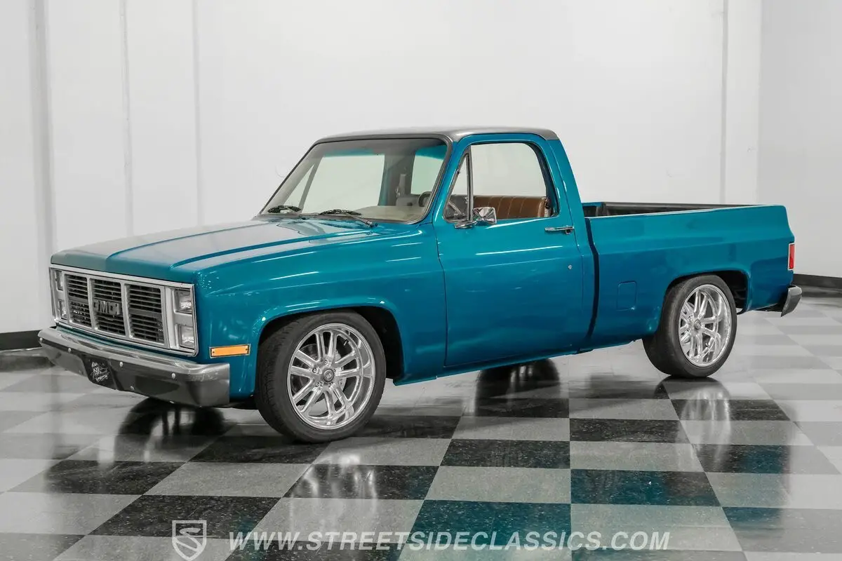 This 1987 GMC C1500 Restomod blends nostalgic charm with modern performance with its striking Bikini Blue paint with Granite Crystal Metallic accents on the roof, bumpers and tailgate. Combined with the powerful stance, this C1500 is ready to make a bold impression wherever it goes.