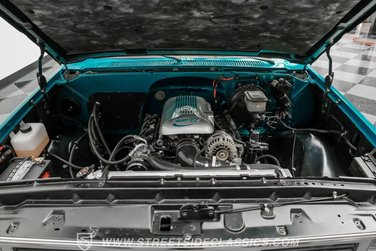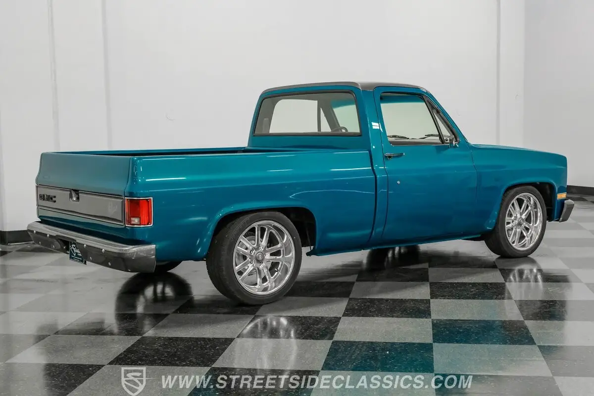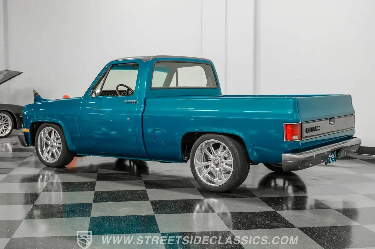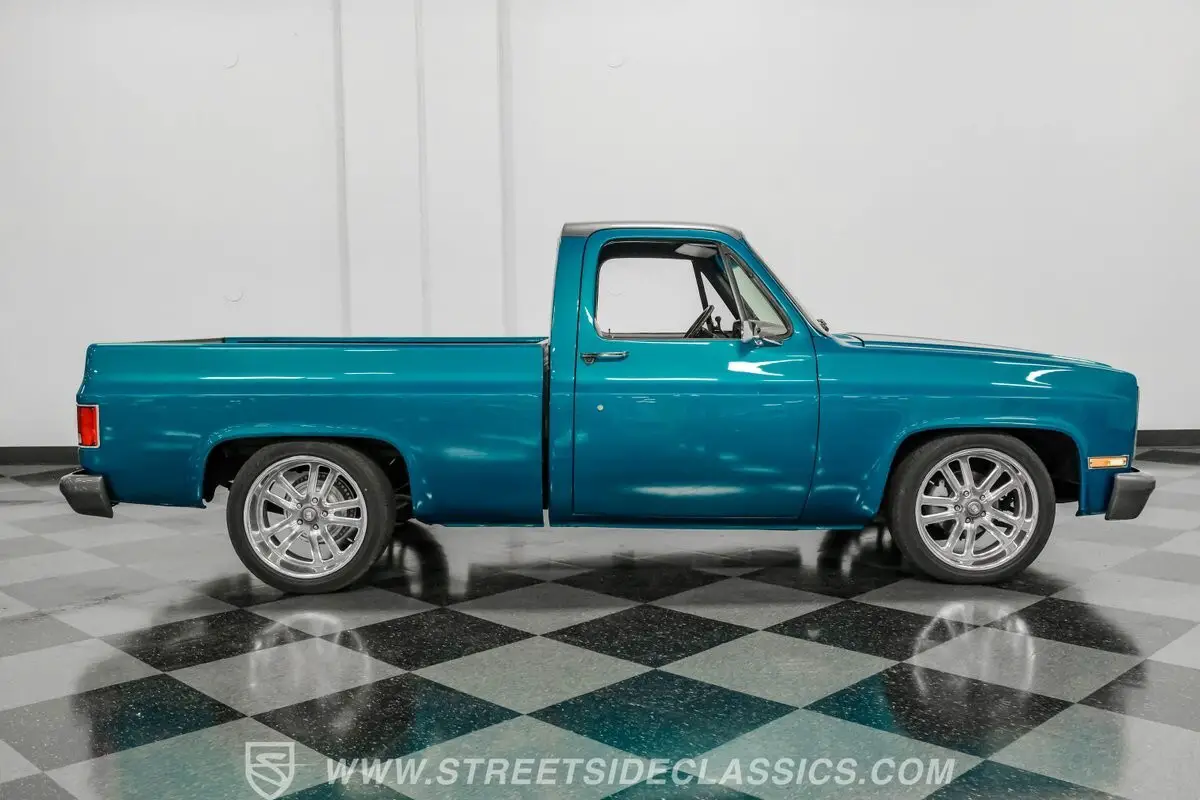 This 1987 GMC C1500 Restomod blends nostalgic charm with modern performance with its striking Bikini Blue paint with Granite Crystal Metallic accents on the roof, bumpers and tailgate. Combined with the powerful stance, this C1500 is ready to make a bold impression wherever it goes.