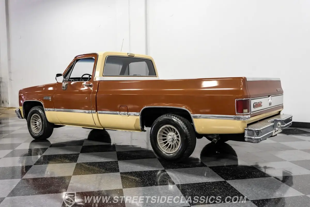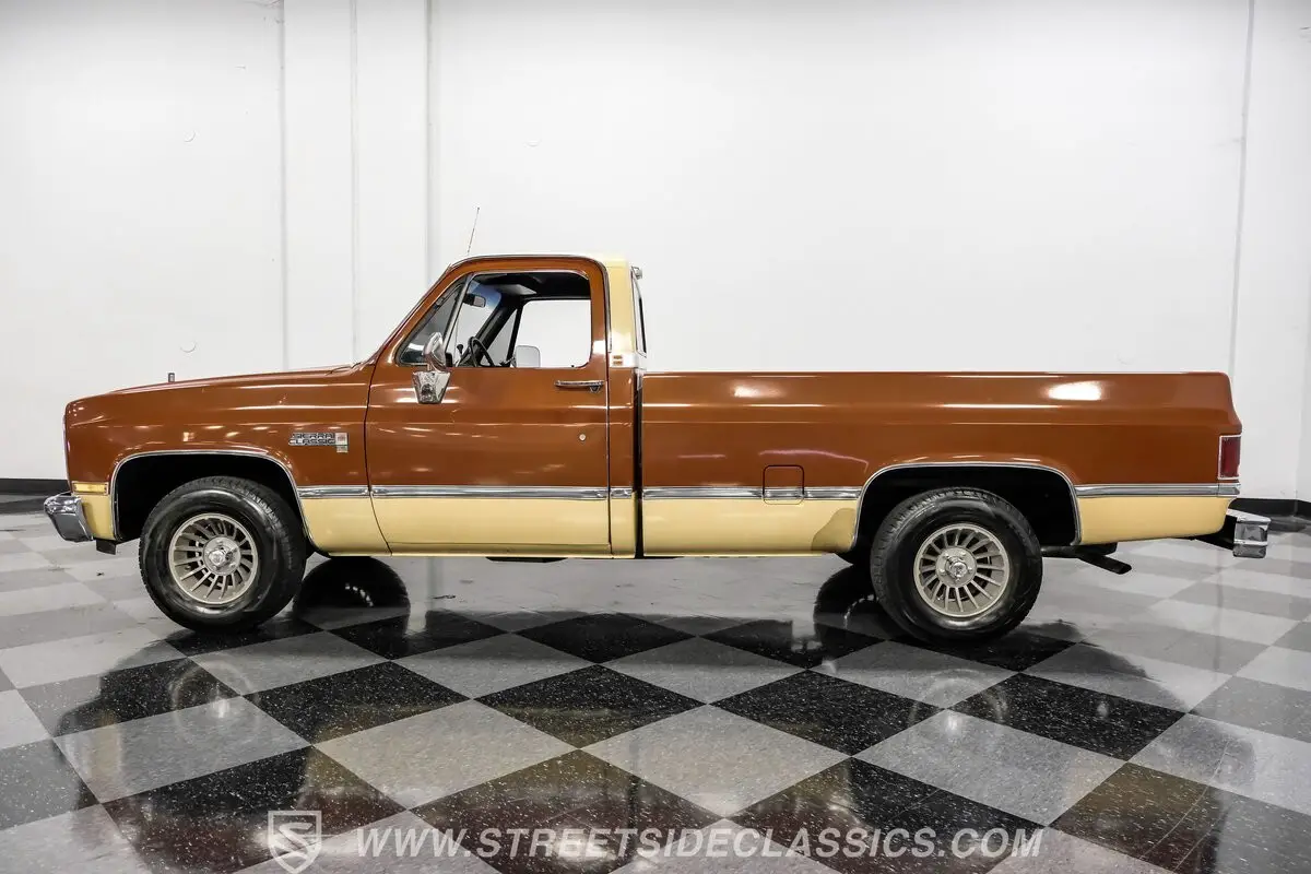 This 1983 GMC Sierra 1500 Classic is a durable slice of American craftsmanship built to work hard and stand out doing it. Wearing its original Light Bronze and Tan paint with natural patina, complemented by the factory grille and chrome bumpers, this pickup carries the kind of authentic character that turns heads wherever it goes. Whether you want a dependable partner for weekend projects or a nostalgic cruiser for sunny drives, this truck delivers with presence and purpose.