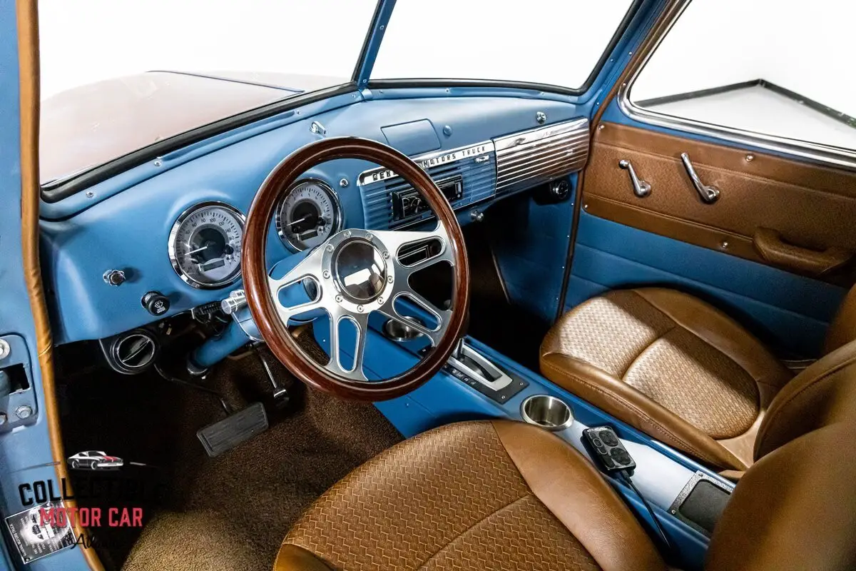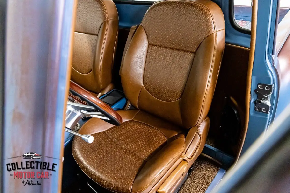 This truck nails the "finished but not over-restored" look. The blue paint is complemented by a deep, custom patina-style accent treatment that gives it a tough, period-correct attitude without looking rough or unfinished. The truck sits low and level with a clean, simple presentation and great proportions-exactly how a properly built street truck should.