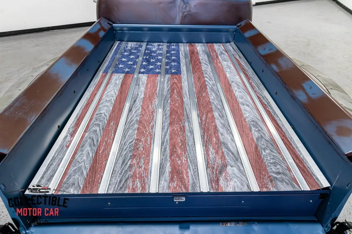 If you're after the look of a true old-school 5-window with the manners of a modern driver, this is it. Classic lines, killer stance, and a fresh LS/overdrive combo backed by air ride and cold A/C. Finished in a slick blue with a custom patina-style treatment, sitting low over wide whitewalls, and wrapped up with a fully updated interior that still fits the truck's vintage vibe.