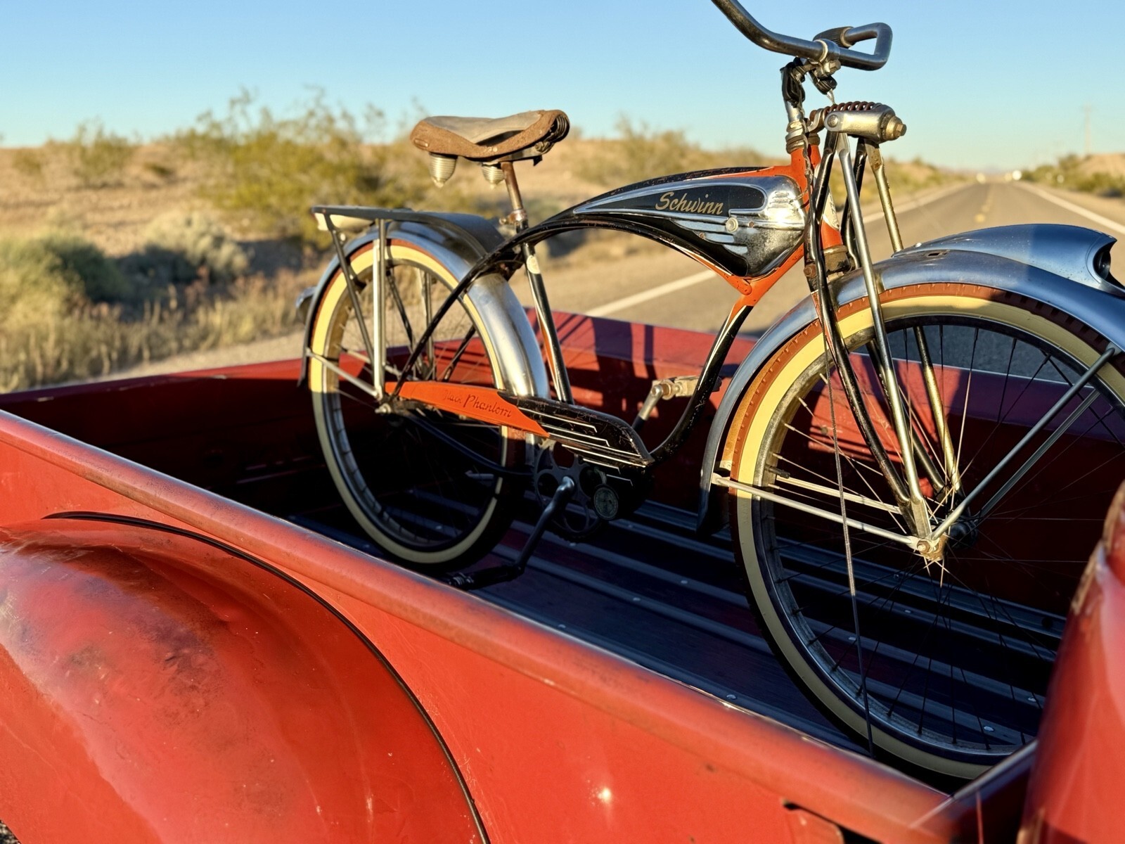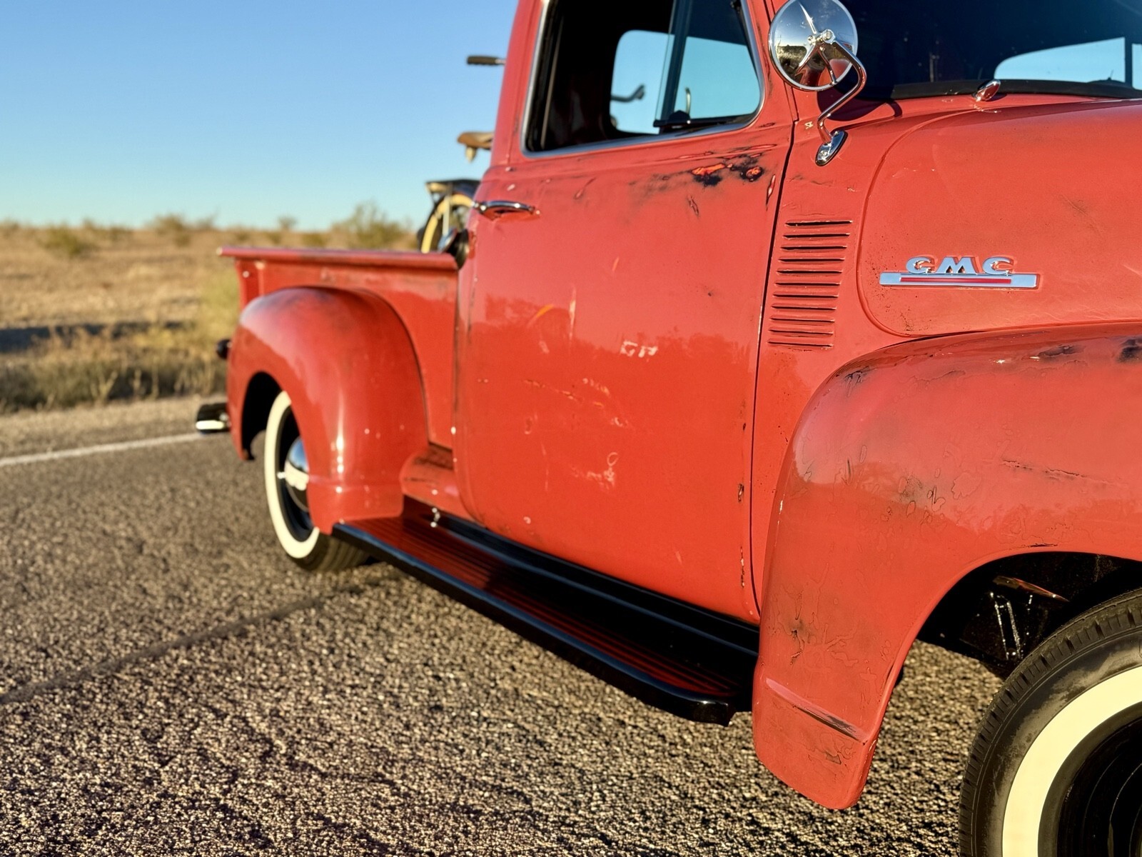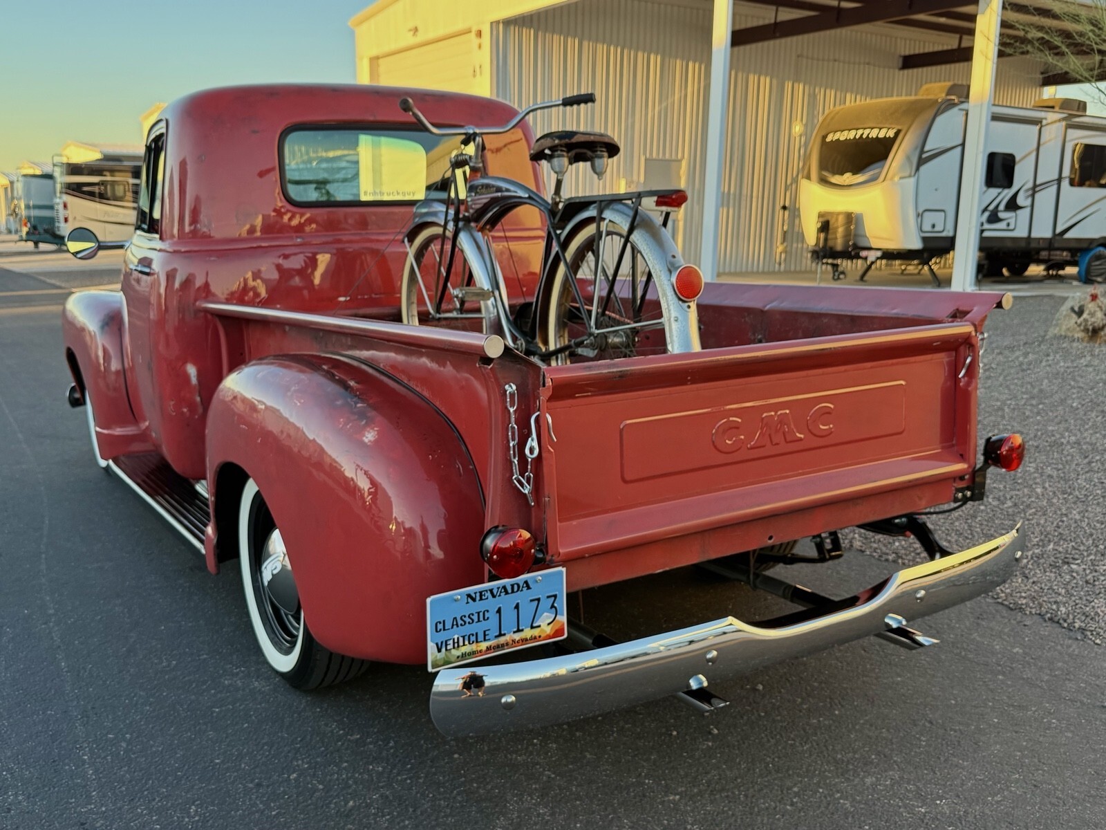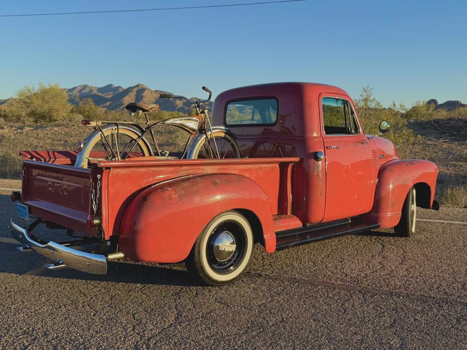 This restored GMC is looking pretty good for 77 years old and tagging along in the bed is a 77 year old Schwinn Phantom‼️This was a frame off build with only 500 miles on it since completion. This is a California truck so super clean inside and out, not the original color, but this was the color that was on the truck when it was handpicked to restore, trucks been polished to its current shine as seen in pics. Powertrain consist of a 1977 Chevy 250 engine backed by a five speed S10 manual transmission and Chevy Colorado rear end. This was all done to cruise at highway speeds. Some of the rebuilt or new parts consist of bumpers, grill, badging, mirrors, wheels, tires, hubcaps, glass window, seals, seat, floormat, lights, engine, transmission, brake lines, brakes, distributor, carburetor, radiator, hoses, belts, battery, cab & doors have been soundproofed for a quieter ride. This is one heck of a nice truck currently located in Lake Havasu, AZ