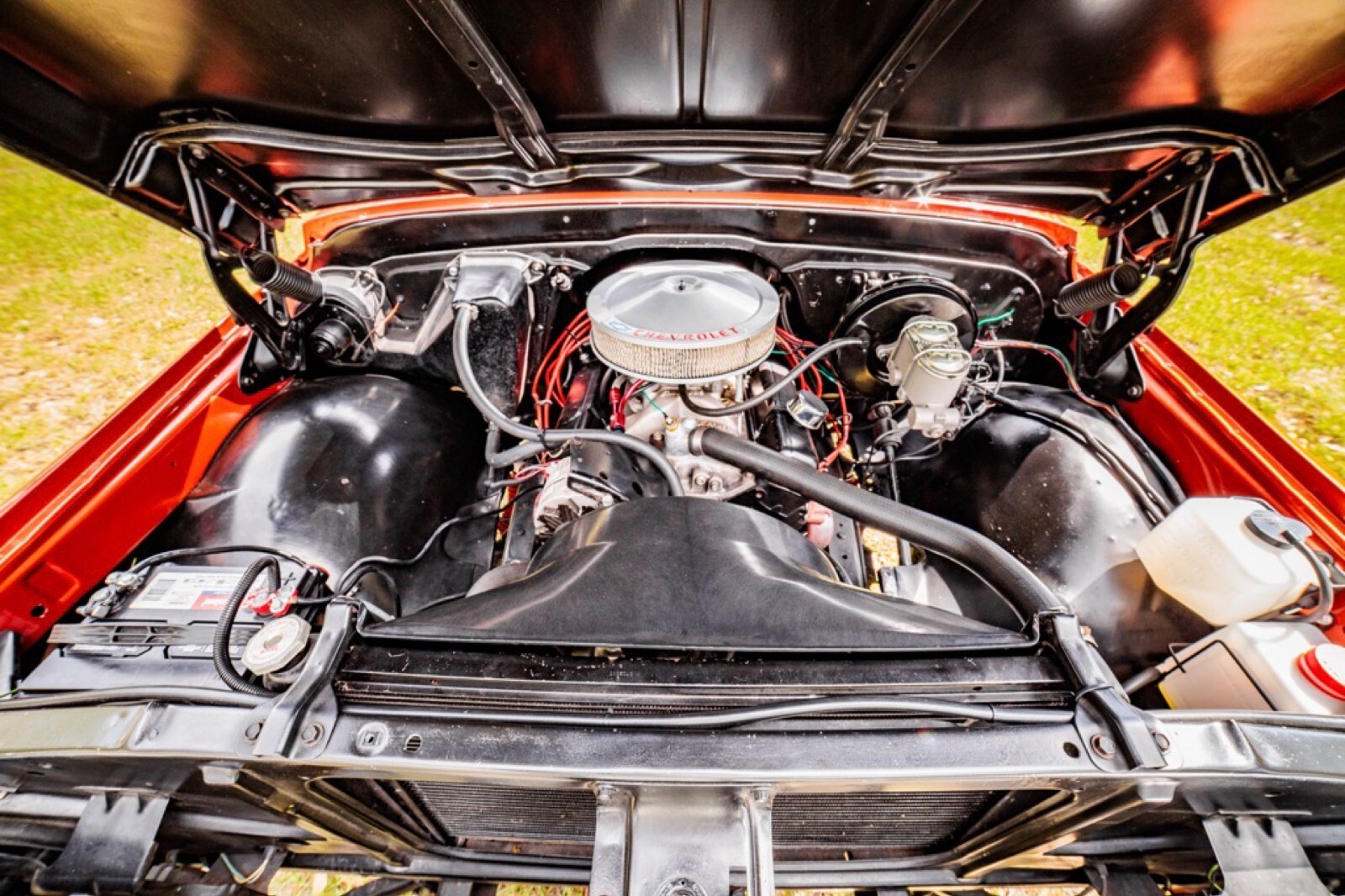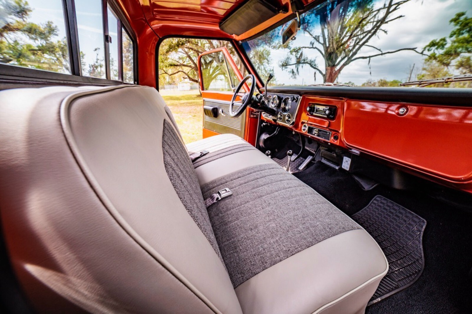 Finished in striking Burnt Orange, this K1500 commands attention while staying true to its heritage. Inside, the reupholstered interior features two-tone Grey vinyl and cloth inserts with period-correct detailing.