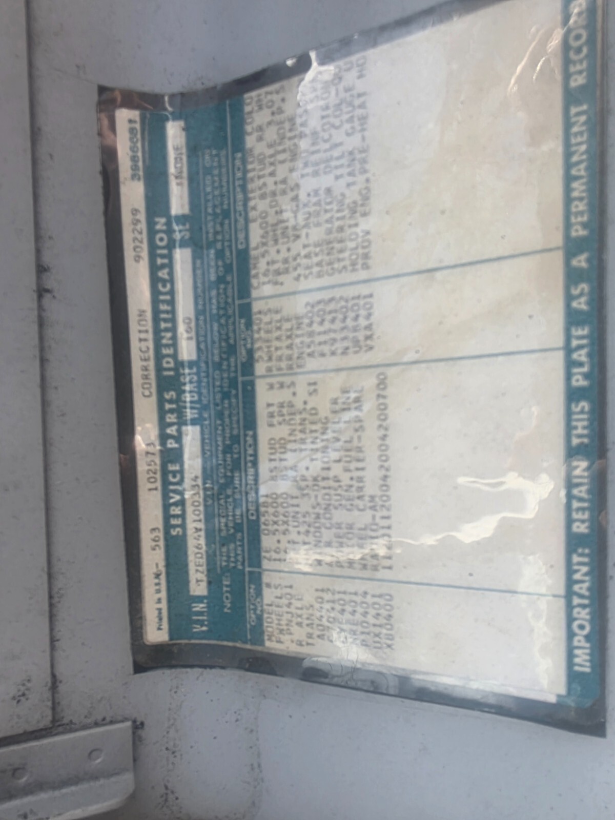 | VIN: | Tzed64v100334 |