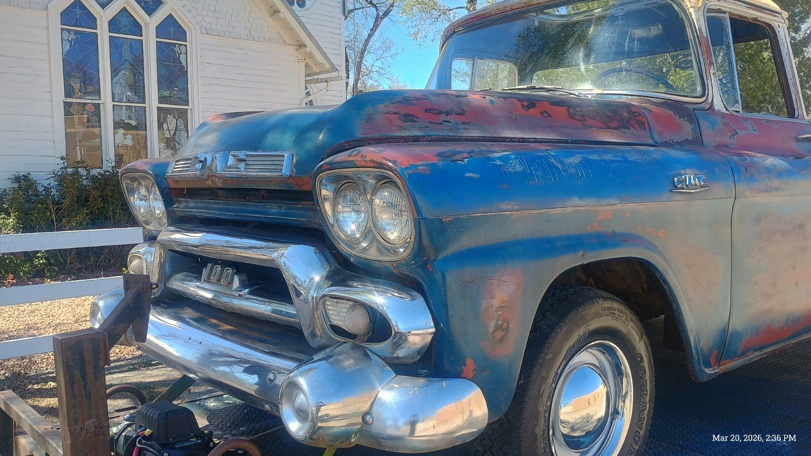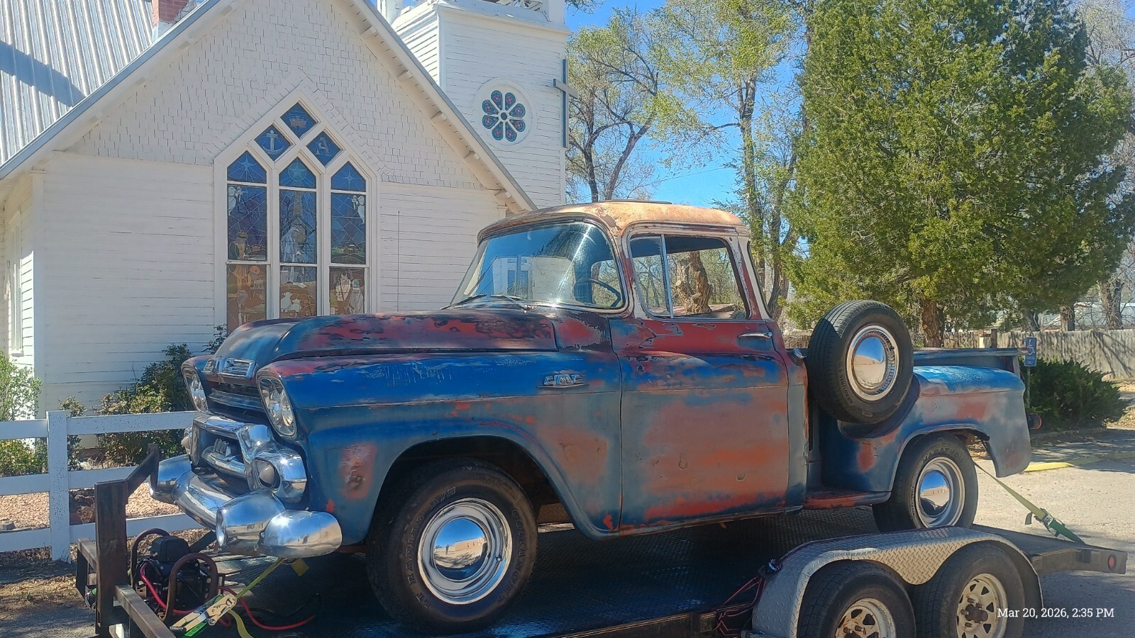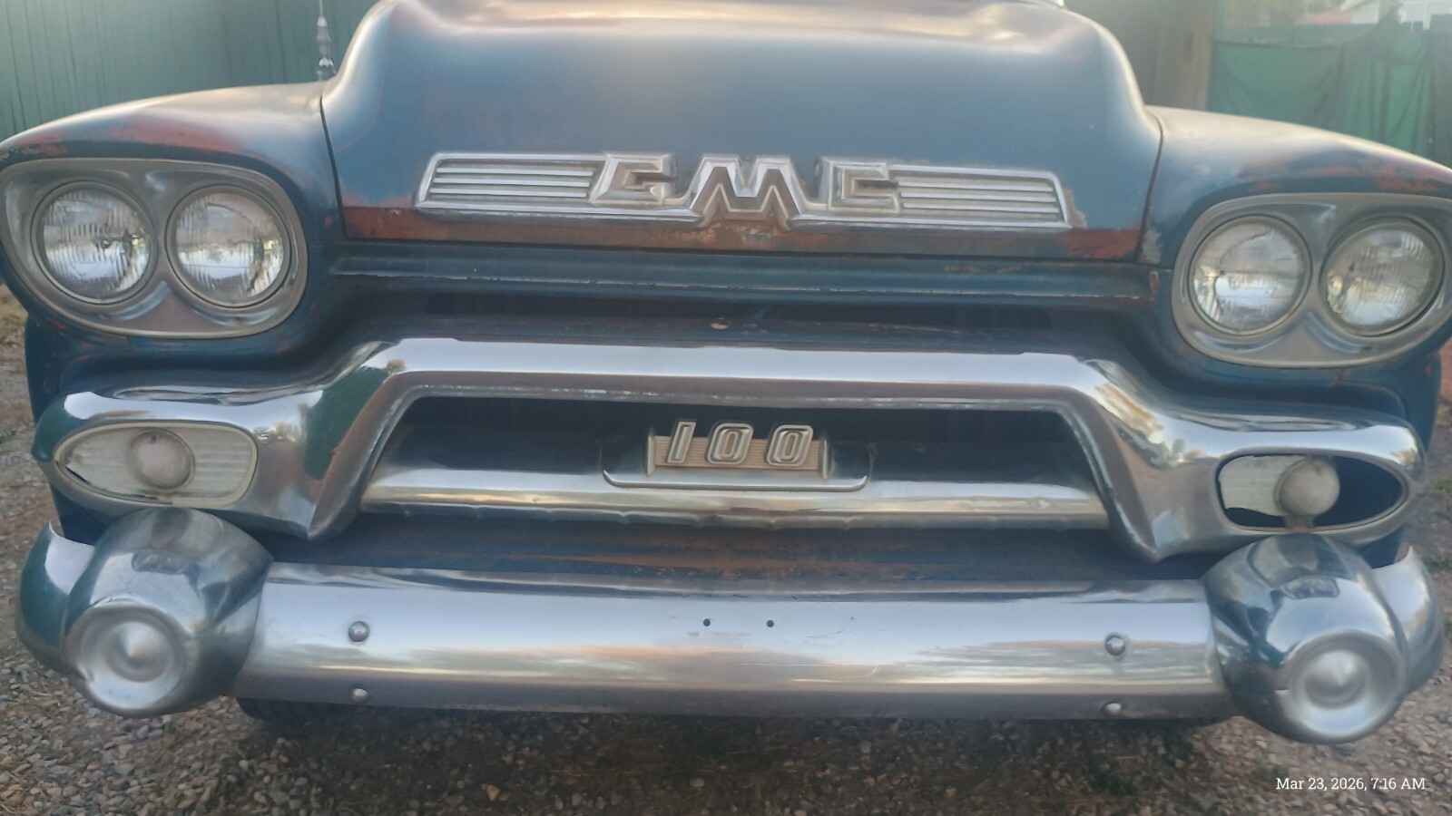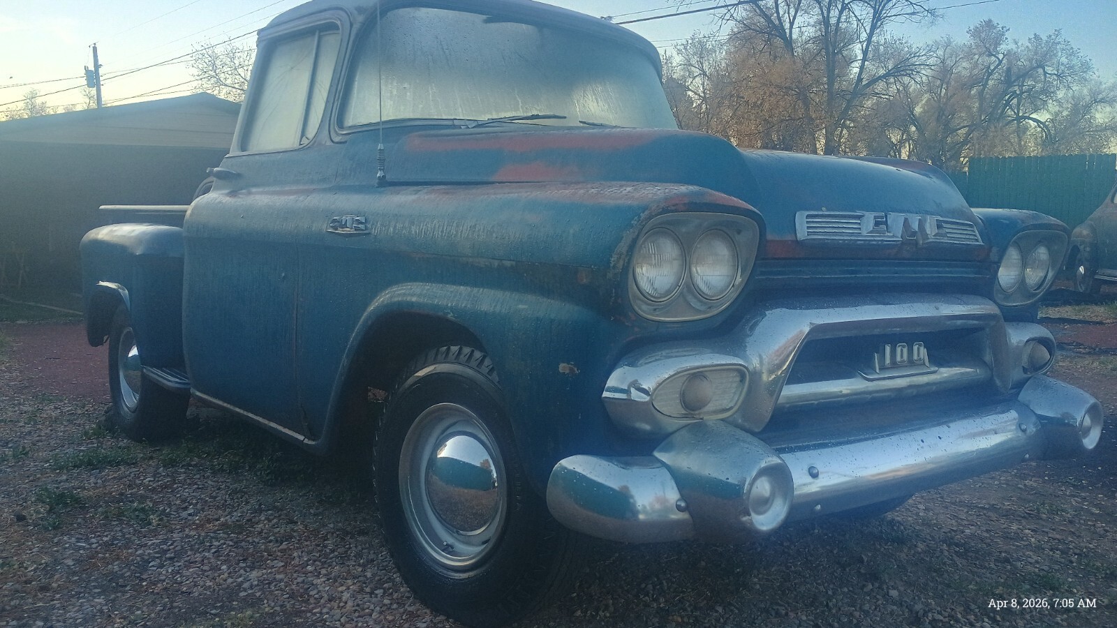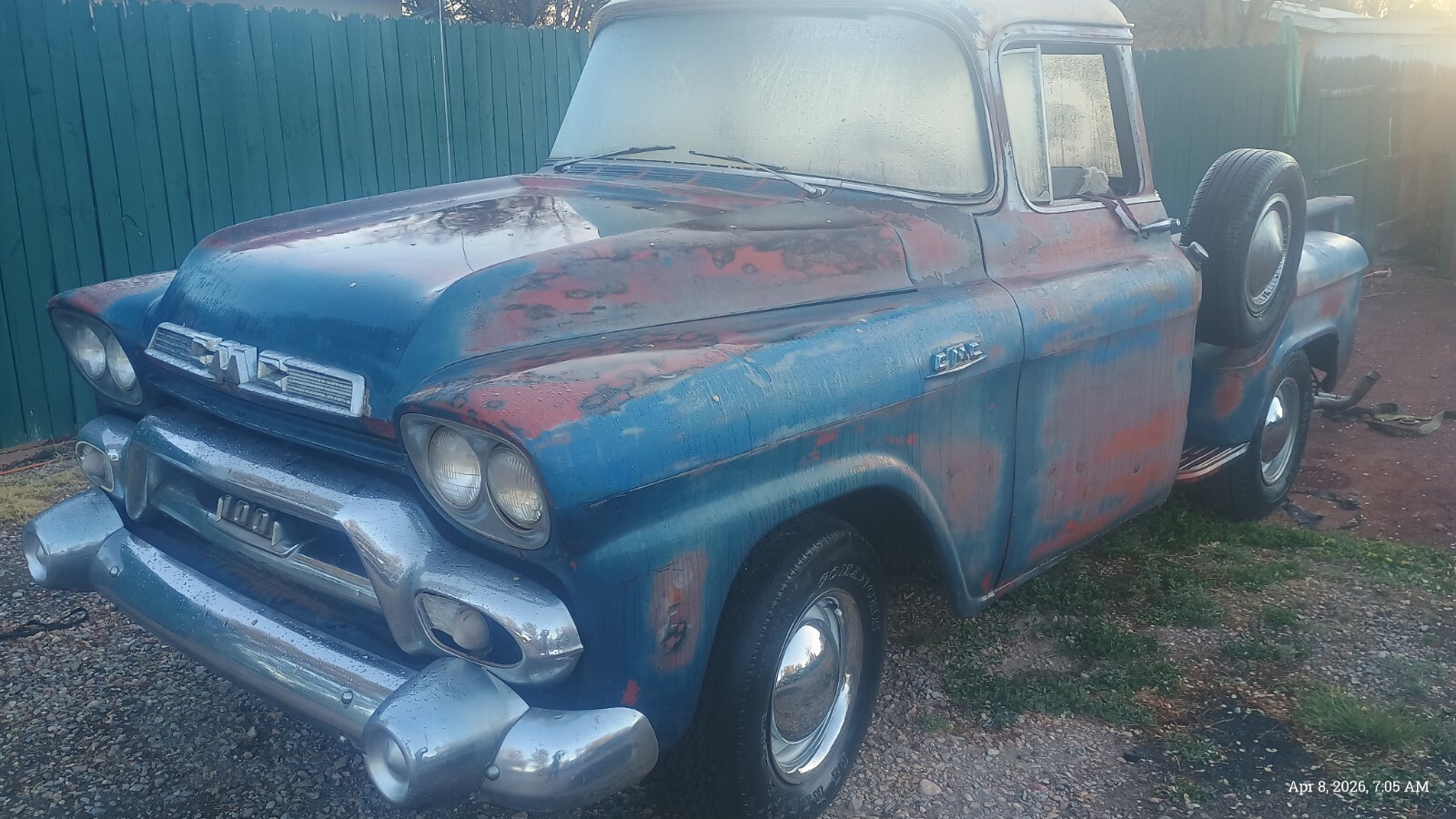 1958 GMC 100 BIG WINDOWhalf Ton Shortbed with strong running 350 V8 dual exhaust engine and good Hydro-Matic transmissionInstalled an ATI distributor electronic ignition fires right up with gas fed to carb98 percent rust free dry desert New Mexico truck,very very straight, previous owner had installed a sunroof,which I had planned on the repair, of as only blemish on the otherwise excellent body,98 percent rust free,Has the original bench seat with old upholstery on it.Beautiful chrom, missing back bumper,good windshield and Big Back Window needs door glass.An easy finish to restore needs brakes, wiring,gas tank cleaned,dual exhaust although have two good mufflers,needs linkage to column shift Hydro-Matic installe, it shifts through the gears now with the levers on the transmission,just few things like this to get it up and running not a nicer example my guess to be found.New Mexico title in my name with matching vin tag.Located near Albuquerque New Mexico.Call 505 -453-8982 for more details if you likeBuyer responsible for transportPayment preferred is wire transfer