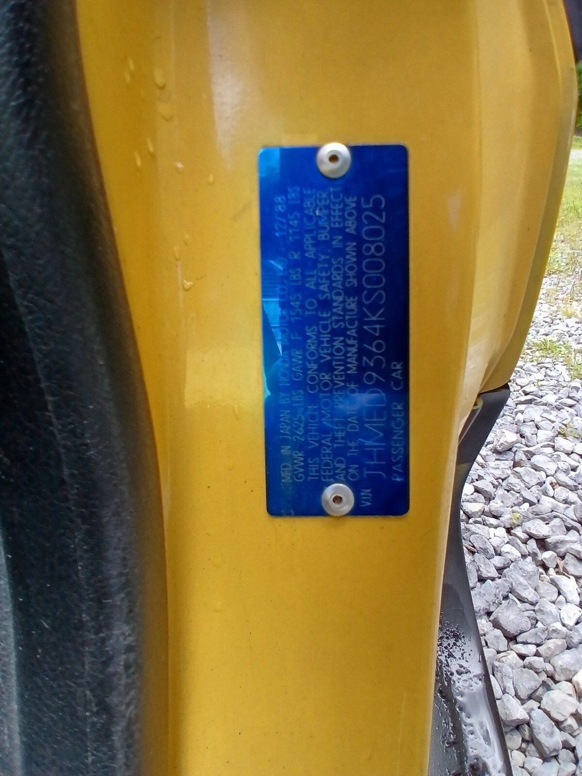 Owned this 89 Si since 2009. B16 swapped and converted to obd1 around the same time. Short geared YS1 cable transmission. Has a header and exhaust. Running off of a chipped P28 ecu. Ground Control coilovers. Was original paint code Y49 Barbados Yellow Si, had some minor bodywork and resprayed the same color around 15 to 20 years ago. The car has been 100% garage kept since I've owned it.