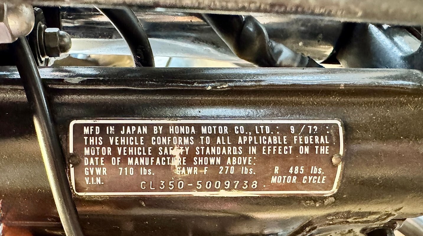 This beautifully preserved 1973 Honda CL350 K5 Scrambler is a standout example of Honda's iconic 350cc lineup. its original 325cc air-cooled SOHC parallel-twin engine paired with a 5-speed transmission, this classic delivers smooth, responsive power-ideal for both city cruising and open-road riding.