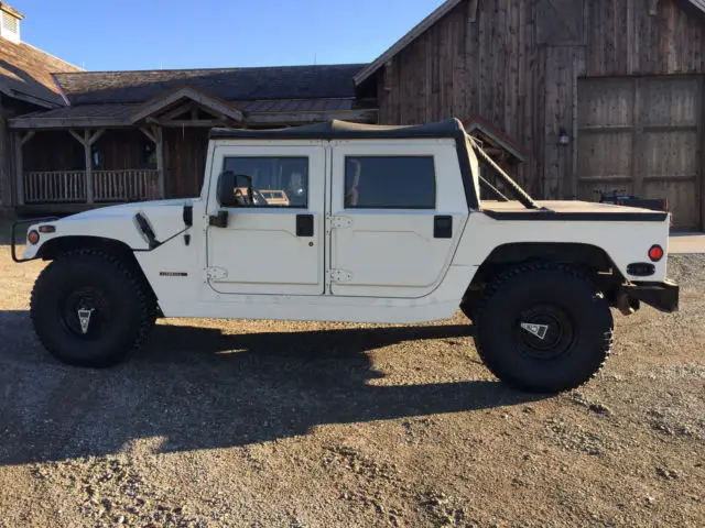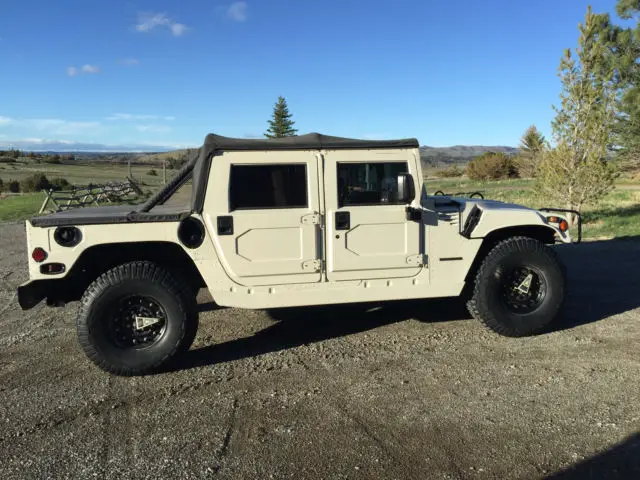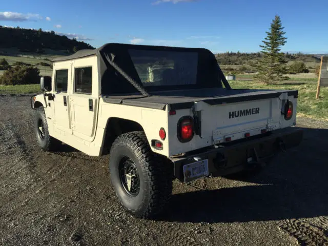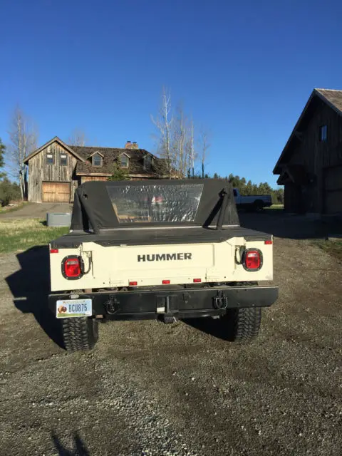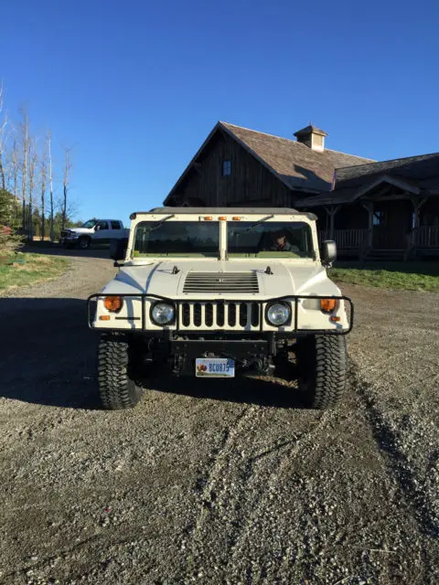 This is a 1996 Hummer H1 convertible 4 man unit with a 6.7 diesel engine. Low miles, only two owners, stored inside and in excellent condition. Brush guards, CD player and heavy duty winch. Tires and top are in great shape. Paint has a few chips and AC needs some work. This is not a turbo engine so no 8th cylinder block problem and no need to worry about injector pump failures, very reliable engine and plenty of power for us.