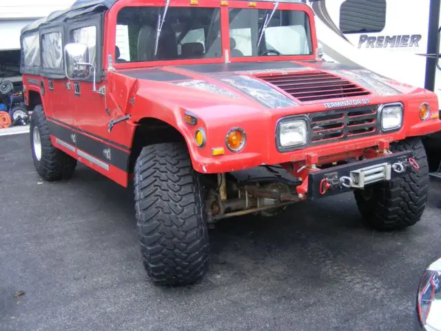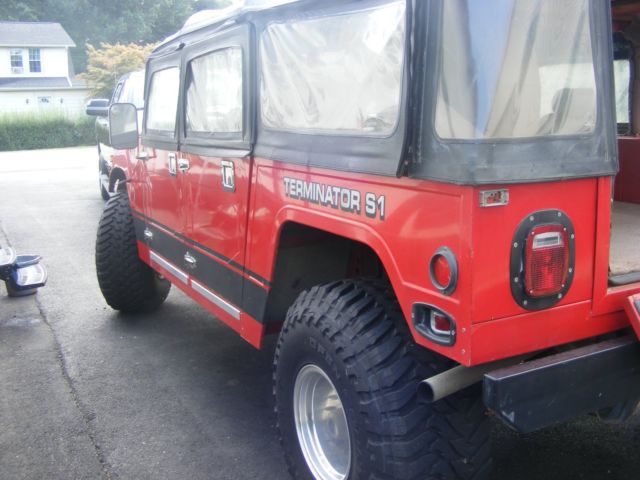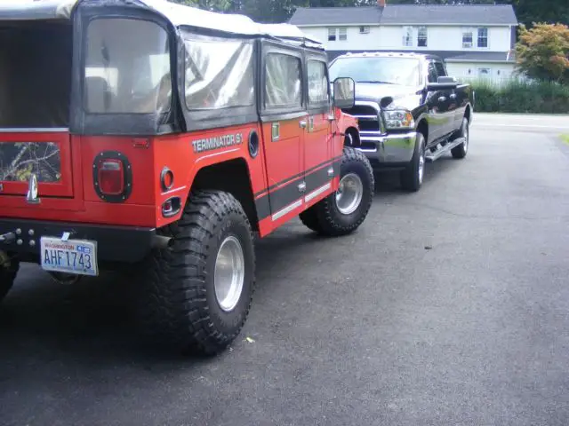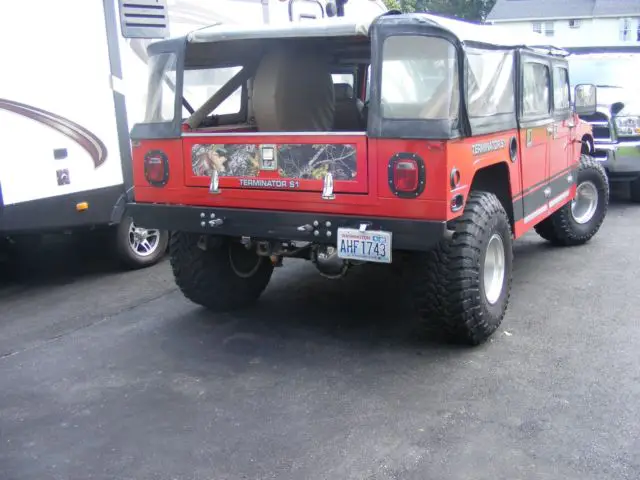 Custom Humvee truck.daily driver.weekend off road red in color 4 door left hand driver 383 stroker motornew in 2015 700 r4 automatic Elockers brand new toyo 37inch tires mickey Thompson wheels.full canvas top aprox 25000 on motor and trans no warranty asis