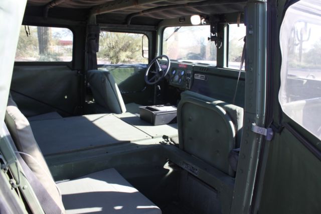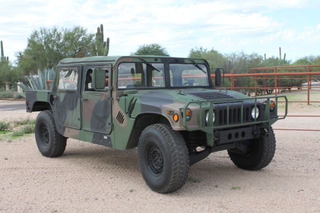 THIS H1 HUMMER IS A VERY GOOD RUNNING AND DRIVING TRUCK. IT HAS A 6.2 DIESEL AND AUTOMATIC. I WAS TOLD WHEN I BOUGHT IT THAT IN 2007 IT HAD A COMPLETE MILITARY REBUILD. YOU CAN SEE ALL THE NEW CANVAS DOORS AND TOP. TIRES ARE EXCELLENT. IT WAS ALL REPAINTED AND NEW SEAT COVERS. IT REALLY RUNS AND DRIVES WELL. ALL THE GAUGES AND LIGHTS WORK. SUPER FUN TRUCK. CLEAN ARIZONA STREET LEGAL TITLE IN HAND READY TO TRANSFER.