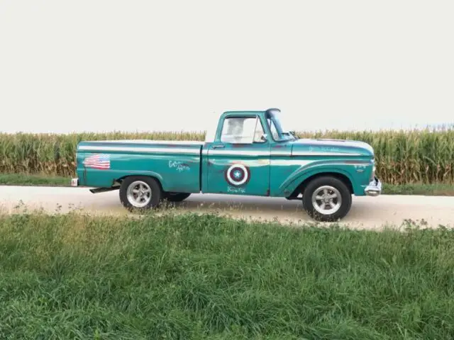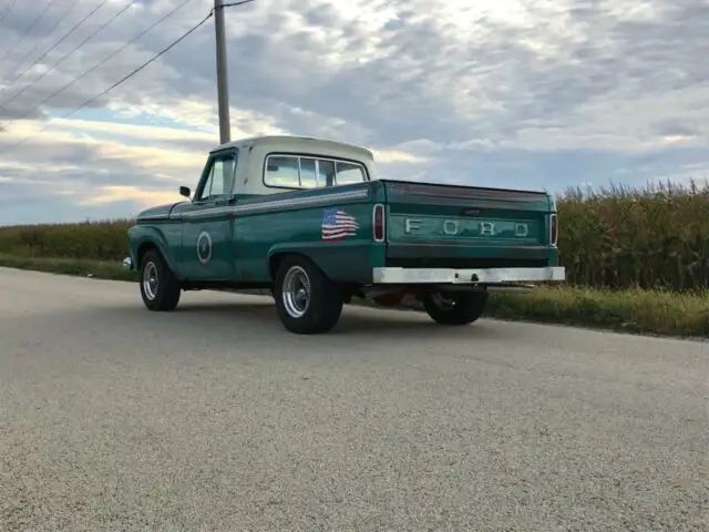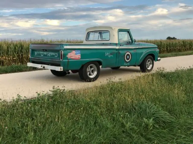 Her is a 1965 ford f100 2wd . This truck has a 347 stroker v8 440 hp/425 tQ . Bilt with the best parts money can buy all msd ignition package and a Holley sniper EFI system . A/C to keep you cool on hot days c6 auto trans with lokar shifter ford 9” rear end fuel cell in bed. Truck has a cool patina look with many coats of clear all new interior radio America racing wheels. This is a very cool truck and would make a great addition to somebody’s collection. Thanks for looking