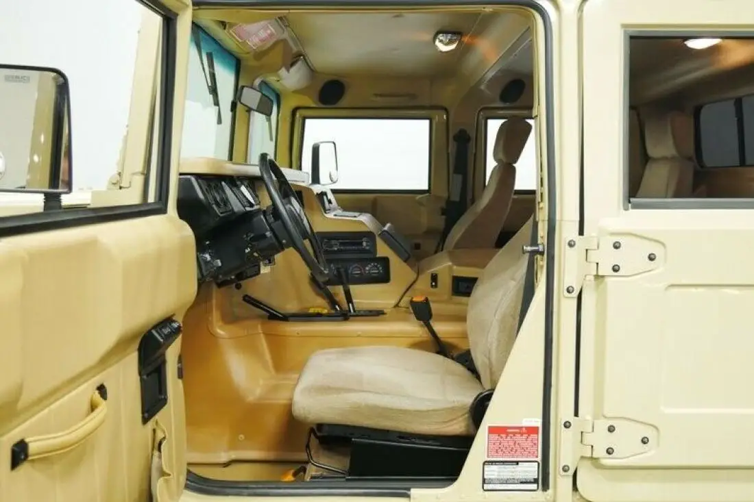 Inside is a tasteful beige interior that reminds you a Hummer is also a luxury vehicle just by the size it offers. Everyone gets their own high-back bucket seat. This is loaded with all the best comfort features, like power windows, power locks, cup holders, and cold-blowing air conditioning. The stereo is upgraded to an AM/FM/CD unit with an aux input for your favorite music player. But your favorite feature will be the sensation you get every time you step inside. Getting behind the wheel is an experience unlike anywhere else, where the full gauge package and commanding view gives an instant feeling of authority.