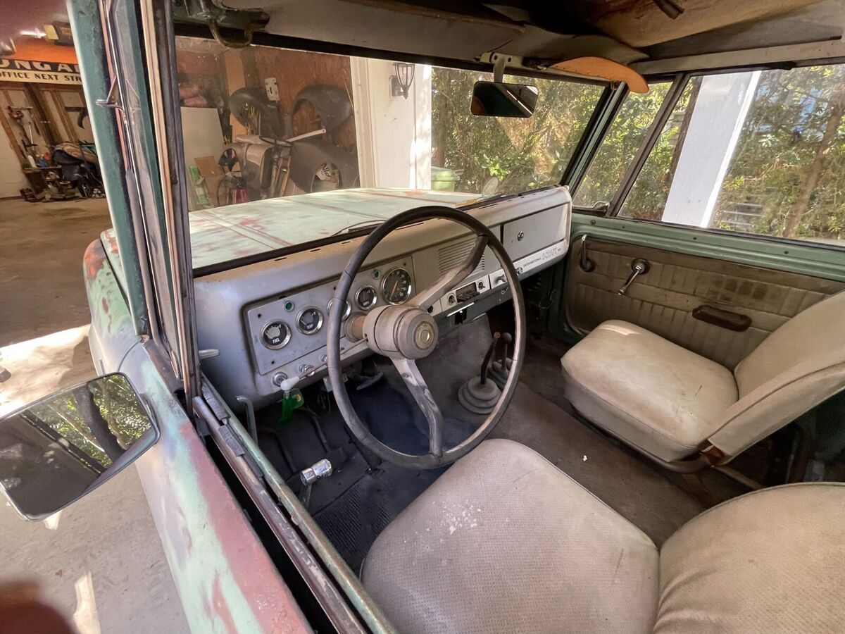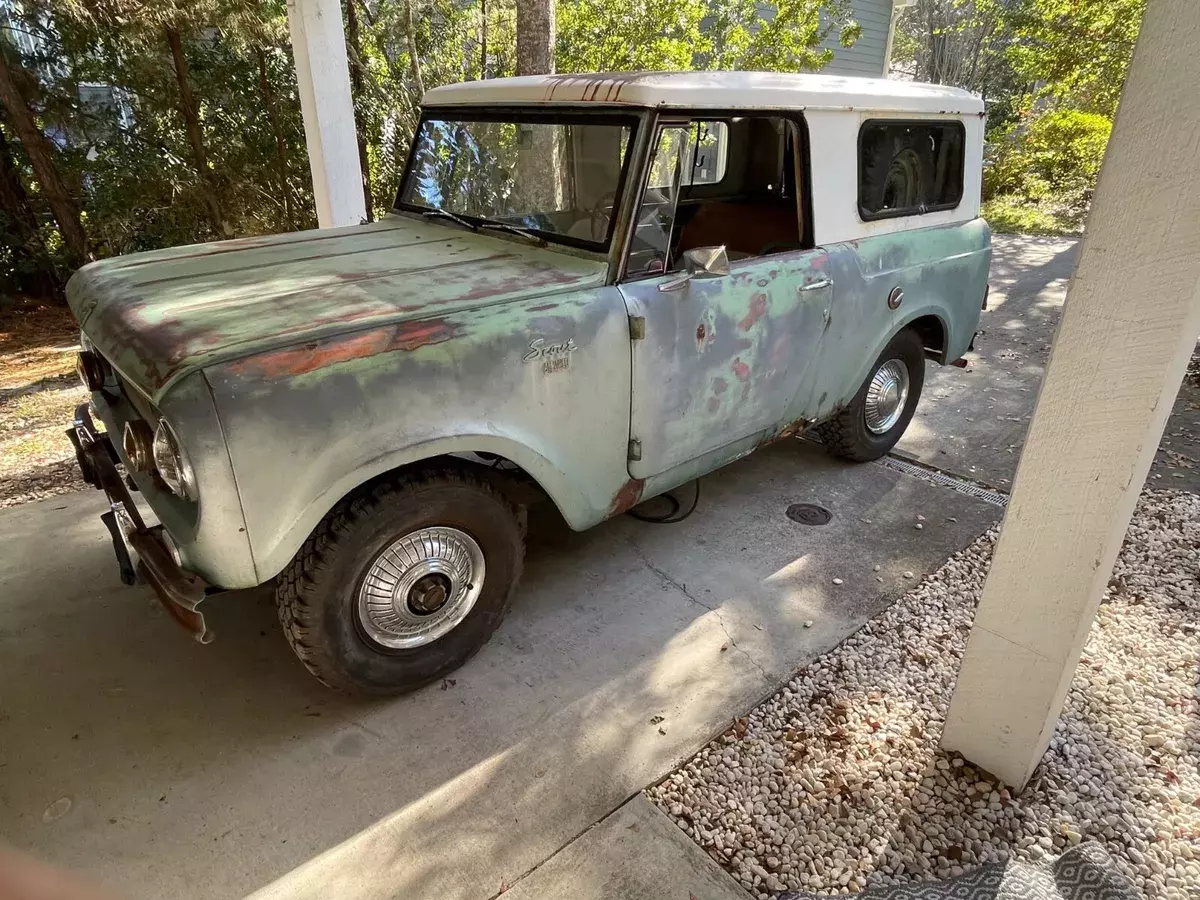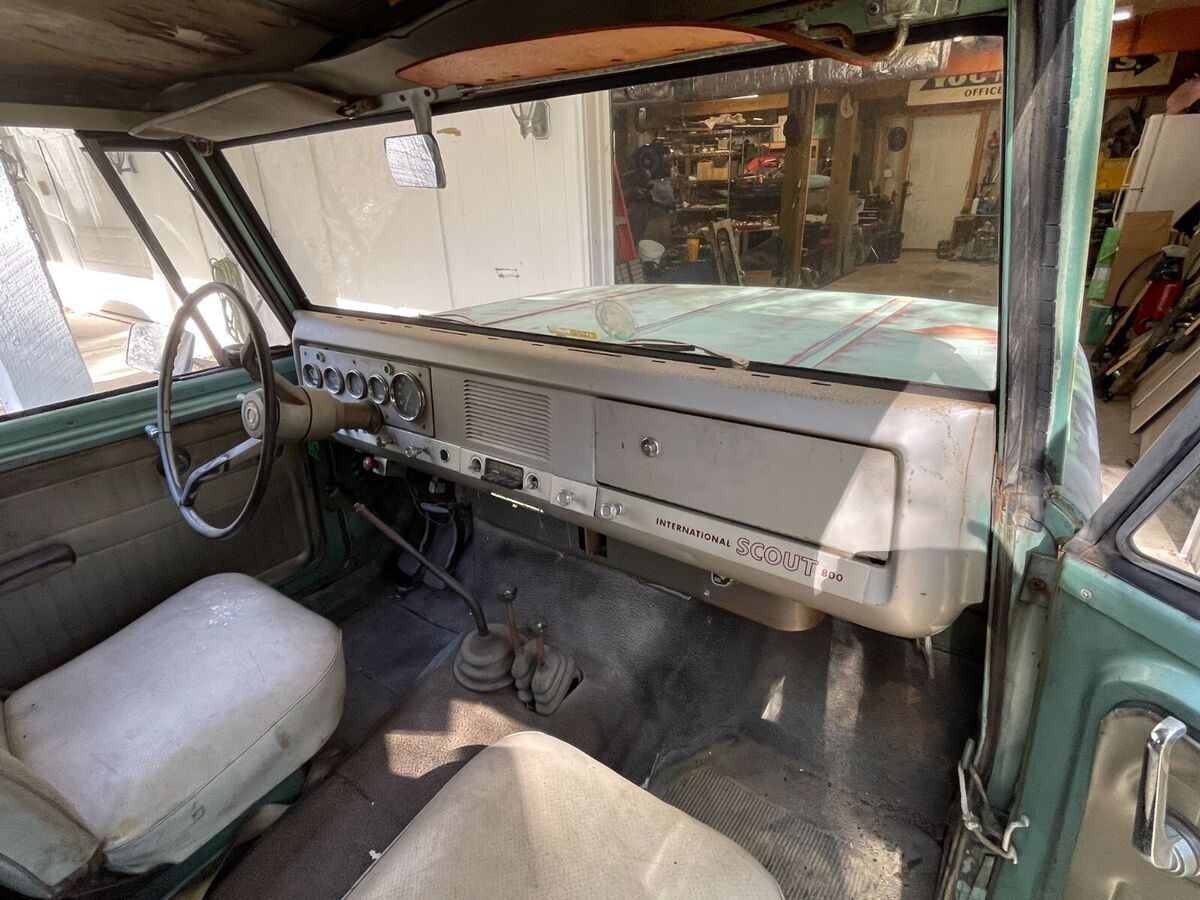 Rare Champagne Series Scout 800. All original, with only fog and hazard lights added by original owner. Original ceiling and door linings. Ignition wires and alternator replaced. Starter, carburetor, and fuel pump rebuilt. Original hubcaps, seats, including original rear seat. Engine runs. There are several sources of how many Champagne Edition Scout 800's were built in 1966. The Champagne Series (also called Doll-Up because "Doll-Up" was listed on the LST) was a limited edition Scout that has a champagne colored door panel which covered the steel on the inside of the door. There is a headliner, sound deadener, and rubber mat in the back with aluminum trim to hold down the mat. The seats are the low bucket type and the rear seat is similar in appearance.