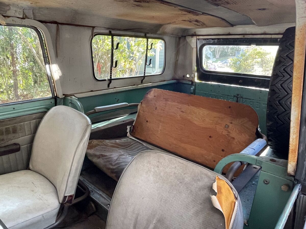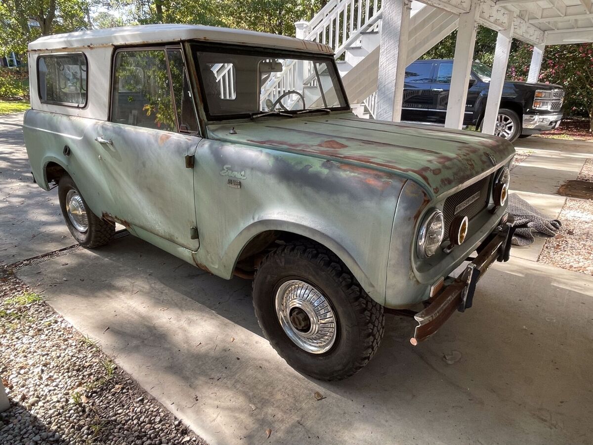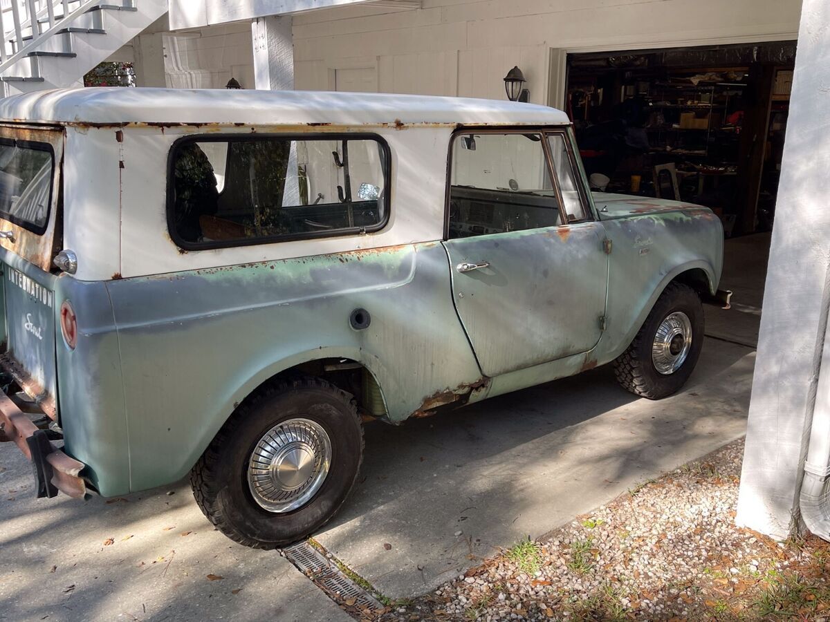 Rare Champagne Series Scout 800. All original, with only fog and hazard lights added by original owner. Original ceiling and door linings. Ignition wires and alternator replaced. Starter, carburetor, and fuel pump rebuilt. Original hubcaps, seats, including original rear seat. Engine runs. There are several sources of how many Champagne Edition Scout 800's were built in 1966. The Champagne Series (also called Doll-Up because "Doll-Up" was listed on the LST) was a limited edition Scout that has a champagne colored door panel which covered the steel on the inside of the door. There is a headliner, sound deadener, and rubber mat in the back with aluminum trim to hold down the mat. The seats are the low bucket type and the rear seat is similar in appearance.