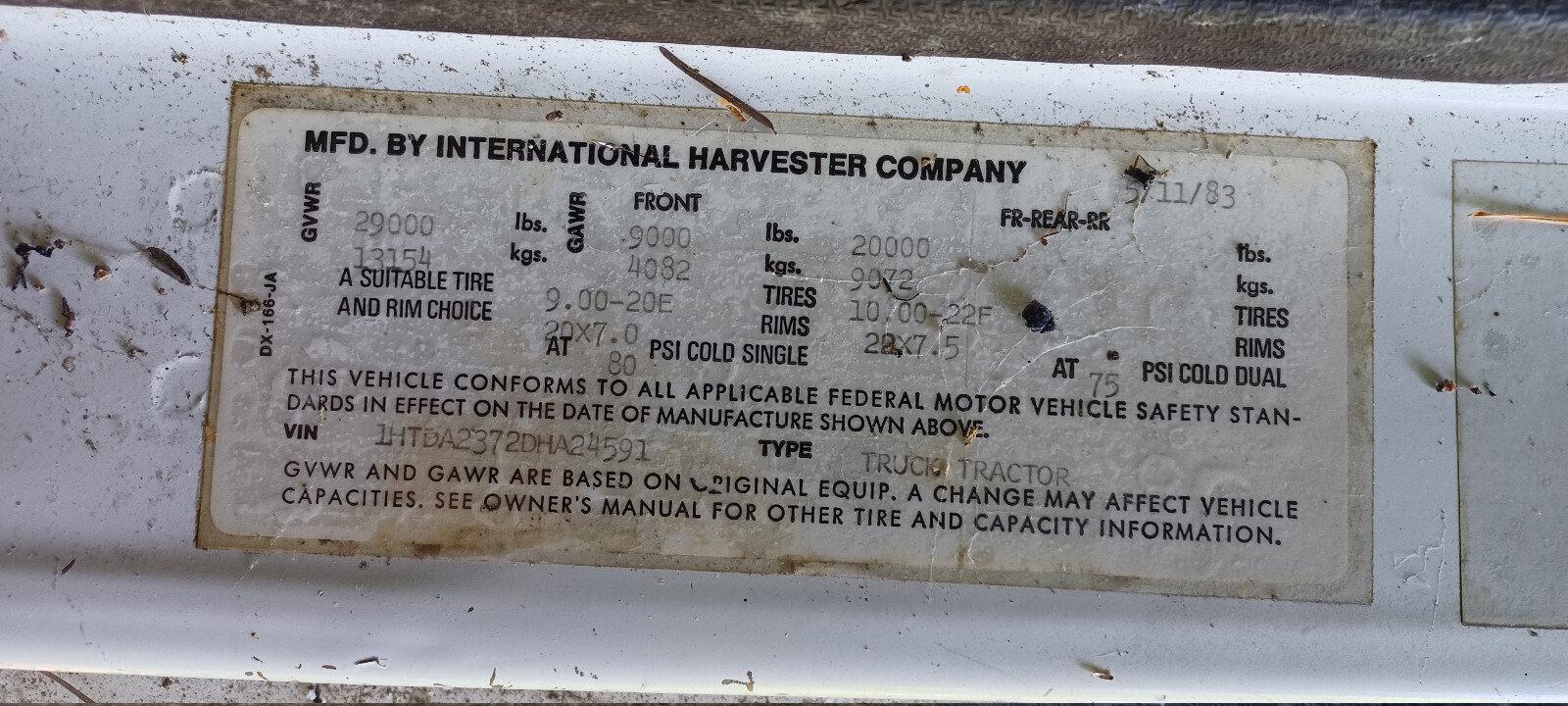 Runs and drives, low mileage for the drive train and year. No registration. • Good Title • Vin: 1HTDA2372DHA24591 • Miles: Showing 397,222 • Engine: Cummins LTA10-2 240Hp • Transmission: Fuller Roadranger 9-SpeedLocated north California between Redding and Eureka. Not CA legal, need trailer to pick up.work, semi, farm, farming, mine, mining, dump, dually, 5th wheel, international, peterbilt, kenworth, wester, mack Volvo, Detroit, construction, equipment