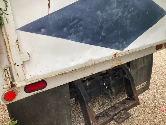 My wife bought this dump truck for me for my birthday 10-years ago. I replaced the brakes, and tires and rebuilt the 345, V8 engine out of frame, and gave her a new 2-part acrylic (freightliner white) paint job about 3500 miles ago. This old truck hauled my backhoe and other accessories to Texas from California about 5-years ago. I have used it for a total of 350 miles the last 12-months, so its time to let her go to someone else. The mileage reported is actual mileage on the vehicle. She has a five speed transmission with two speed rear axle. The dump bed works great and will hold 6-yards or up to 14,000 lbs. It is gas, (not diesel) so maintenance is simple. It has vacuum over hydraulic brakes; that combined with its GVW under 26000, in most states means that no commercial drivers license is required.