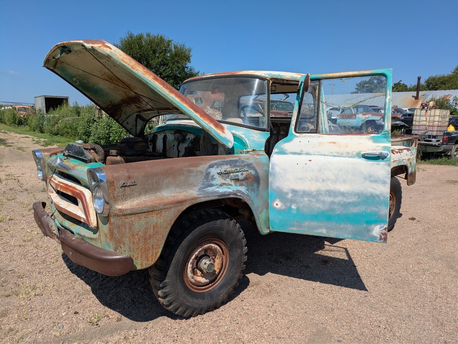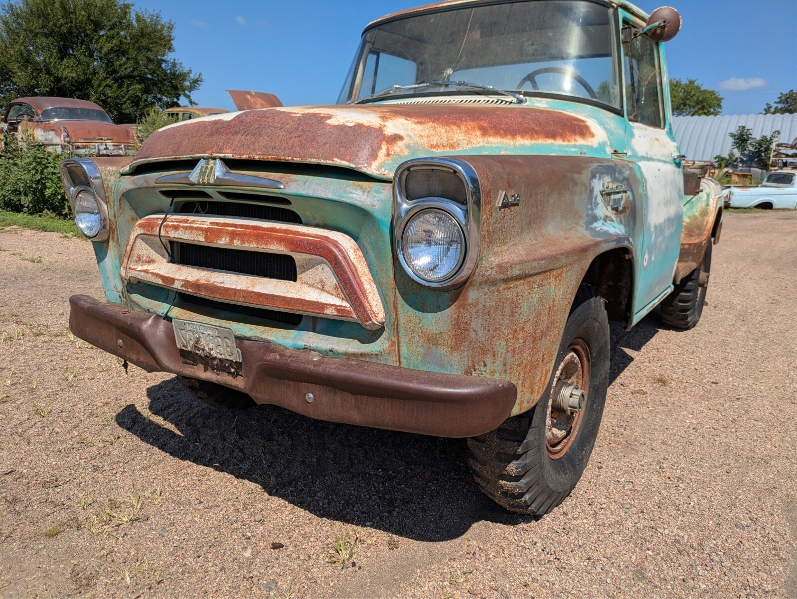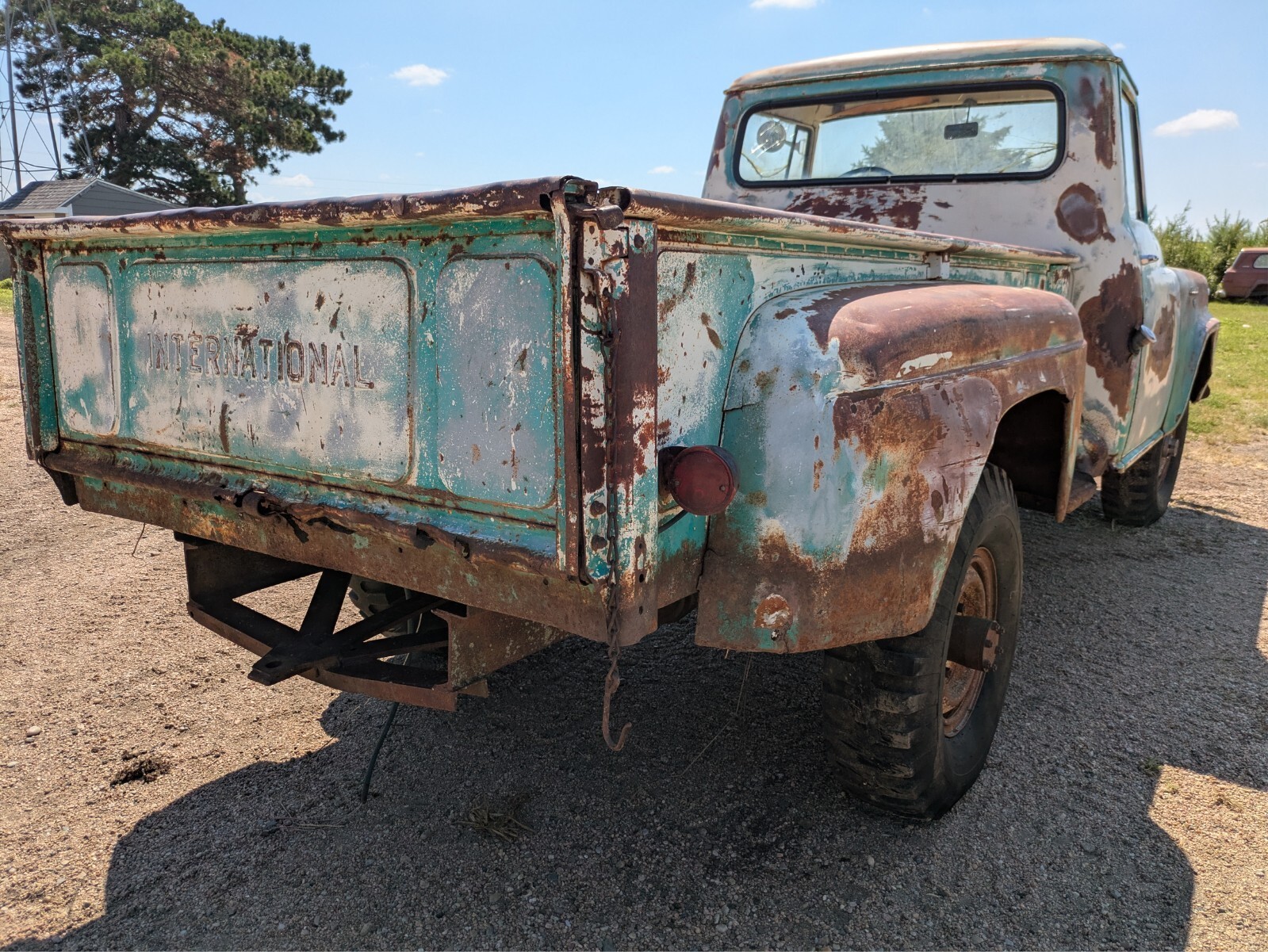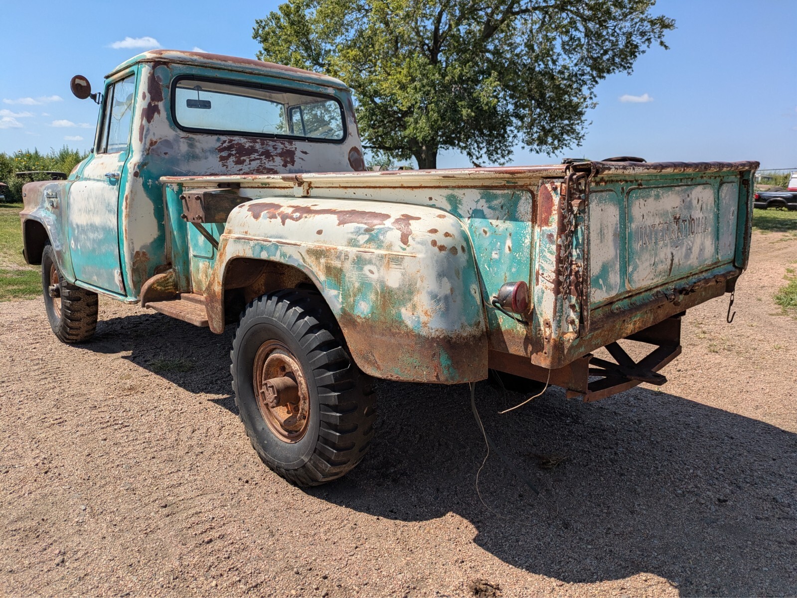 Selling no reserve!!! Sells to the highest bidder!!...Offering up a killer 59 A120 IH 4x4 project truck... As you can see she's pretty straight and solid truck.. she's farm fresh, sat several years tires aired up and held, all I've done is get home process it, ie clean out, power washed. And offering it for purchase. Engine is presumably sitting stuck . I did not press the issue, you can do more harm than good trying to force anything.. oil looks amazing, I feel a good soak job, take your time she'll come around.. I repeat I have not tried to force anything.. didn't turn by hand and I left it alone.. that's for the new buyer to take there time with.. truck is in great shape complete, everything where it belongs. I have more of these for parts. So if buyer needs anything.. like side glass etc. I'm not going into super detail . The pictures do the talking.. truck has a good clean Nebraska title. This is a project truck, not going for a cruise in a afternoon after getting home..lol.. these are not around every corner anymore, seems to be a good following for these old 4x4 Binders. Truck is located near Giltner Nebraska 68841.. I'm willing to help out with anything I can do . Arranging transportation. Loading etc..If any questions search Rudy's Classic Auto in Nebraska give me a shout. Storage available for a reasonable amount of time.. $1000 deposit required upon auctions end. Good honest binder project bid with confidence.. no worries...good luck!