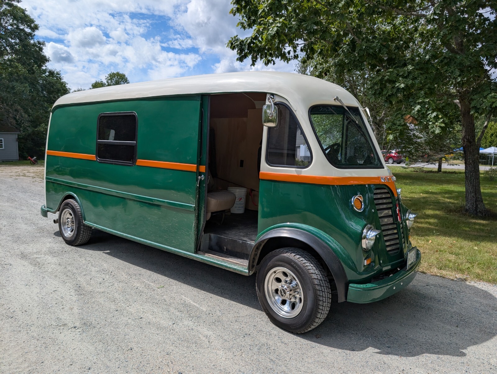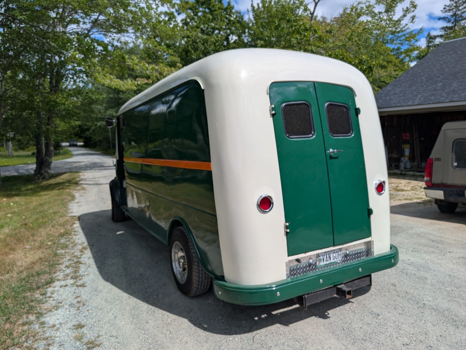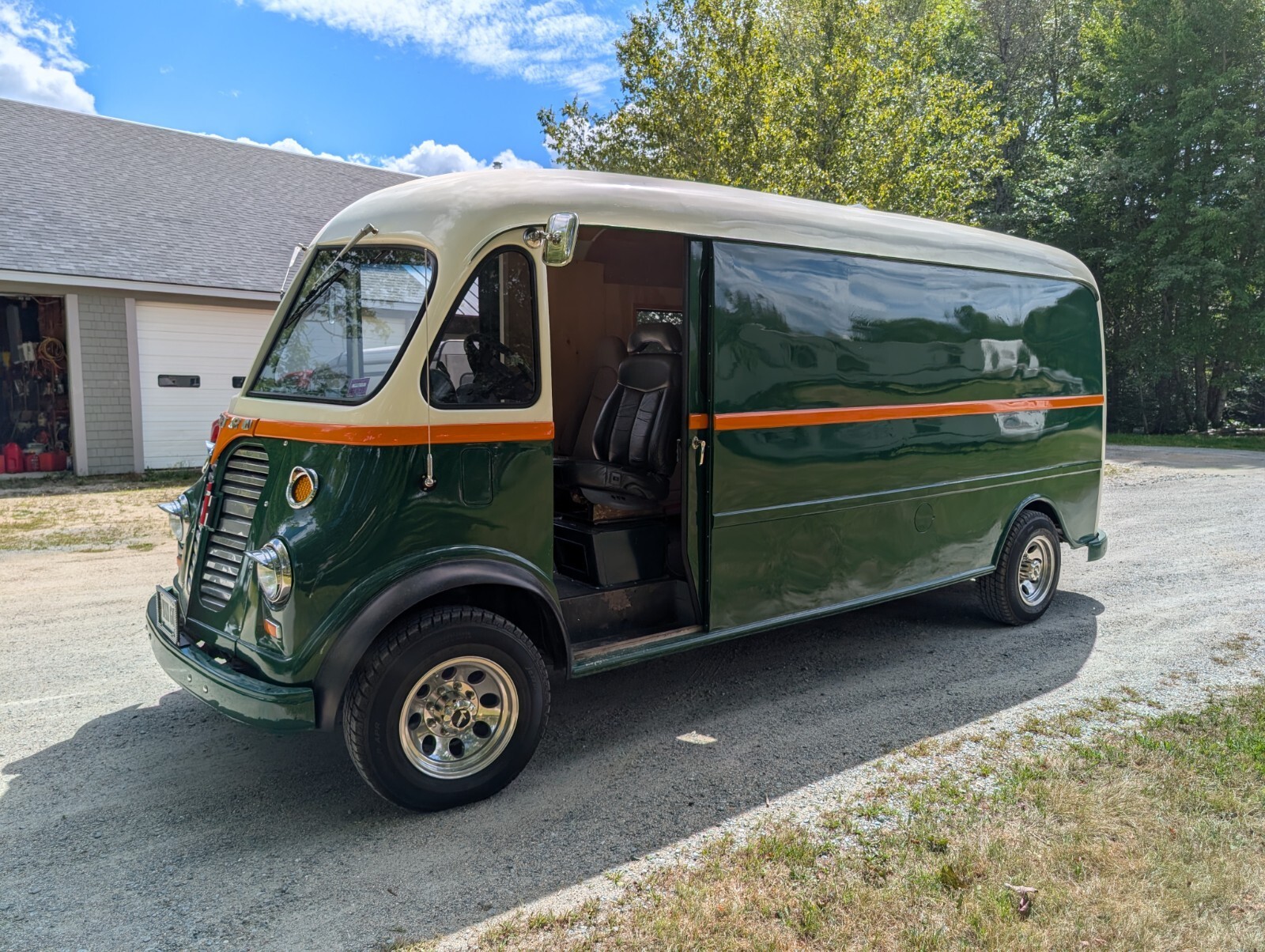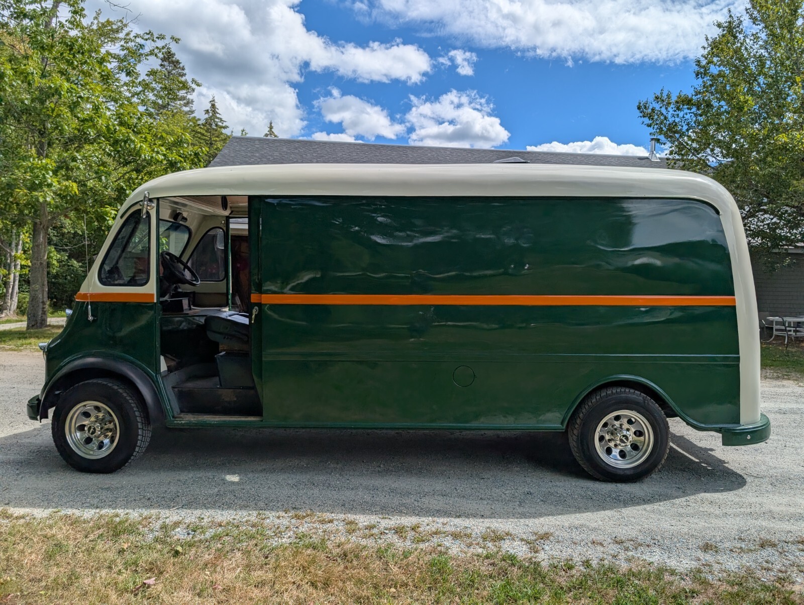METRO VANS WERE POPULAR DELIVERY AND SERVICE VEHICLES SINCE THE LATE 30s, AND THEY WERE A BIT OF A HANDFUL TO DRIVE. THIS ONE CAN BE DRIVEN WITH ONE FINGER, THANKS TO THE MODERN GMC DRIVE TRAIN, WITH POWER STEERING AND POWER DISC BRAKES. IT IS A FANTASTIC CRUISER, AND VERY POPULAR AT CAR SHOWS AND EVENTS HERE ON THE CENTRAL COAST OF MAINE.