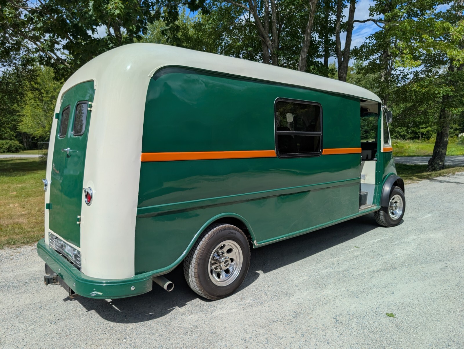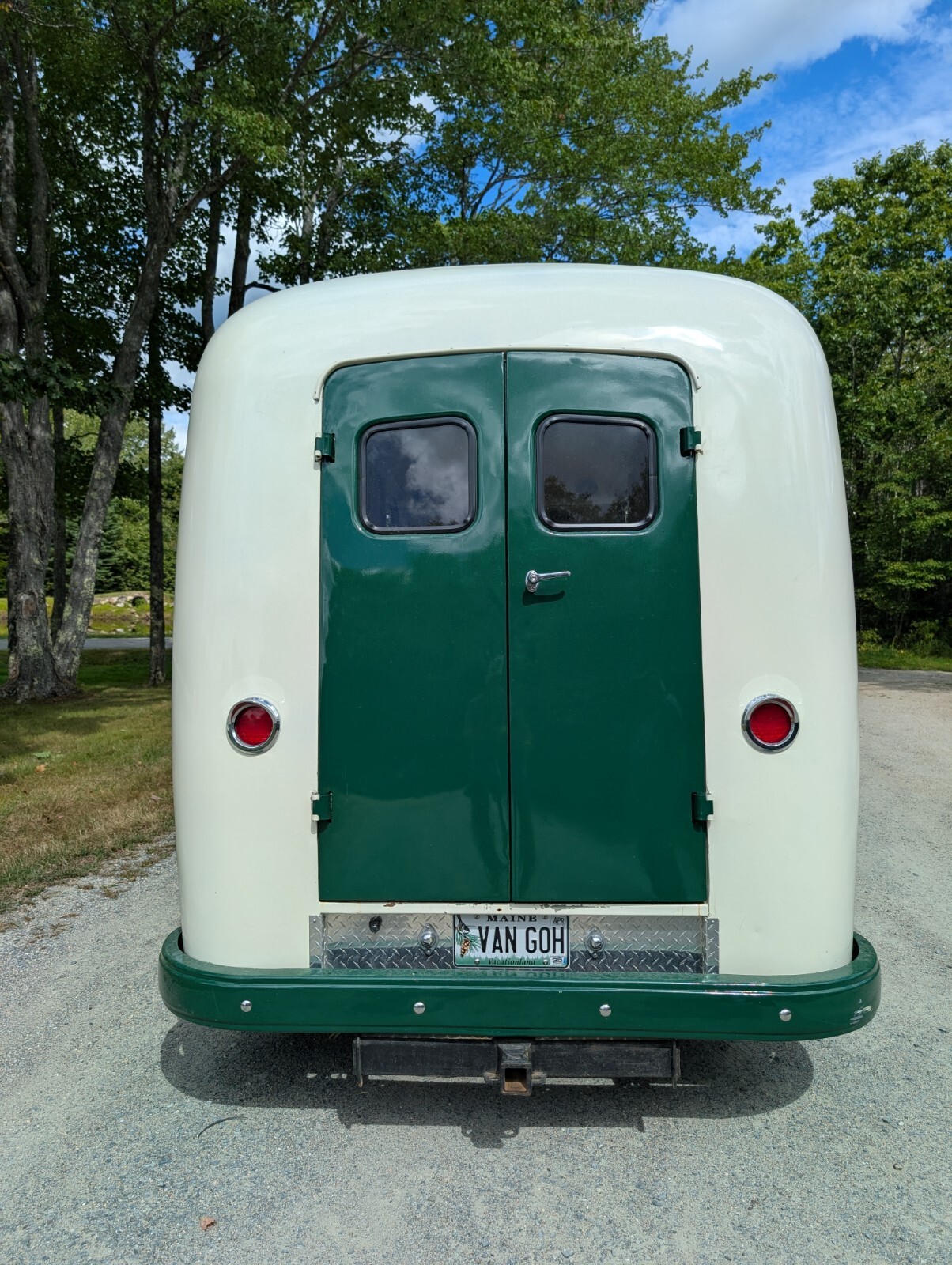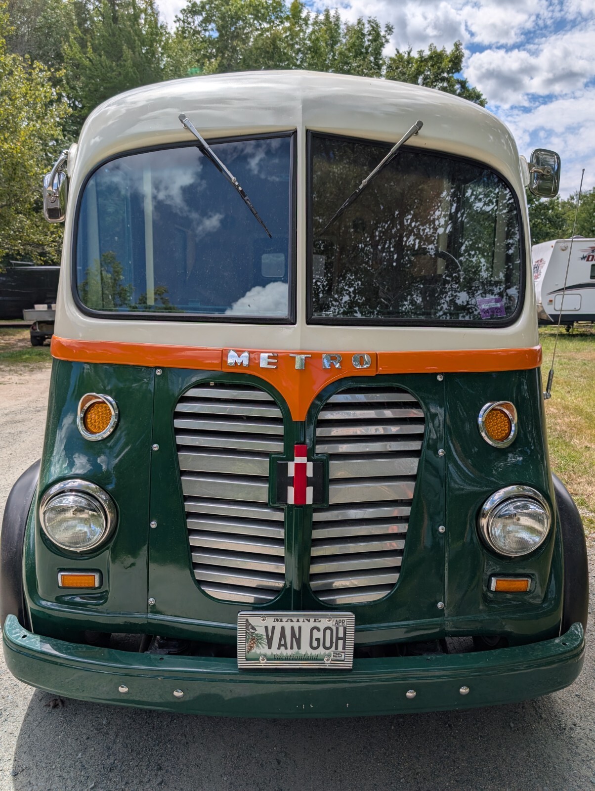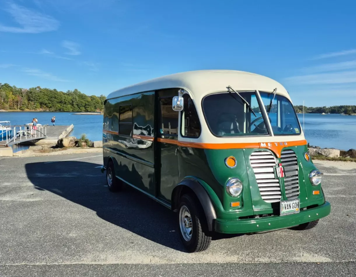 METRO VANS WERE POPULAR DELIVERY AND SERVICE VEHICLES SINCE THE LATE 30s, AND THEY WERE A BIT OF A HANDFUL TO DRIVE. THIS ONE CAN BE DRIVEN WITH ONE FINGER, THANKS TO THE MODERN GMC DRIVE TRAIN, WITH POWER STEERING AND POWER DISC BRAKES. IT IS A FANTASTIC CRUISER, AND VERY POPULAR AT CAR SHOWS AND EVENTS HERE ON THE CENTRAL COAST OF MAINE.