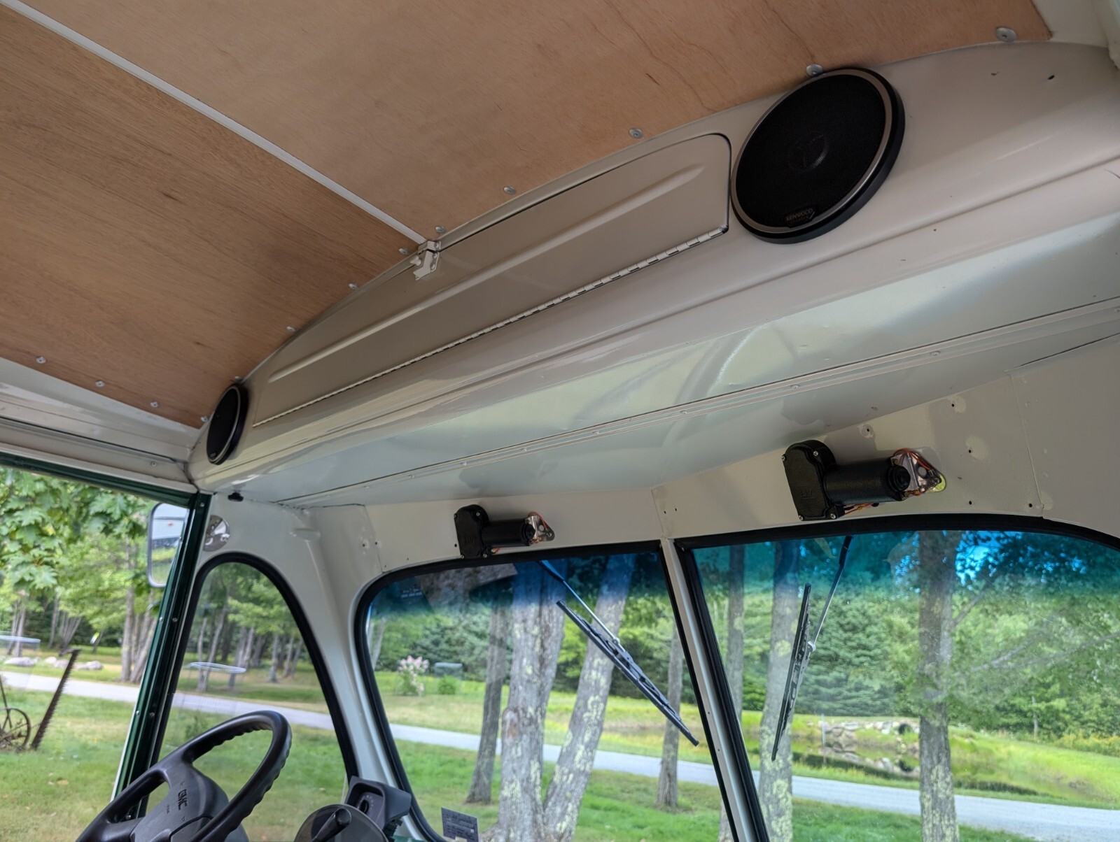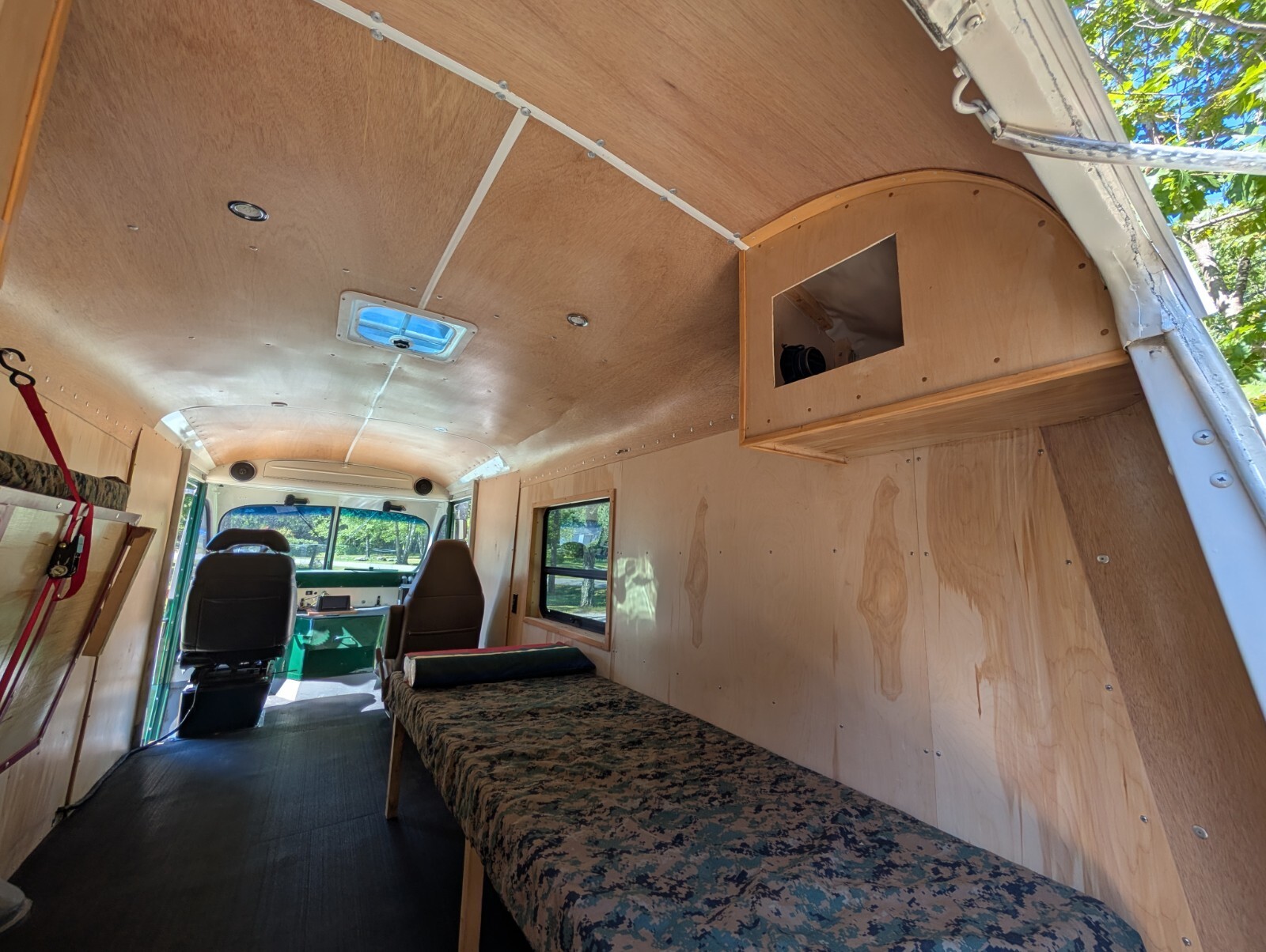 THE INTERIOR IS FINISHED WITH BEAUTIFUL LUAN WOOD PANELING AND A GOOD STEREO AND LED LIGHTING, BUT IS MOSTLY A BLANK SLATE FOR YOUR DESIRED USE. WE MOUNTED SOME FOLD DOWN BUNKS FOR EASY CAMPING, BUT THOSE CAN BE REMOVED IN 10 MINUTES. THIS WOULD BE A GREAT VEHICLE TO USE TO PROMOTE YOUR BUSINESS, ATTEND TRADE SHOWS, SERVE FOOD, OR MAKE INTO A PROPER LIVE-ABOARD CAMPER.