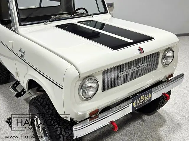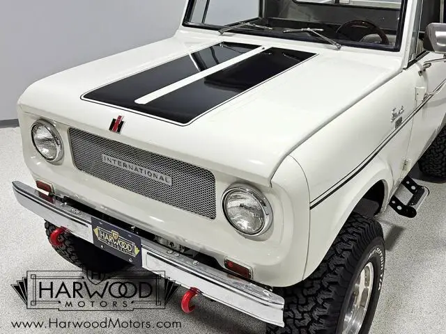 Coming out of long-term ownership, this Scout has one of the most detailed files we?ve ever seen. The comprehensive restoration is beautifully documented and even if we didn?t have the paperwork, the quality is evident the moment you see the truck. Finished in white with black stripes, it has a sporting look that matches its personality?this 4x4 wants to play! Fit and finish are probably better than International Harvester could manage and the flat bodywork is super straight with clear reflections that suggest a lot of time block sanding. The bolt-on top is removable to transform it into a fully open vehicle, and there?s a useful roll bar behind the seats, just in case. Other neat details include running lights up top, tow hooks under the chrome front bumper, and correct ?IH? and ?Scout? emblems. They also thoughtfully added a set of tubular steps, so climbing in is easier, and the bed is beautifully finished?so pretty that you probably won?t use it for hauling ever again! The combination of go-anywhere utility and sporty attitude proves to be insanely appealing.