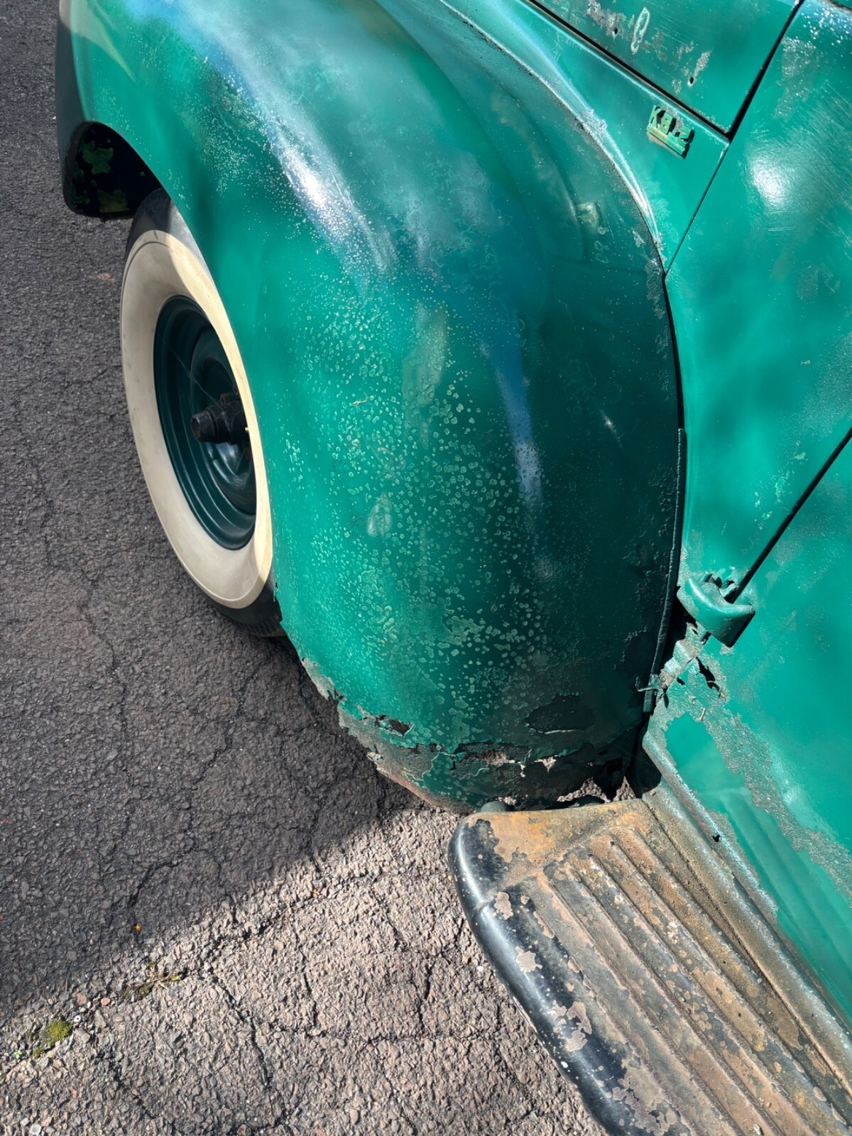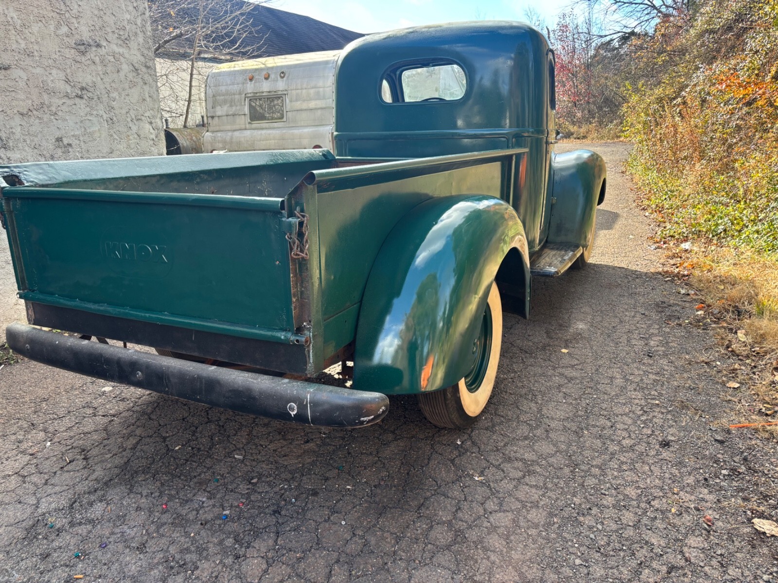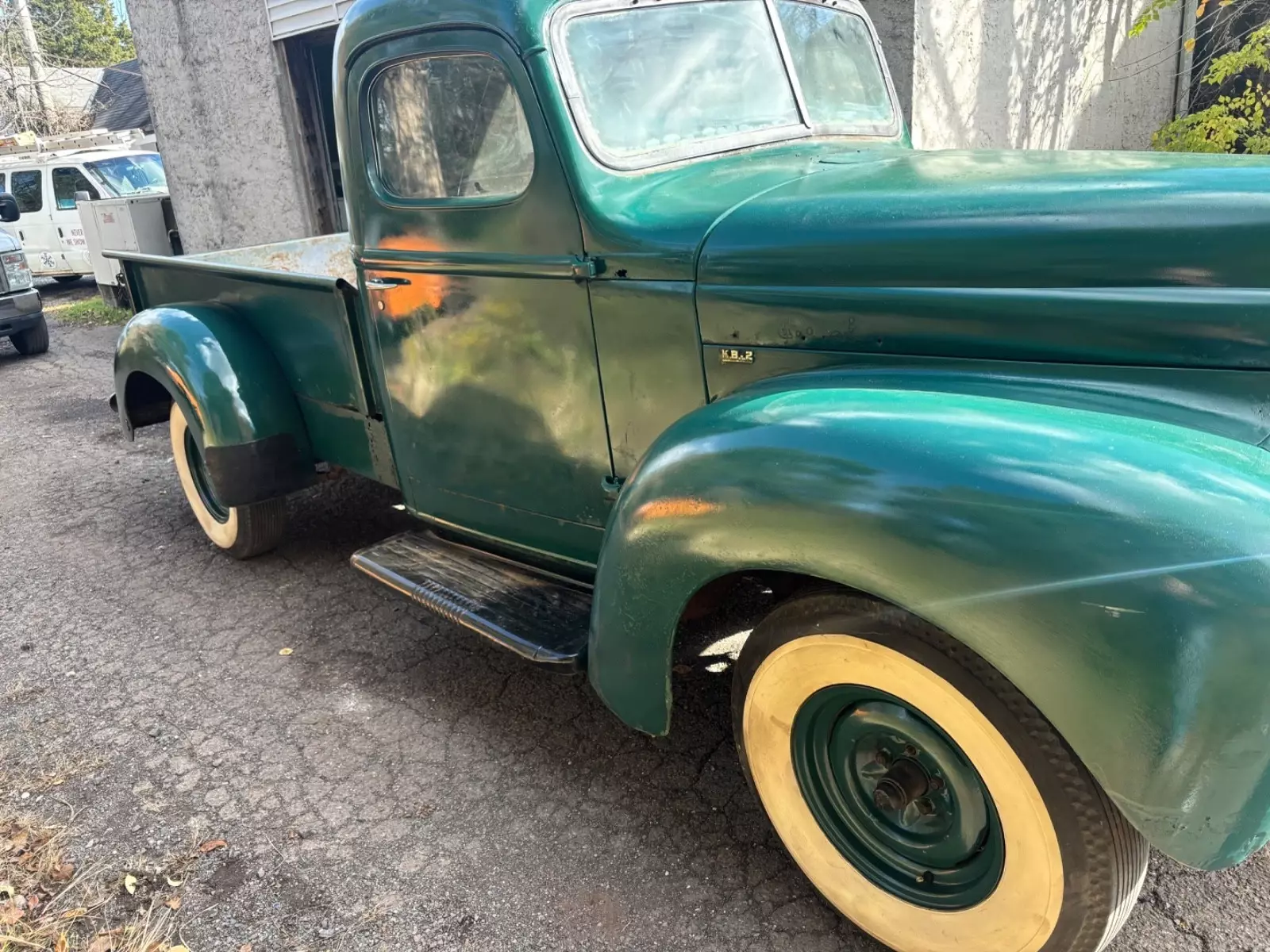 1947 International Kb2. Runs off fuel cell which comes with the purchase. Needs tank. I have every part for this vehicle except 3 small chrome front grille pieces. New brake pads, new wheel cylinders and new master cylinder installed. Decent shape for age. Bed has some repairable rust. Cab decent. Rebuilt wiper motors. All door and cover plates. Rear fenders like new. Front fenders have lower rust. Frame solid and steps are perfect without rust at frame bolts. Low budget paint job. Cab mounts good. Some floor patches from previous owners which are hard to see unless looking for them exactly. Again, I have every part for this vehicle from front bumper to rear bumper and from the tires to the top of cab except the 3 small chrome front grille pieces which are for sale on eBay. I have them and can’t find them so I’m calling them missing. Tks also comes with 4 new white wall tires. Firestone 3 inch raised white wall lettering.