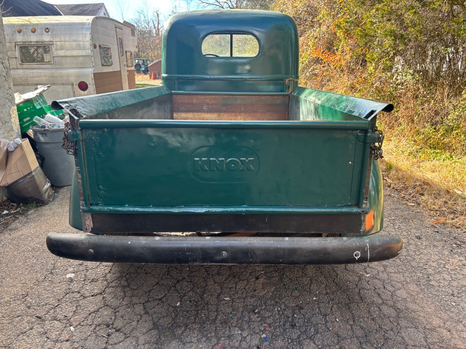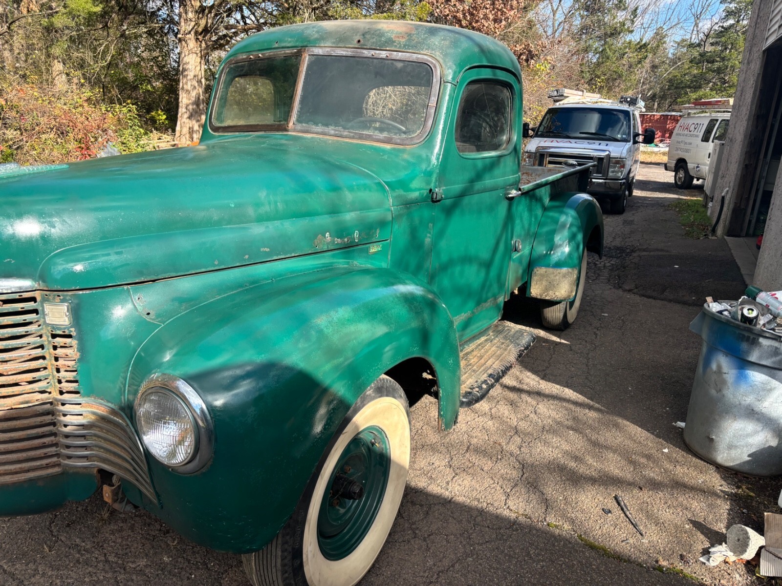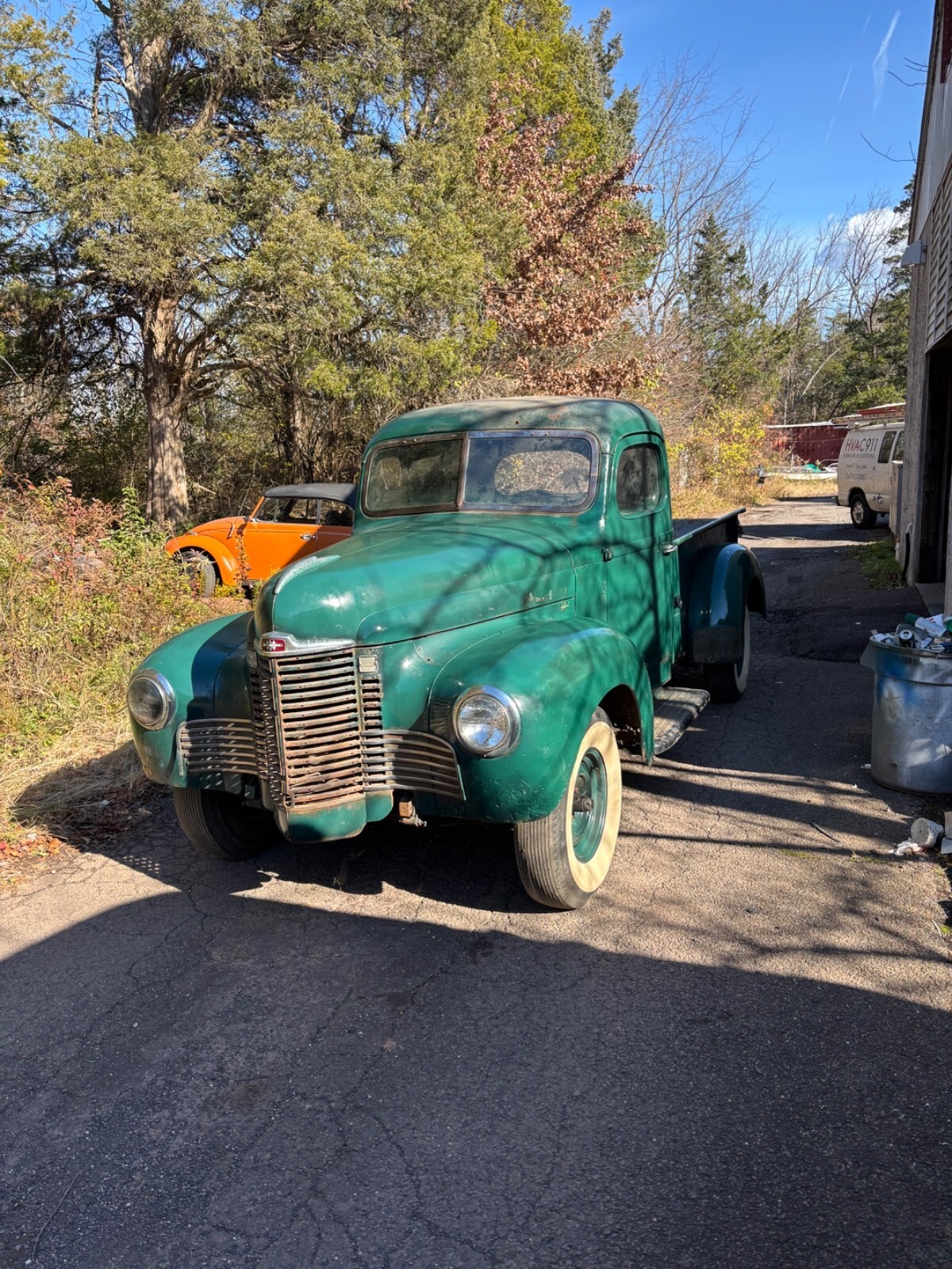 1947 International Kb2. Runs off fuel cell which comes with the purchase. Needs tank. I have every part for this vehicle except 3 small chrome front grille pieces. New brake pads, new wheel cylinders and new master cylinder installed. Decent shape for age. Bed has some repairable rust. Cab decent. Rebuilt wiper motors. All door and cover plates. Rear fenders like new. Front fenders have lower rust. Frame solid and steps are perfect without rust at frame bolts. Low budget paint job. Cab mounts good. Some floor patches from previous owners which are hard to see unless looking for them exactly. Again, I have every part for this vehicle from front bumper to rear bumper and from the tires to the top of cab except the 3 small chrome front grille pieces which are for sale on eBay. I have them and can’t find them so I’m calling them missing. Tks also comes with 4 new white wall tires. Firestone 3 inch raised white wall lettering.