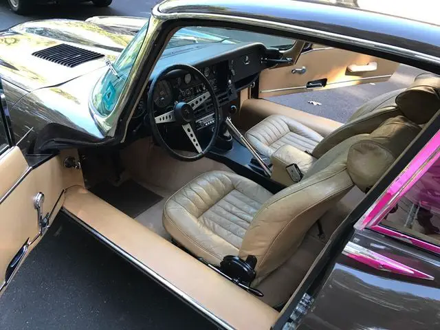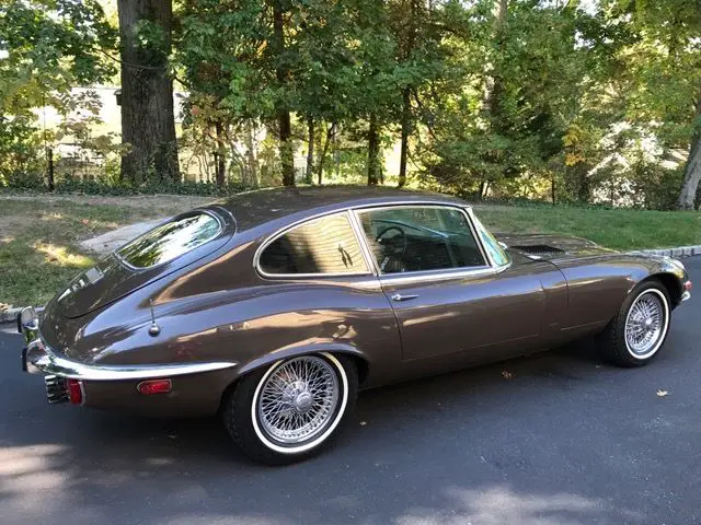 1973 Jaguar E-Type Series III, V-12, 2+2. This is a real mostly original honest survivor with 31,723 original miles. A 2 owner car, brown exterior with original biscuit interior, 4 speed and its original 5.3 liter engine. The car runs well and is ready to drive. Systems are in working order with the exception of the clock. Paint shows some age with cracking on the bonnet. Interior also shows correct patina commensurate with age. Inspection encouraged.